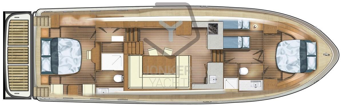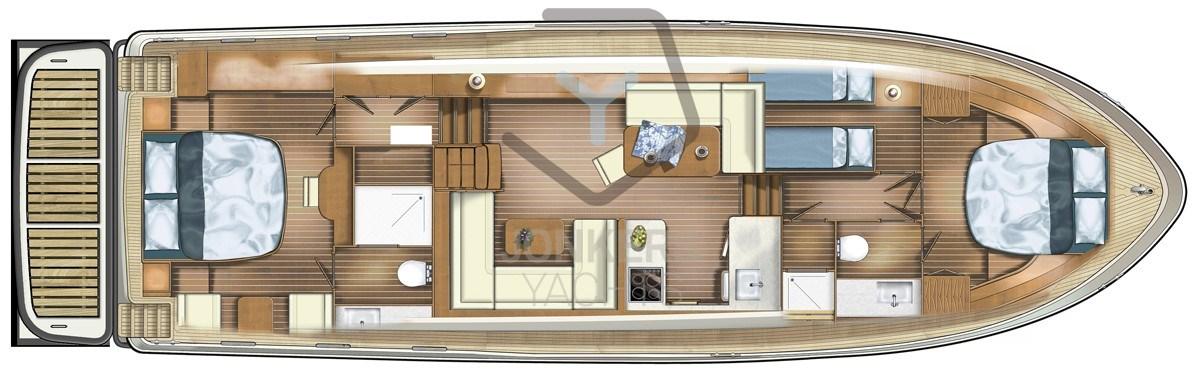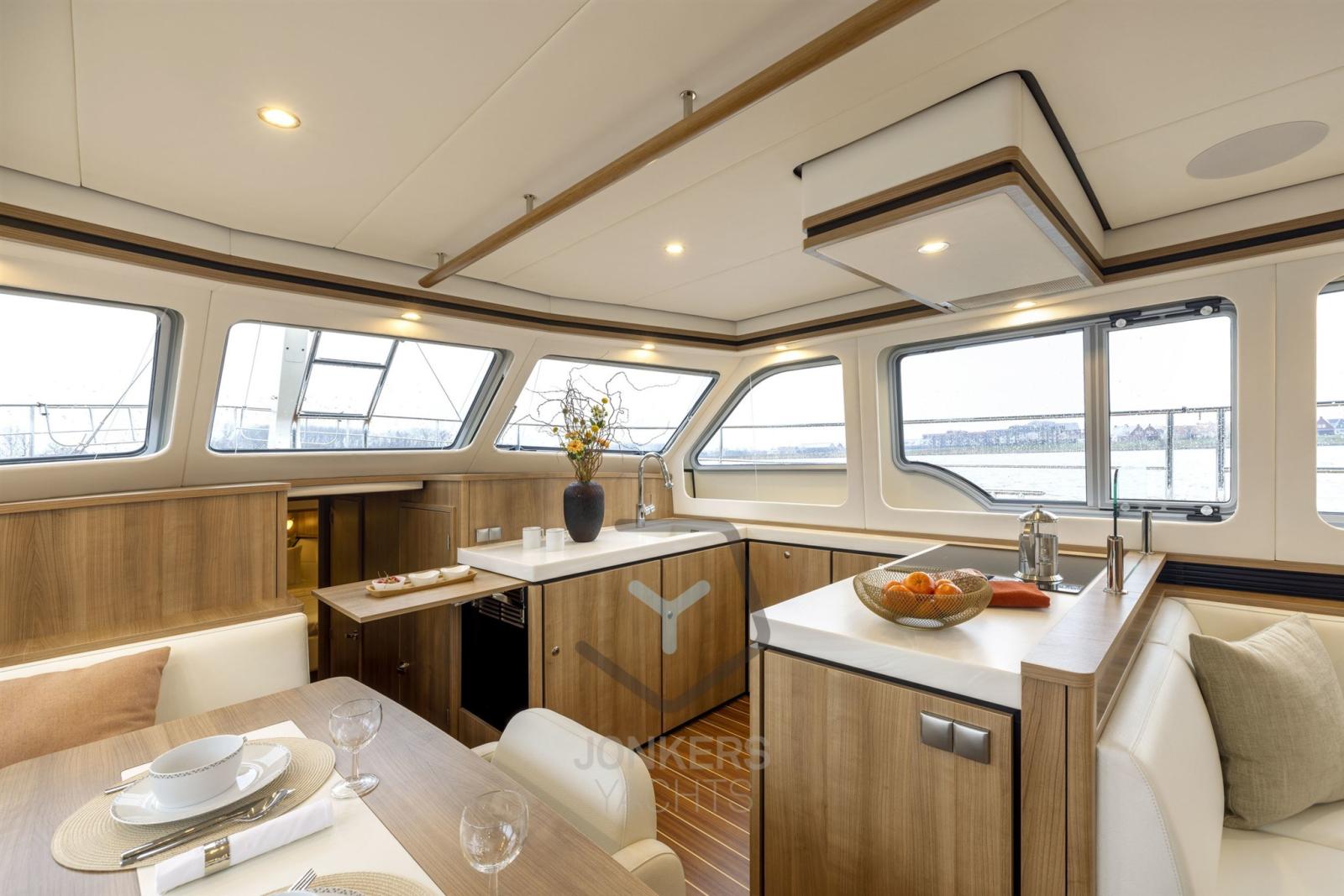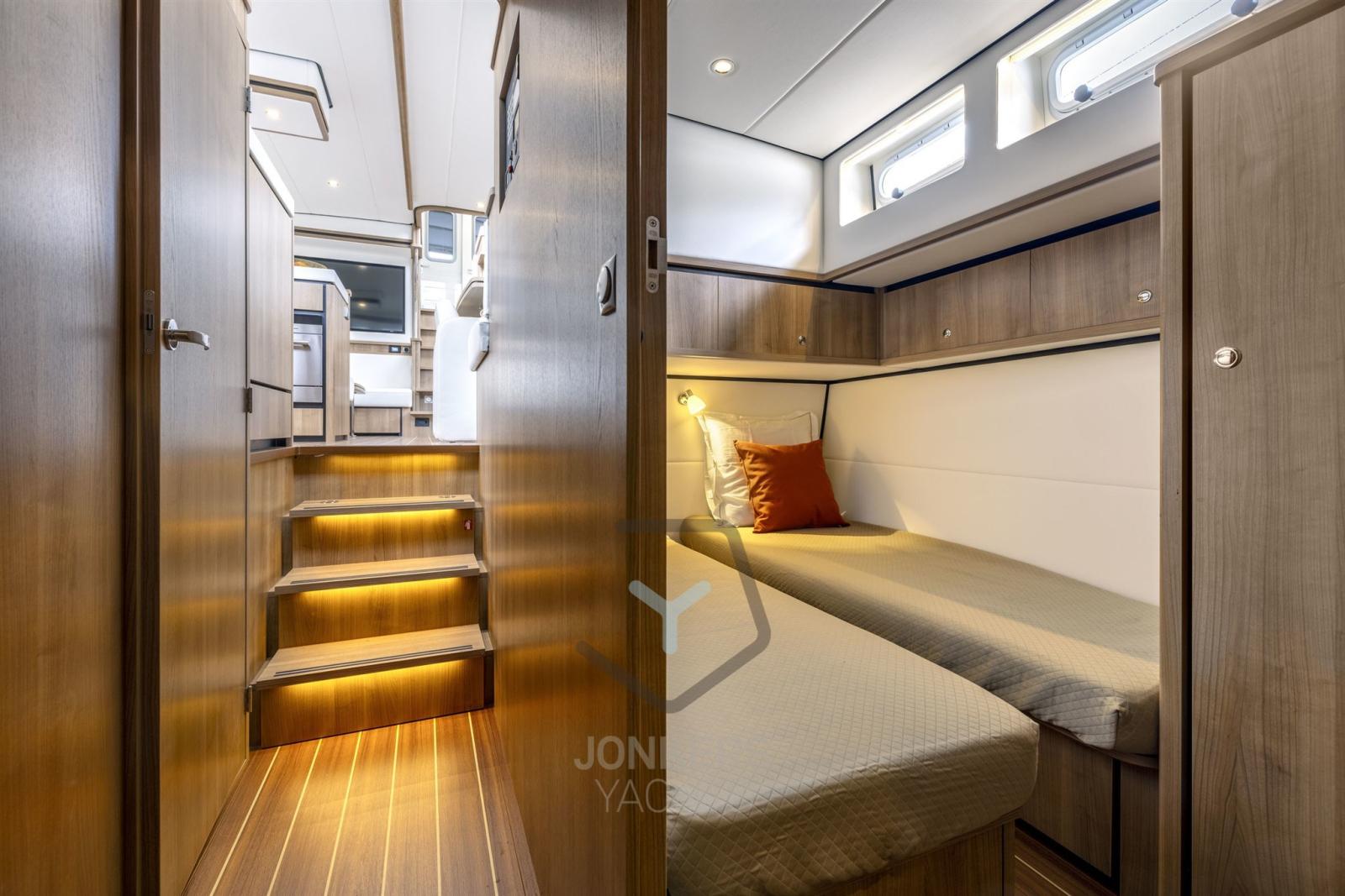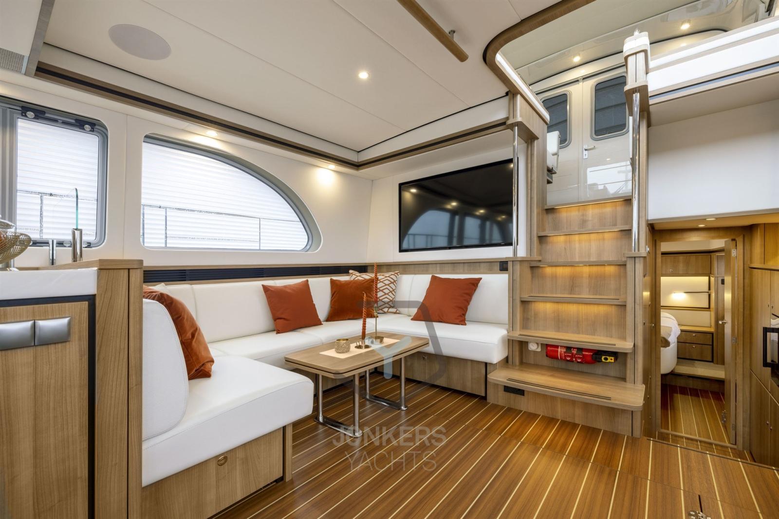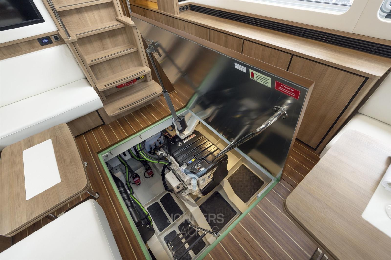 Profitez d’une croisière douce et silencieuse grâce aux performances optimisées du moteur et à l’excellente insonorisation de la salle des machines. Le design intérieur d’INTERO vous offre une oasis de confort et de luxe, avec des espaces de vie spacieux, un aménagement réfléchi et des détails de haute qualité qui créent une atmosphère relaxante à bord.