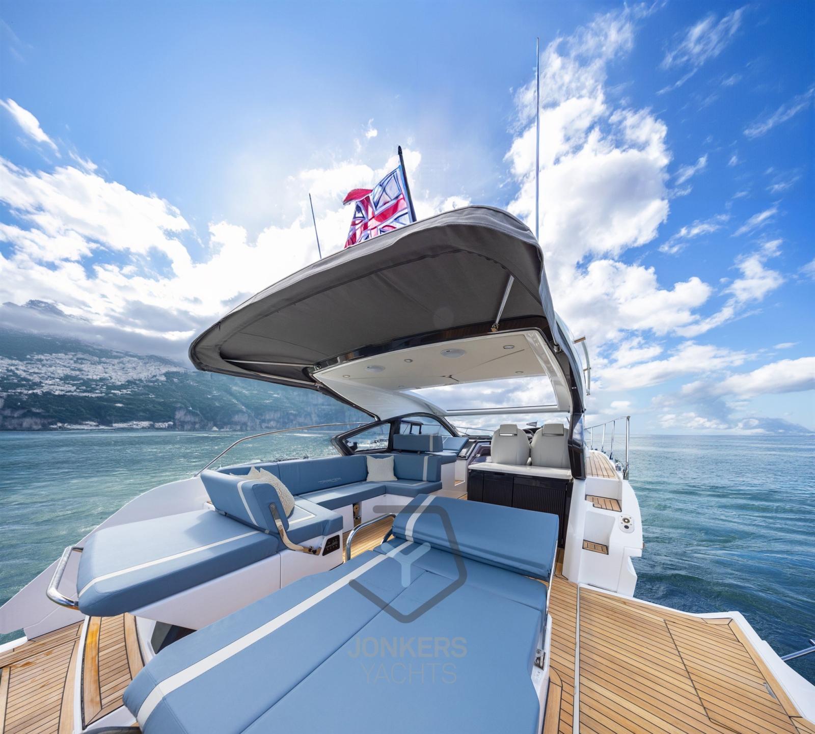 Le design élégant du toit rigide de la Targa 40 respire l’élégance et le savoir-faire, chaque détail étant soigneusement conçu pour créer une sensation de luxe et de confort. Profitez d’un cockpit ouvert avec un toit ouvrant électrique, vous permettant de basculer sans effort entre l’abri et le plaisir ensoleillé. L’intérieur est spacieux et lumineux grâce à de grandes fenêtres avec une vue imprenable sur l’eau.