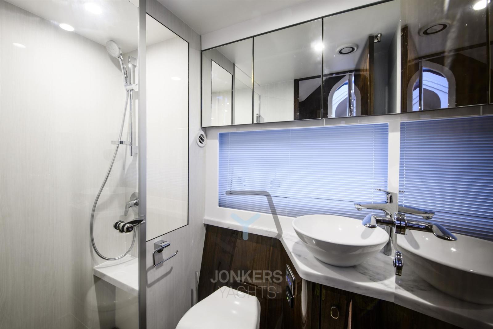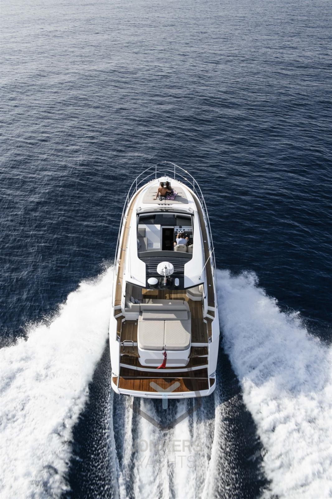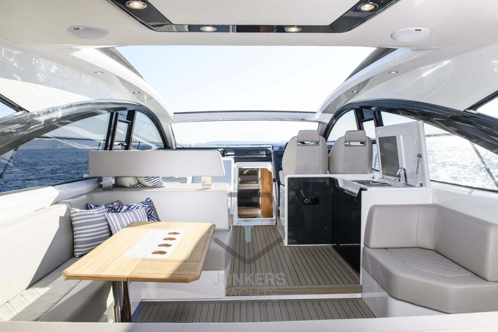 Le Targa 45 OPEN vous invite à vous détendre sur le grand transat pendant que vos amis se divertissent dans le cockpit. Protégez-vous du soleil de midi sous l’élégant toit rigide ou ouvrez le toit en toile électrique sur simple pression d’un bouton pour une brise rafraîchissante. Profitez simplement du sentiment exaltant que votre prochaine destination approche à grands pas.