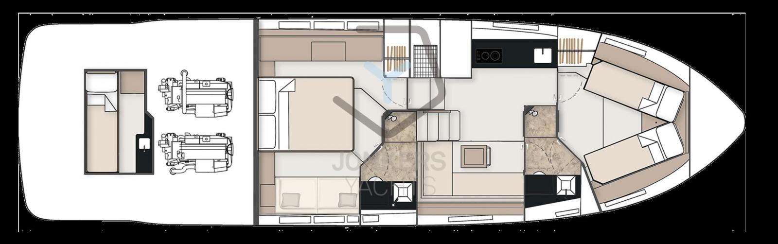 Motorisation en option : 2x Volvo Penta Diesel IPS700 D8-550, 1100 CV (32 nœuds)