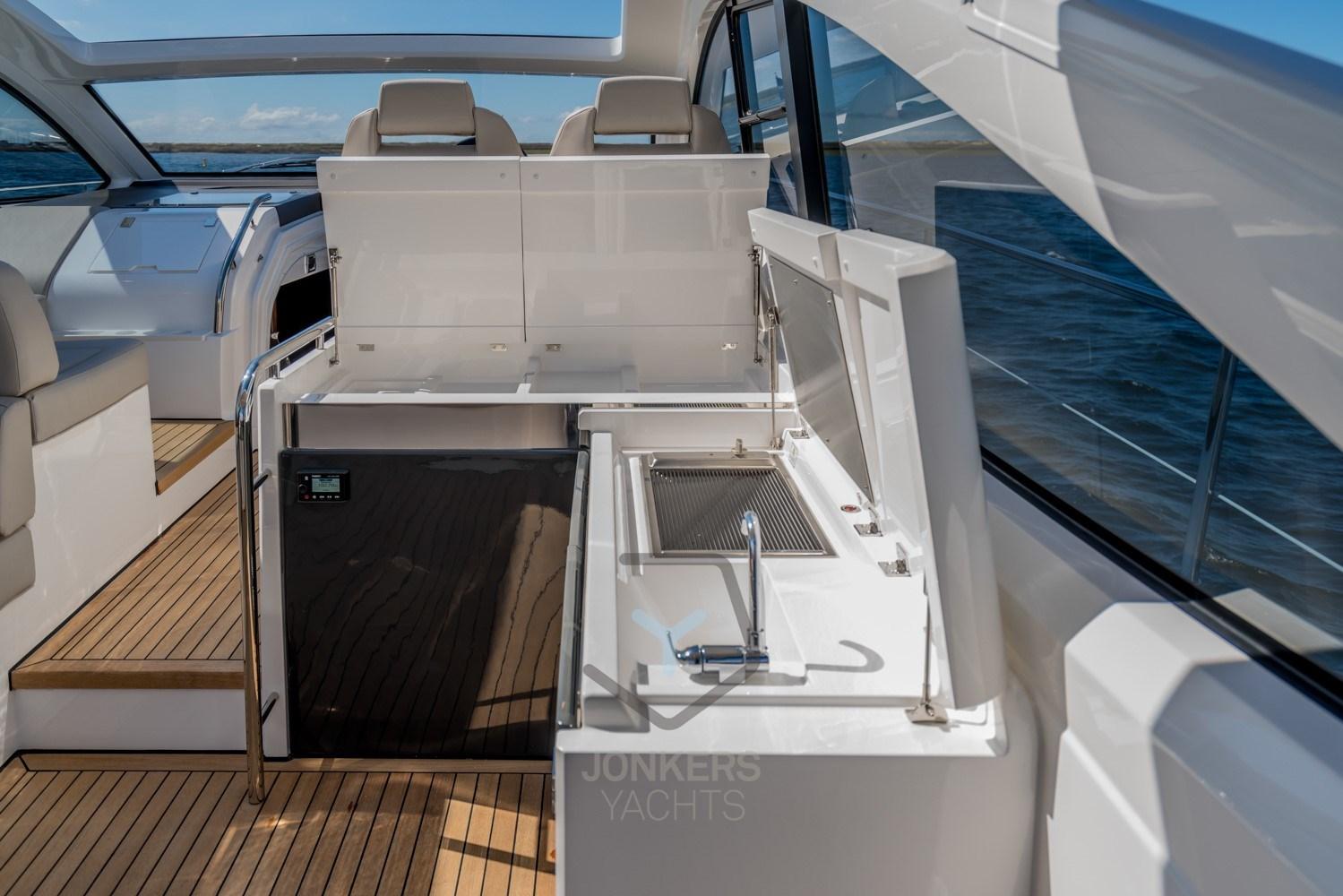 Vous pouvez compter sur la Targa 50 OPEN pour vous rendre rapidement à votre prochaine destination, grâce à ses performances impressionnantes et à sa maniabilité, tout cela grâce aux deux moteurs Volvo IPS650 ou IPS700. Mais il y a encore plus à attendre - notre option Premium Pack - avec des options telles que la climatisation haute capacité, une plate-forme de bain submersible, un système audio Bluetooth, un écran tactile de 12 pouces sur le volant et un éclairage d’ambiance extérieur.