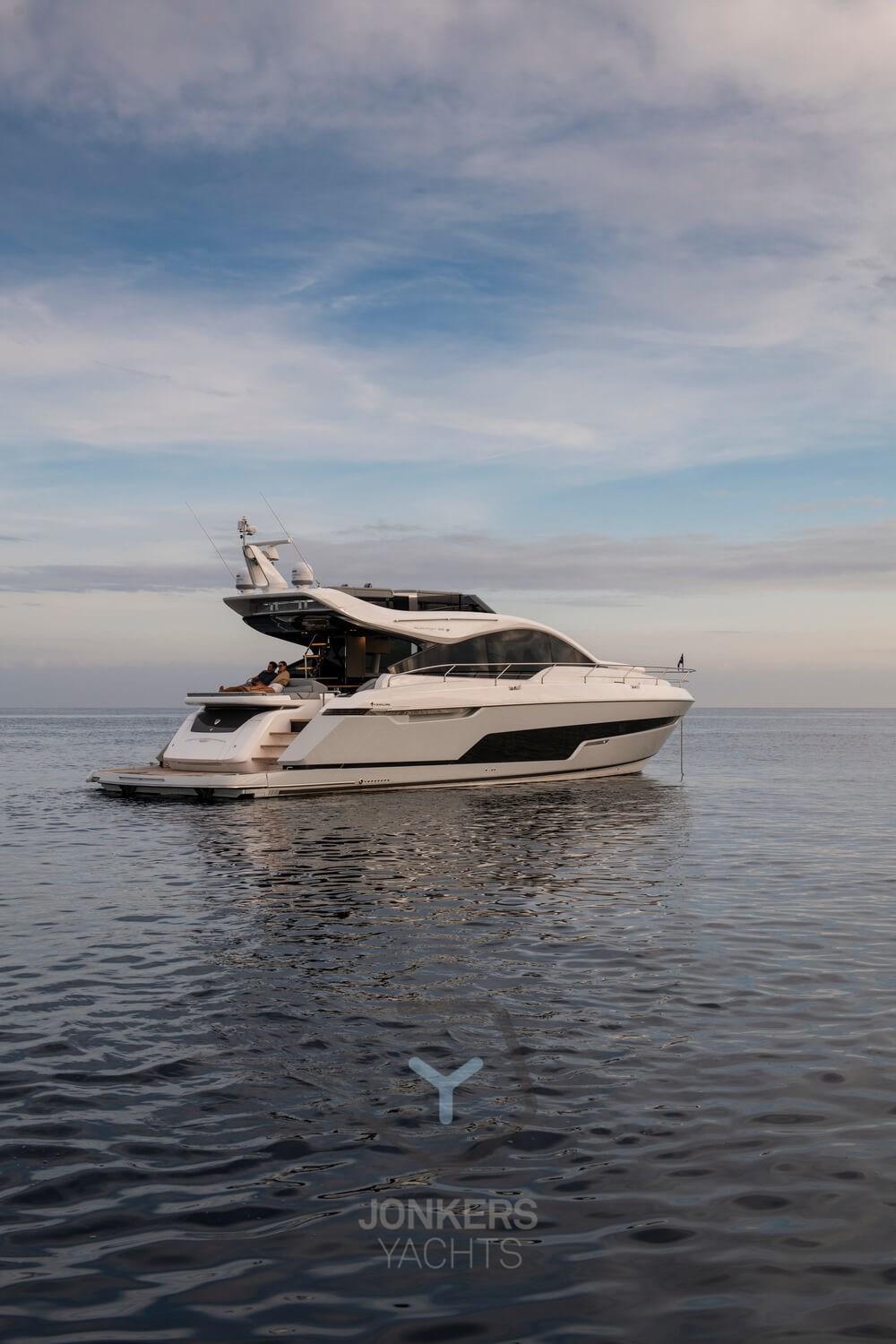 Les espaces intérieurs et extérieurs généreux du Phantom 65 sont caractérisés par des matériaux et un savoir-faire de haute qualité. Le salon spacieux, la cuisine entièrement équipée et trois belles cabines, chacune avec sa propre salle de bain, offrent tout le confort dont vous avez besoin. Profitez d’une vue panoramique sur les environs depuis l’impressionnant flybridge, un endroit idéal pour se détendre et profiter du soleil.