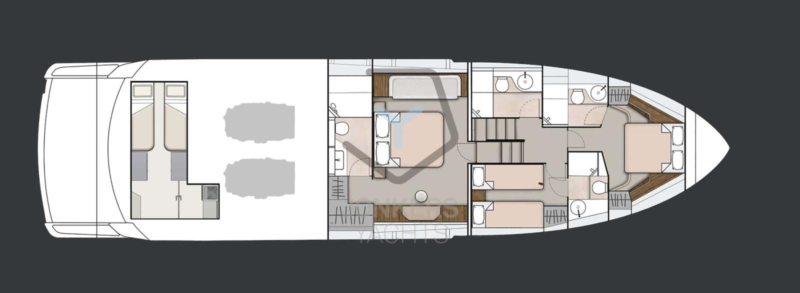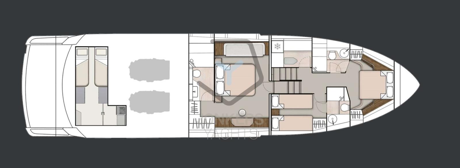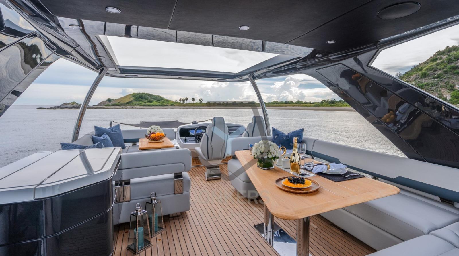 Passez toute la journée sur le vaste flybridge, avec trois zones décorées individuellement en fonction de votre humeur. Qu’il s’agisse de chaises longues triples, de salles à manger luxueuses ou de sièges à l’avant, le Squadron 68 s’adapte à ce que vous voulez faire, quand vous le souhaitez. Que vous soyez ancré ou que vous naviguiez au large, personnalisez votre environnement pour améliorer votre expérience, exactement comme vous le souhaitez.