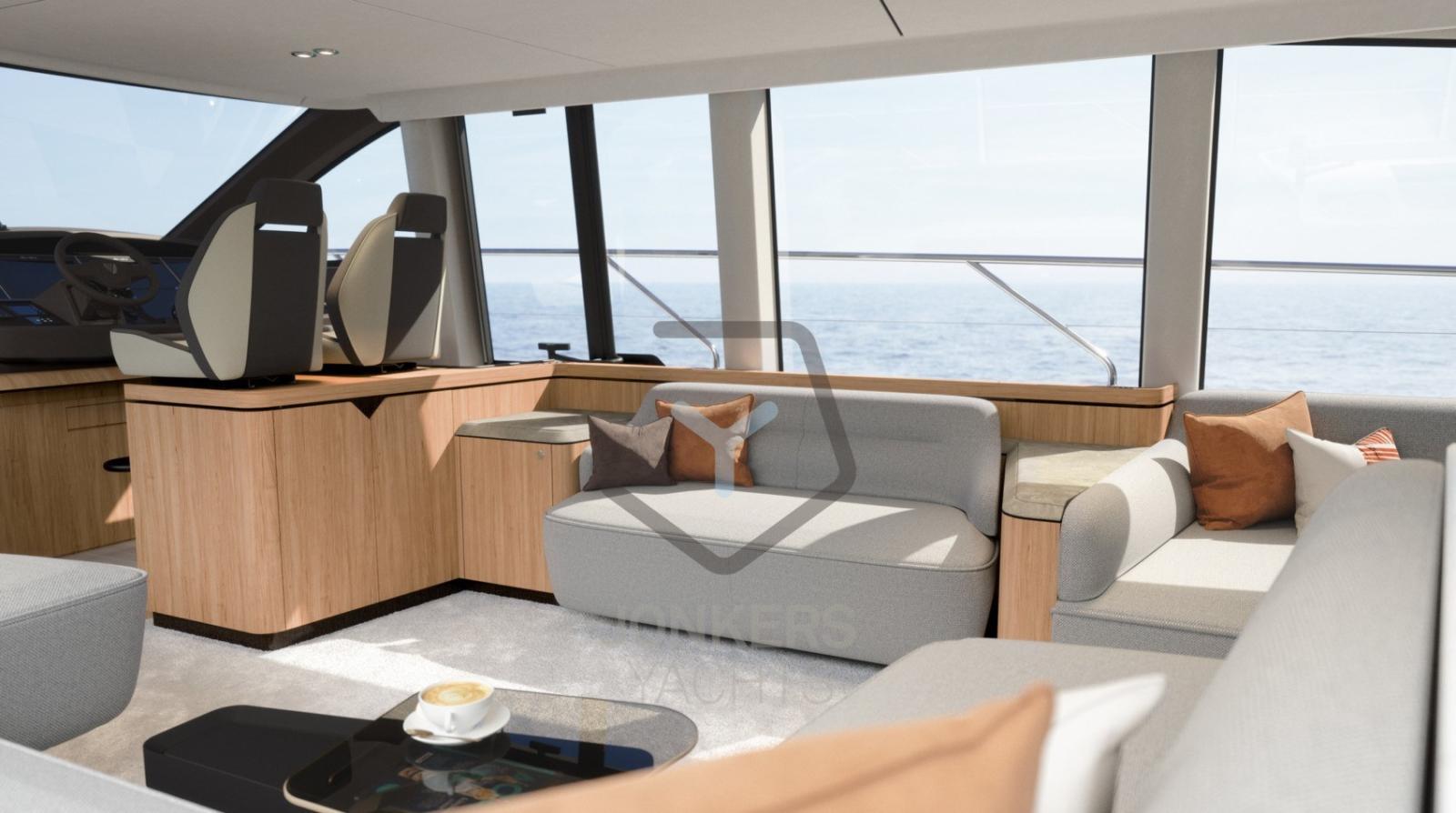 La course vers de nouvelles destinations, c’est pour cela que l’élégant Squadron 68 est conçu. Profitez de votre environnement depuis le flybridge surélevé, avec le vent sur le visage et l’horizon tout autour de vous. Dînez avec des amis dans le salon de plain-pied, servi depuis la cuisine bien équipée. La légèreté, l’espace et la fluidité du design rendent le temps au-dessus ou au-dessous du pont à la fois gracieux et fluide.