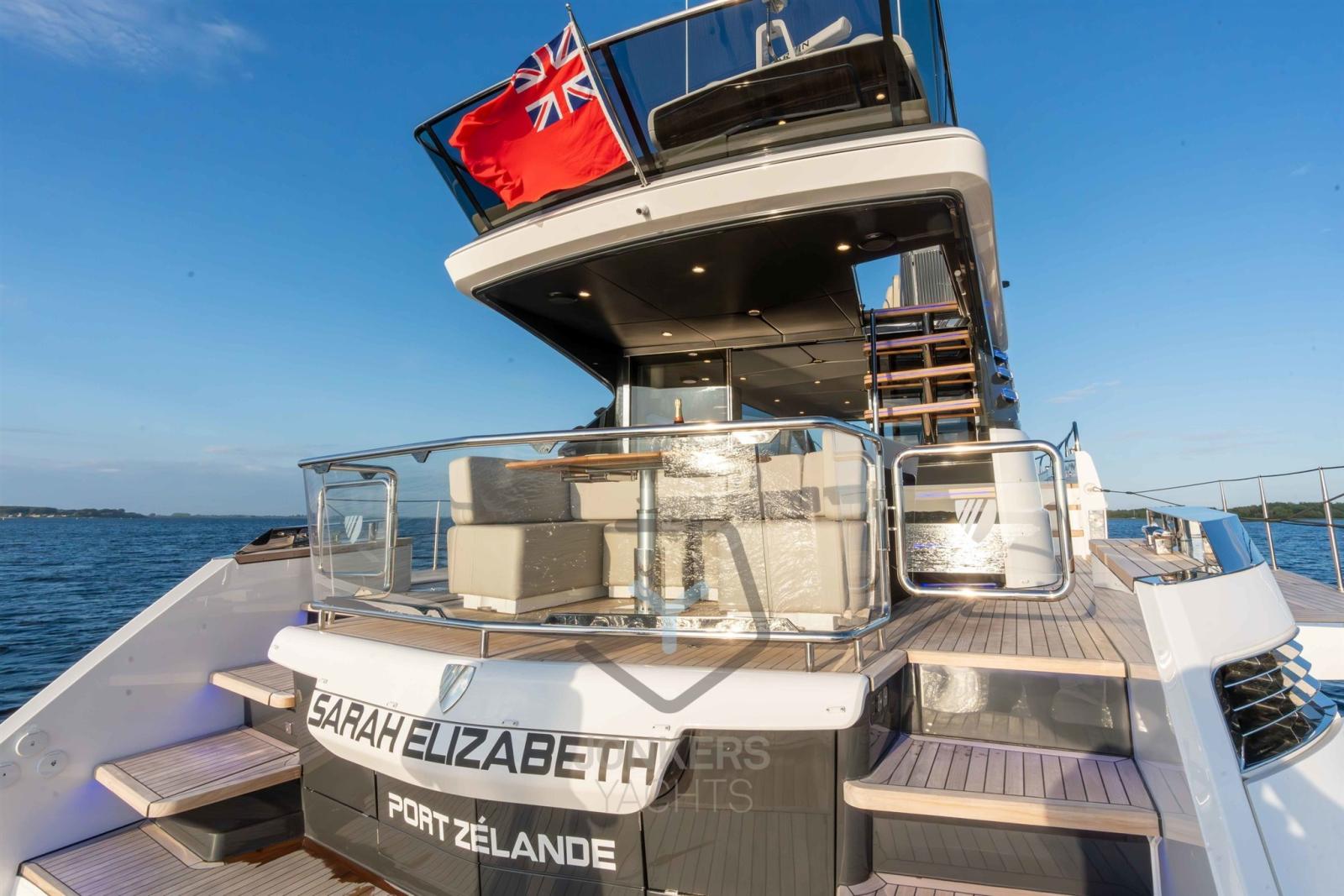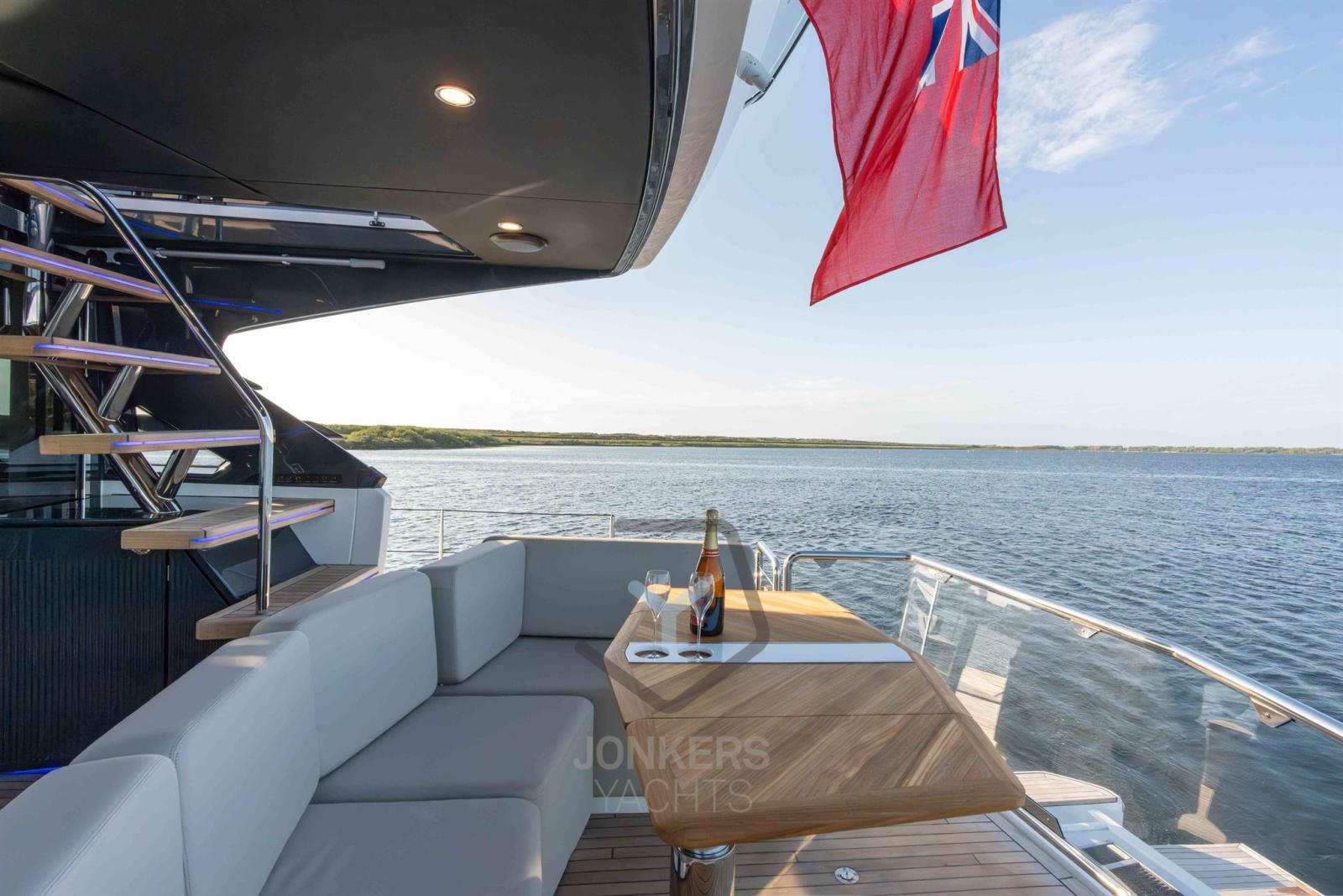 Grâce à notre nouveau design innovant Beach Club, chaque centimètre du tout nouveau Squadron 58 a été optimisé pour améliorer chaque moment que vous passez à bord. Prenez les balcons rabattables, qui, en appuyant sur un bouton, s’abaissent pour augmenter l’espace de votre pont des deux côtés du yacht. De plus, grâce à la plate-forme de bain submersible coulissante intégrée, vous pouvez désormais doubler l’espace utilisable sur le pont en quelques secondes seulement, puis utiliser l’espace étendu pour créer une élégante descente dans l’eau.