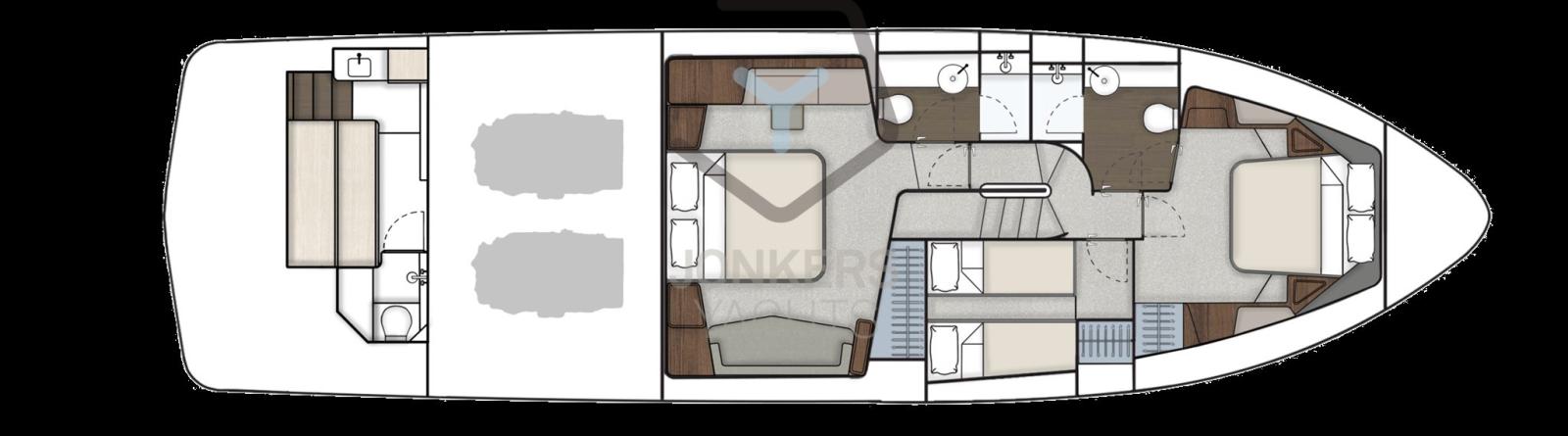 Une caractéristique immédiatement reconnaissable sur les modèles Squadron depuis 1991, ce sont les trois ailerons distinctifs qui ornent gracieusement les deux côtés du yacht. Le Squadron 58 n’est pas différent, rendant hommage à cet ancêtre du design, mais avec des ailerons étonnamment réinventés qui capturent l’évolution subtile du design global.