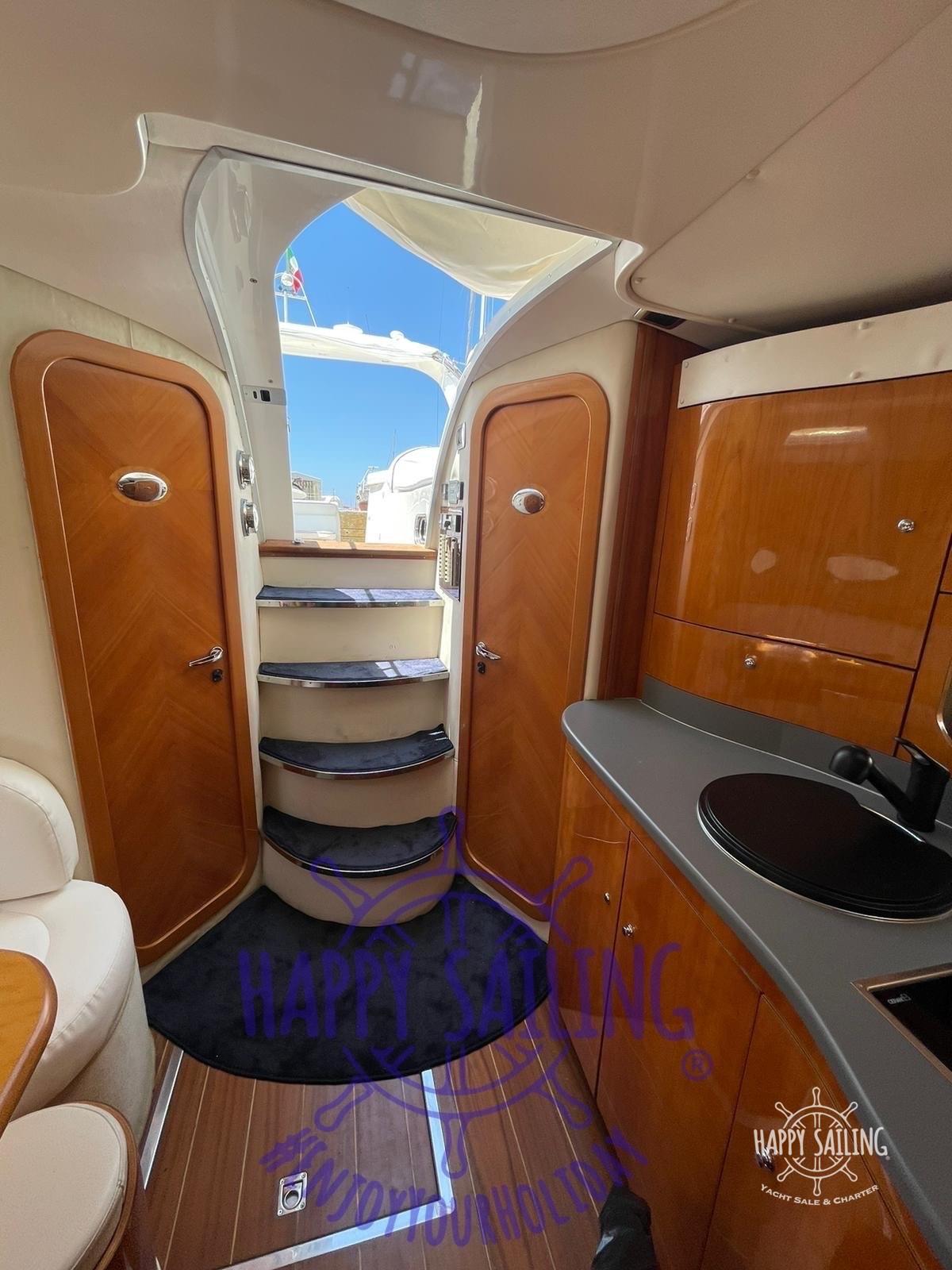 Alarme moteur, Alarme de pompe de cale, Ouverture du compartiment moteur électrique, Eau sous pression, Douche de cockpit, Phare de poursuite, Flaps électriques, Extincteur(s) fixe(s), Lavabo dans le cockpit, Éclairage de courtoisie, Spots sous-marins, Passerelle, Plateforme arrière (in teak nuovo 2023), Cockpit en teck, Prise de quai, Rollbar, Guindeau électrique, Echelle de bain, table de cockpit (grigio).