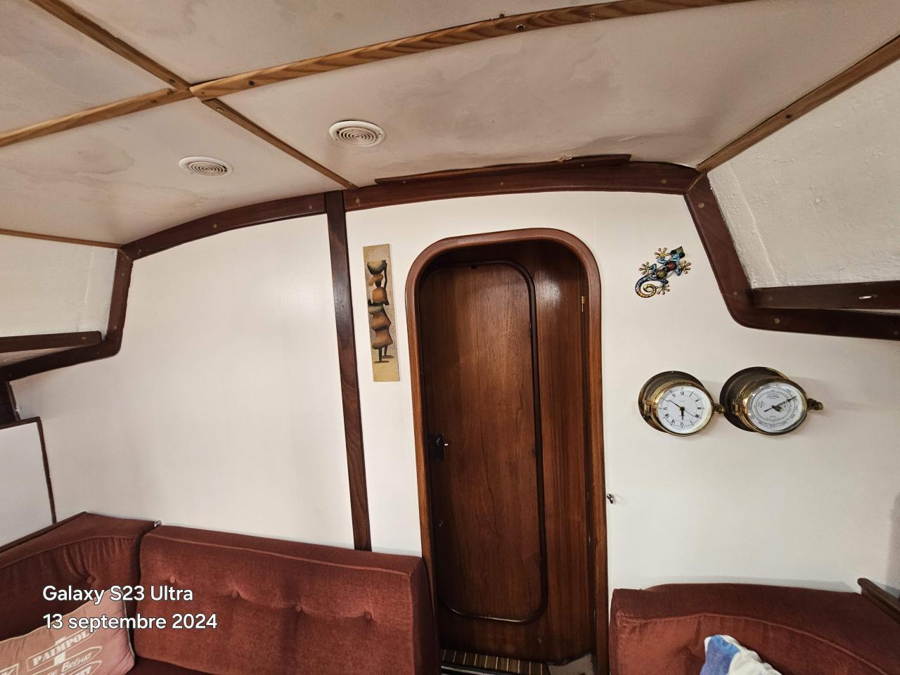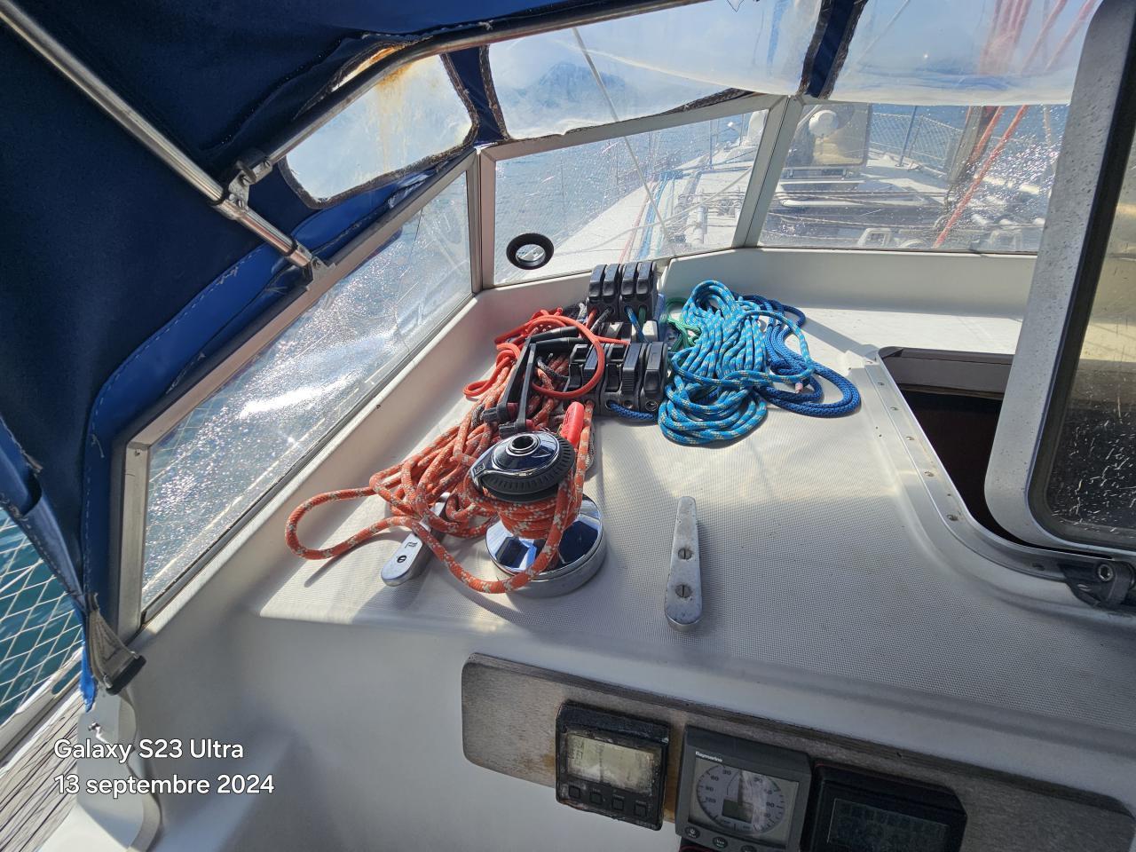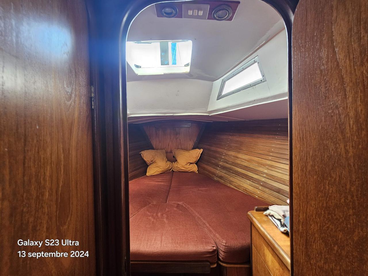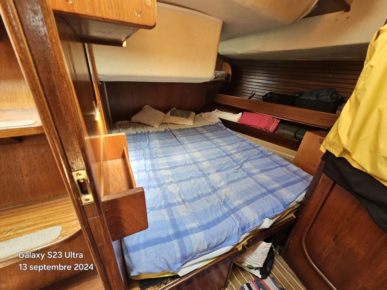 Une deuxième salle d’eau à l’arrière-bâbord transformée en petit atelier et réserve à outils avec de nombreux outils, accastillage et divers bateaux