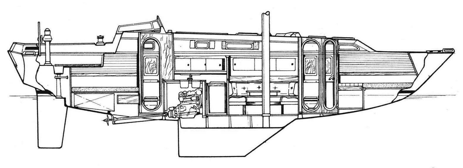 Table du carré et banquette à bâbord avec table convertible en un lit double