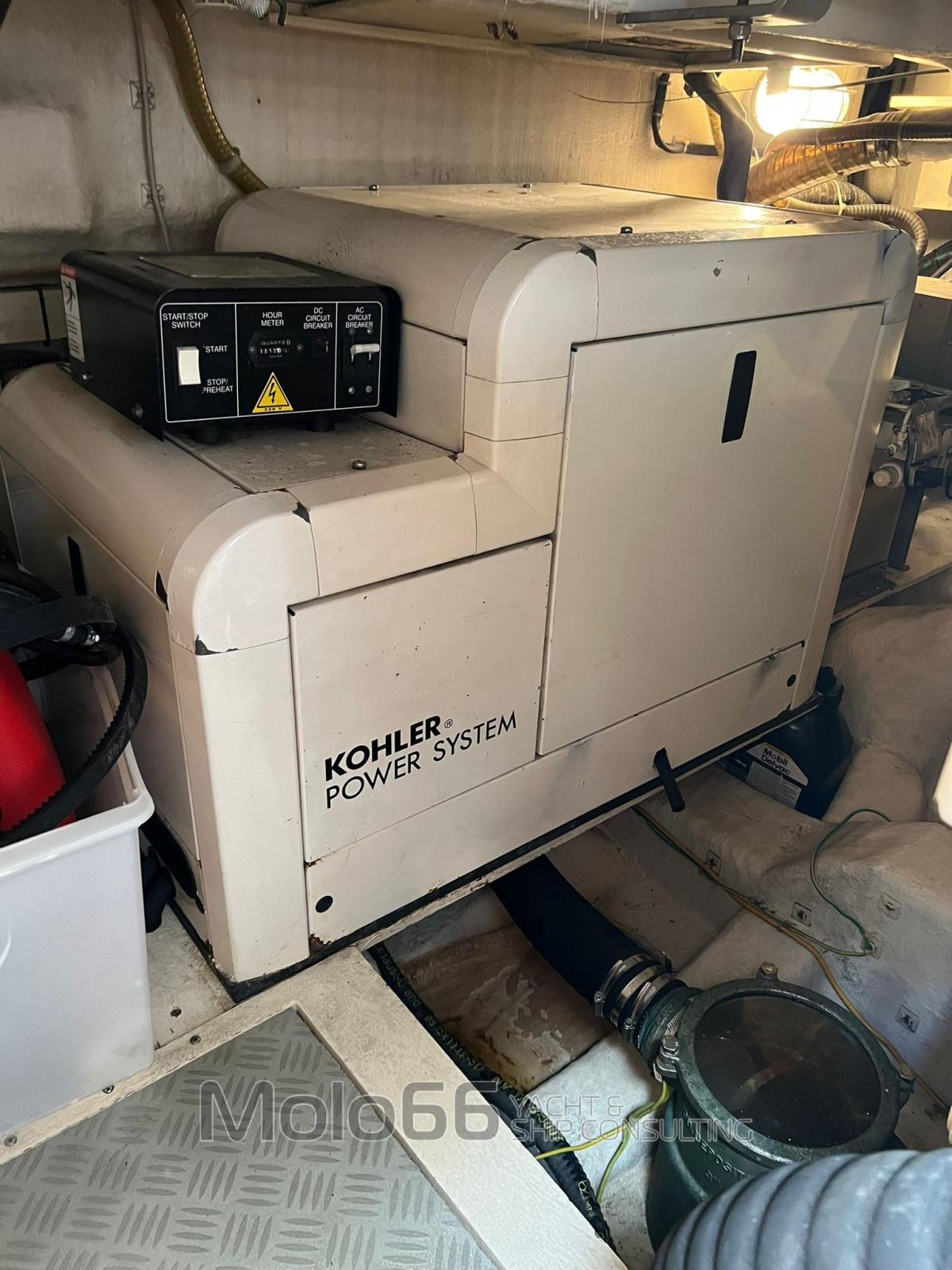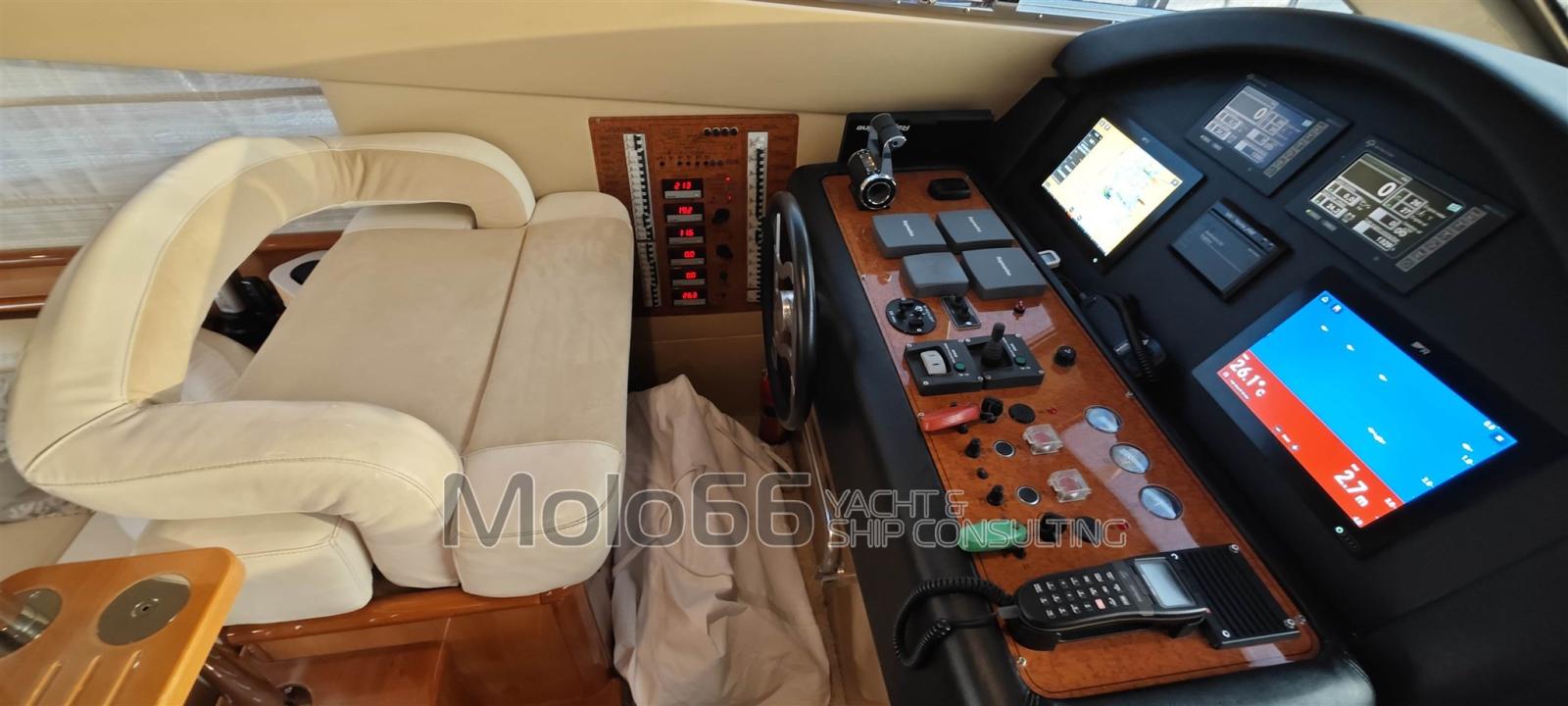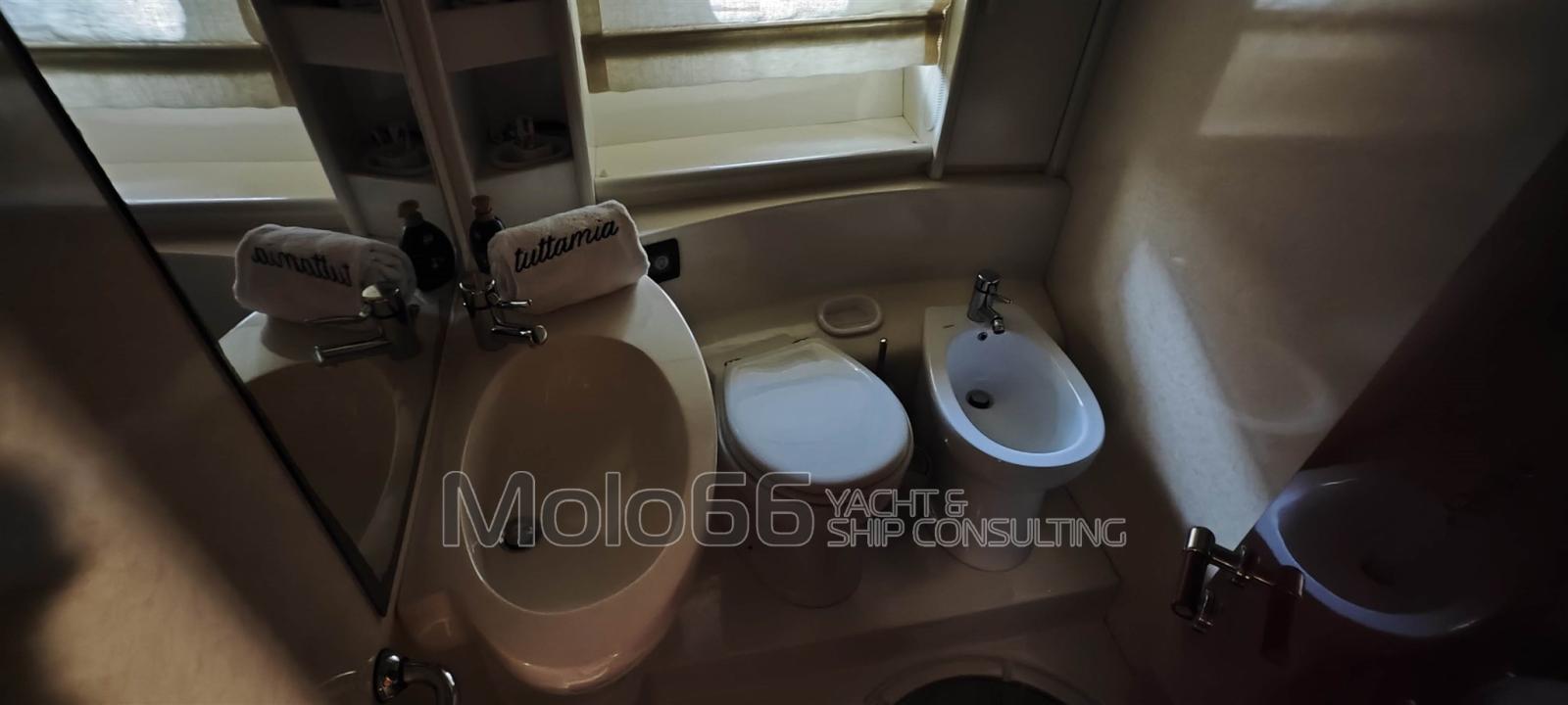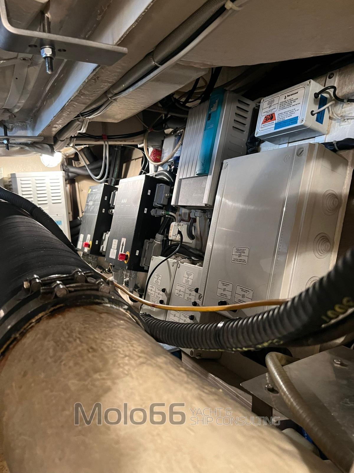 Alarme gaz, Alarme moteur, Alarme de pompe de cale, Ligne d'arbre de rechange, Eau sous pression, 5 Batteries, Douche de cockpit, Double barre à roue, Hélice de rechange, Phares fixes arrière, Phare de poursuite, Flaps hydrauliques, Bossoirs pour annexe, Extincteur(s) fixe(s), Indicateurs de flaps, Lavabo dans le cockpit, Éclairage de courtoisie, Spots sous-marins, Passerelle, Pompe de cale automatique, Cockpit en teck, Prise de quai, Connexion eau sous pression à quai, Onduleur, Guindeau électrique, Echelle de bain, table de cockpit, Annexe, Corne, 2 Winch électrique arrière.