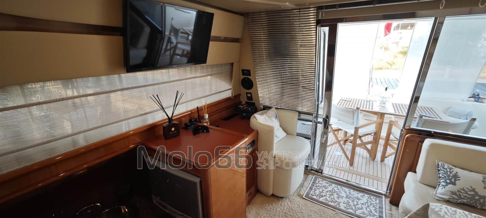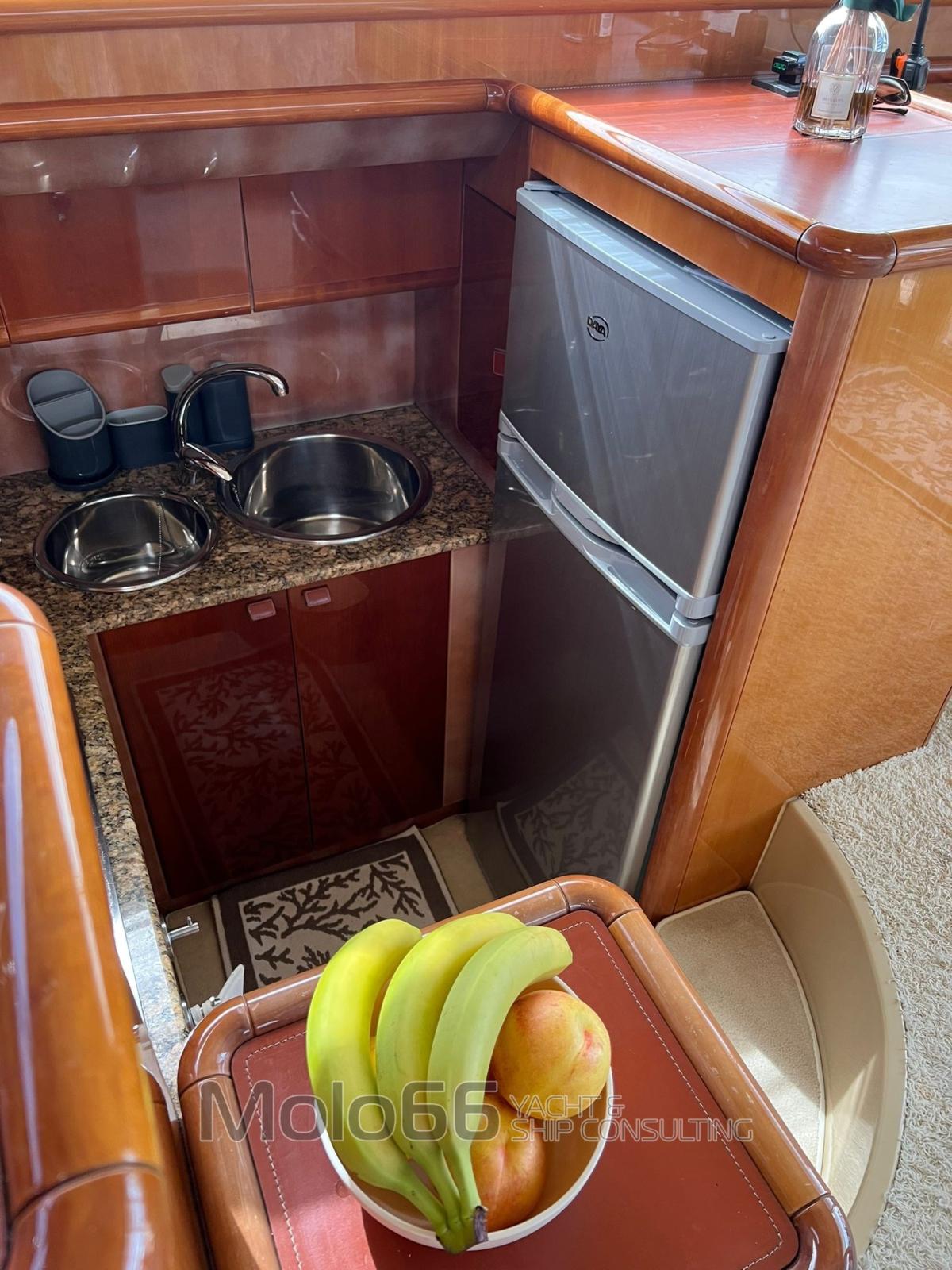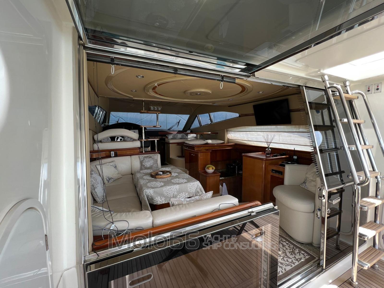 Alarme gaz, Alarme moteur, Alarme de pompe de cale, Ligne d'arbre de rechange, Eau sous pression, 5 Batteries, Douche de cockpit, Double barre à roue, Hélice de rechange, Phares fixes arrière, Phare de poursuite, Flaps hydrauliques, Bossoirs pour annexe, Extincteur(s) fixe(s), Indicateurs de flaps, Lavabo dans le cockpit, Éclairage de courtoisie, Spots sous-marins, Passerelle, Pompe de cale automatique, Cockpit en teck, Prise de quai, Connexion eau sous pression à quai, Onduleur, Guindeau électrique, Echelle de bain, table de cockpit, Annexe, Corne, 2 Winch électrique arrière.