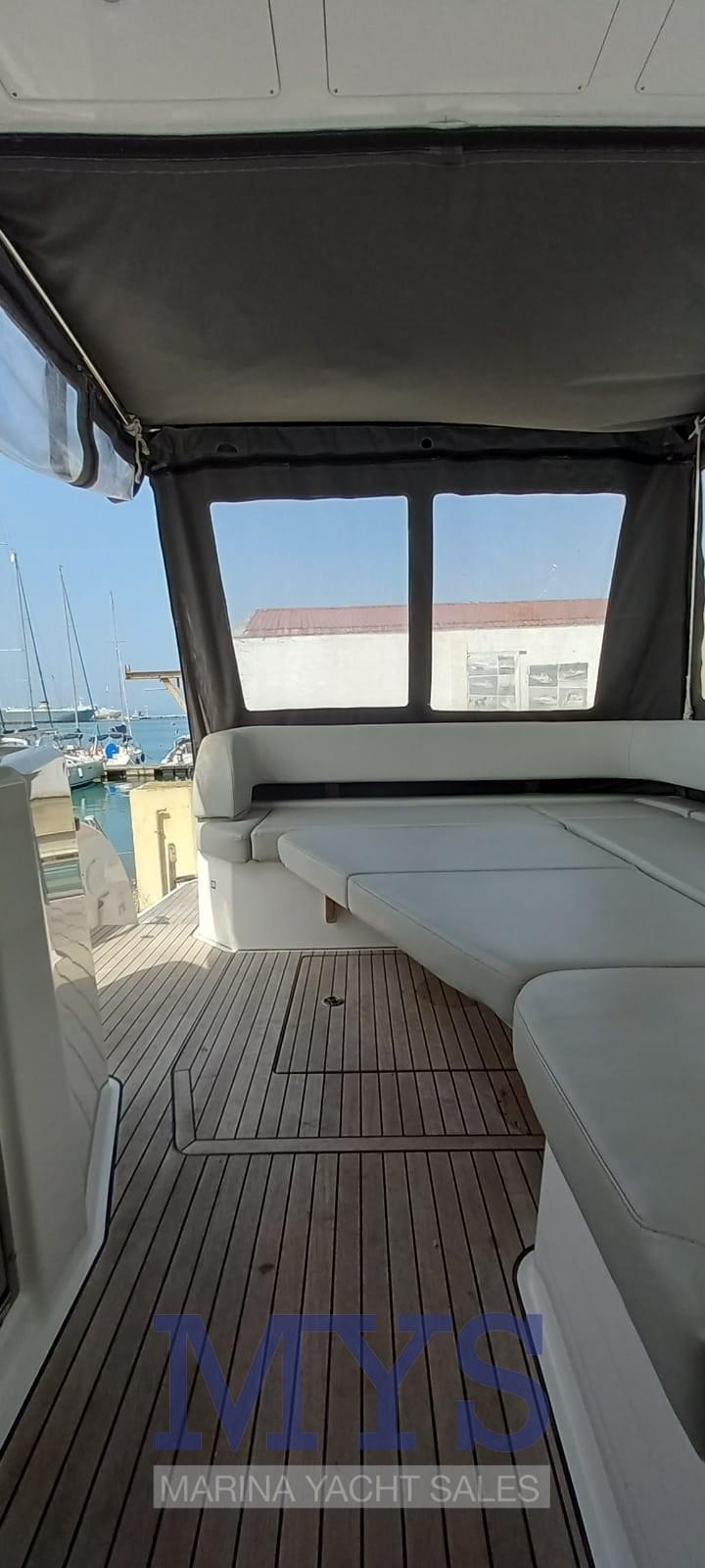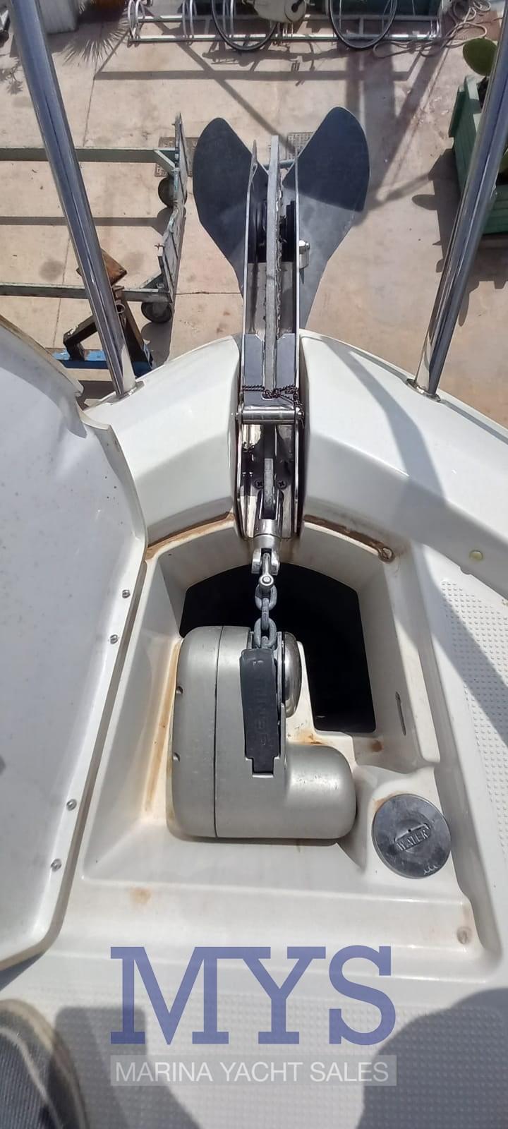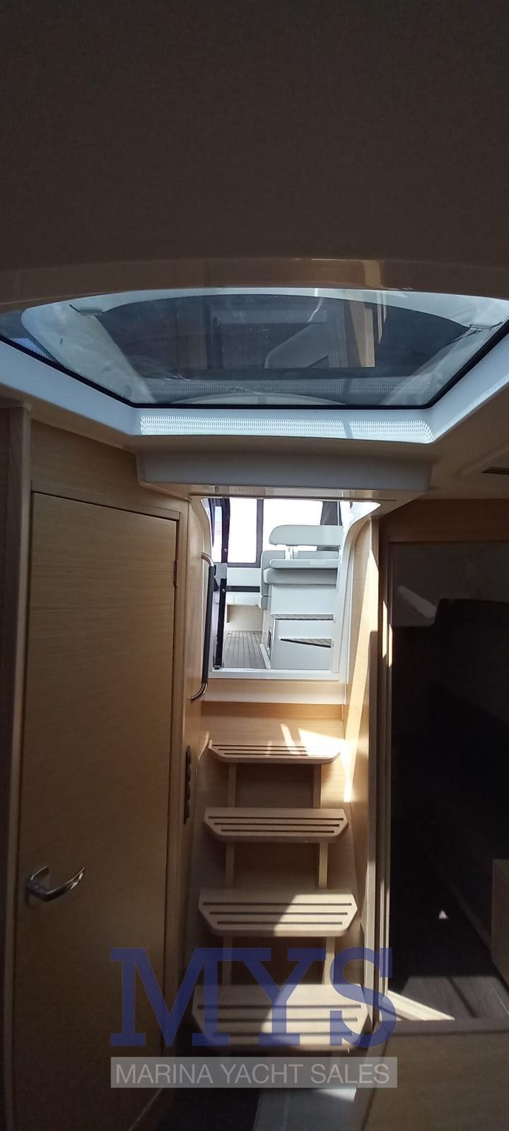 Douche de cockpit, Phare de poursuite, Flaps électriques, Hard top, Plateforme arrière, Cockpit en teck, Prise de quai, Connexion eau sous pression à quai, Guindeau électrique, Echelle de bain, table de cockpit, Corne.