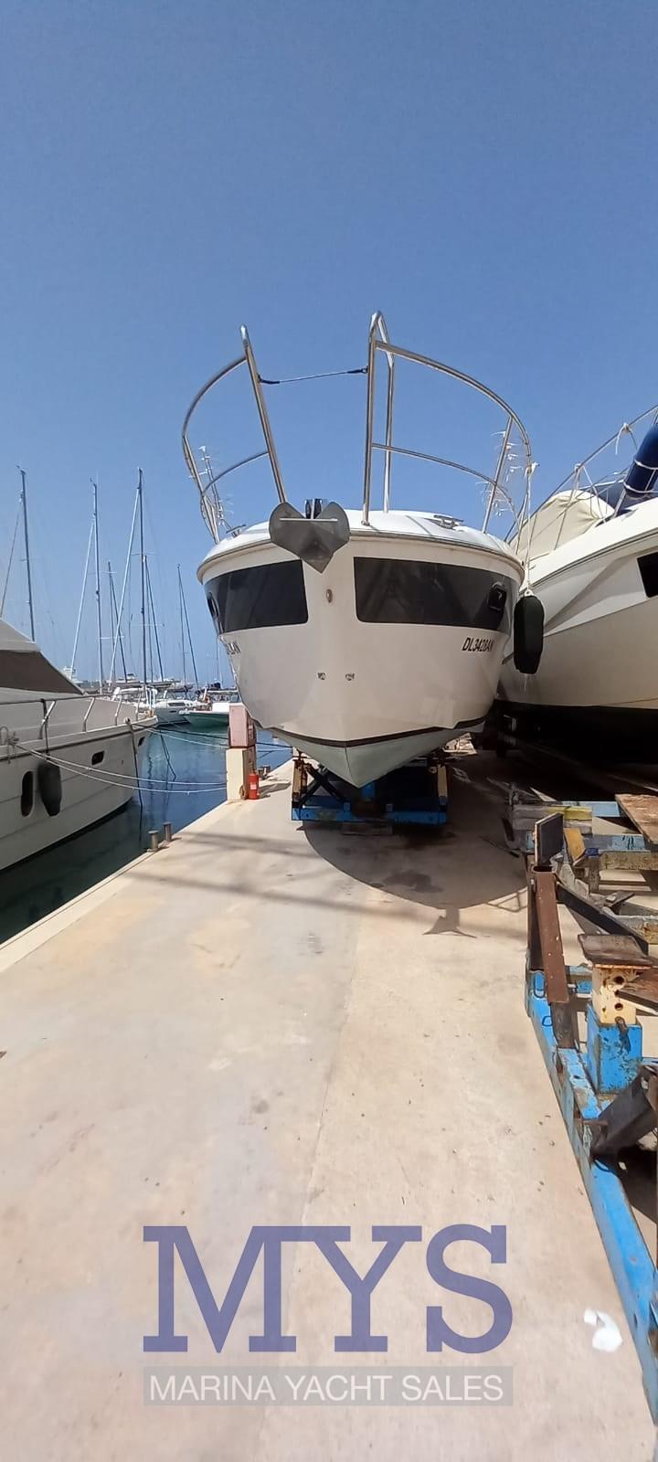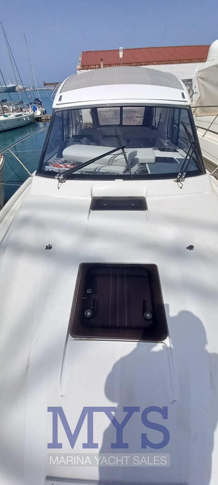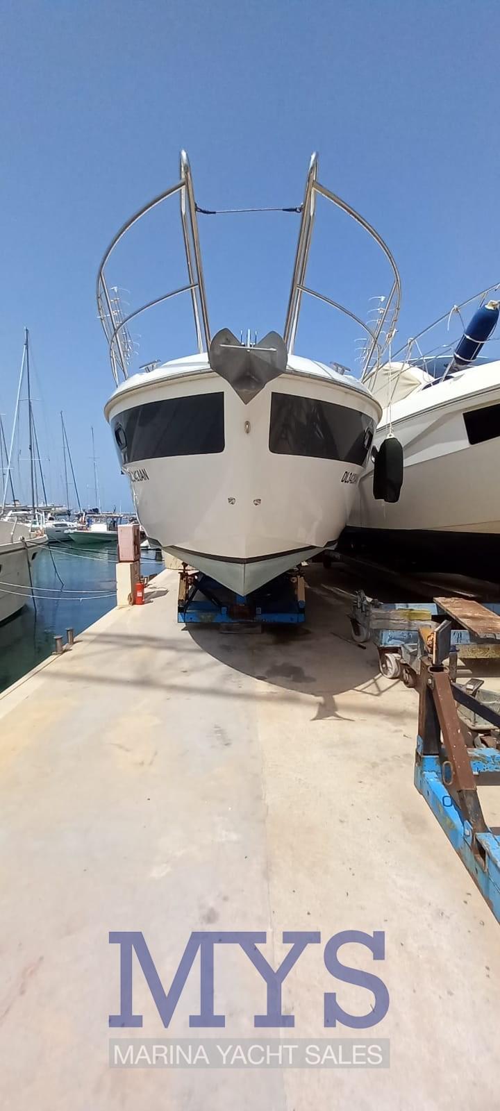 Douche de cockpit, Phare de poursuite, Flaps électriques, Hard top, Plateforme arrière, Cockpit en teck, Prise de quai, Connexion eau sous pression à quai, Guindeau électrique, Echelle de bain, table de cockpit, Corne.