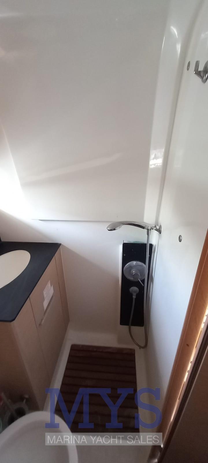 Sous le pont, le bateau est équipé d’un garde-manger, d’un salon, de cabines et d’une salle de bain séparée. La cabine avant est équipée d’un lit double, tandis que la cabine arrière dispose de deux lits simples qui peuvent être combinés pour former un lit double