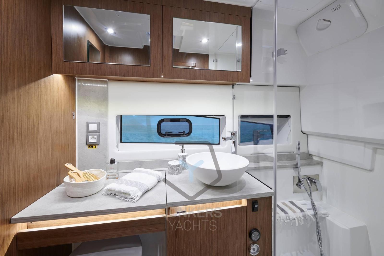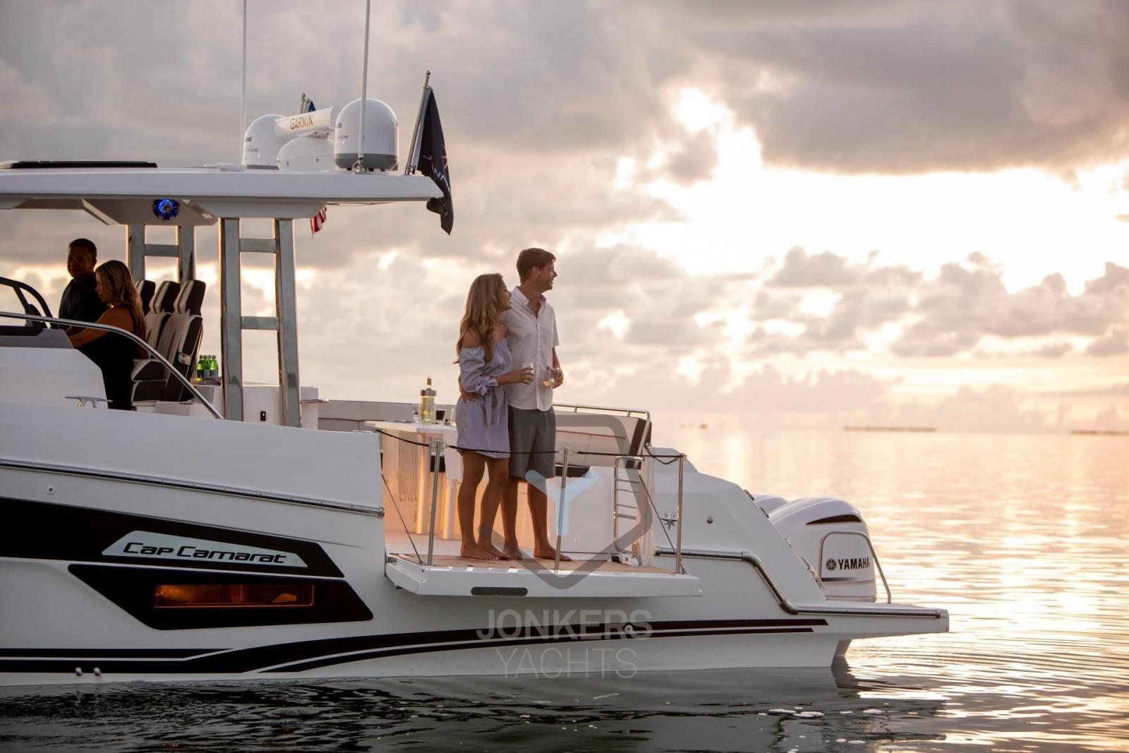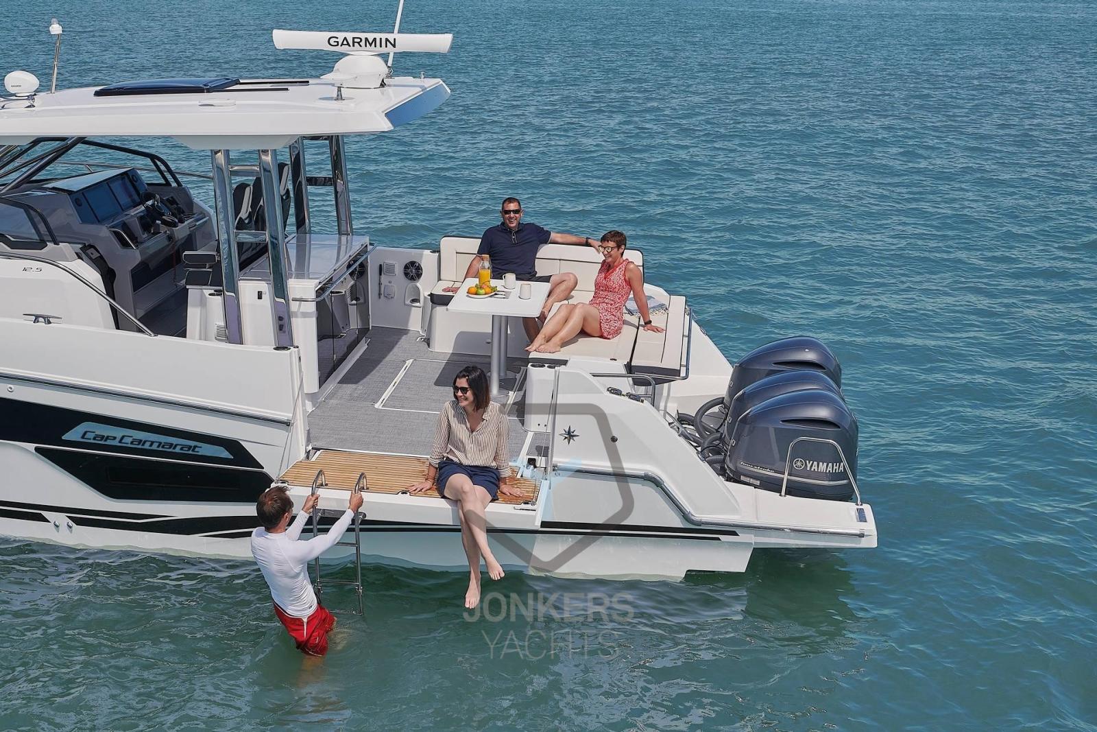 Dans l’esprit de Cap Camarat, les espaces de vie parfaitement équilibrés intègrent un certain nombre d’innovations importantes. Le salon avant avec des sièges en vis-à-vis offre un espace de vie supplémentaire exceptionnel. La terrasse du cockpit est un espace de vie exceptionnel au mouillage. La cuisine extérieure aux multiples configurations devient le point central à bord.
