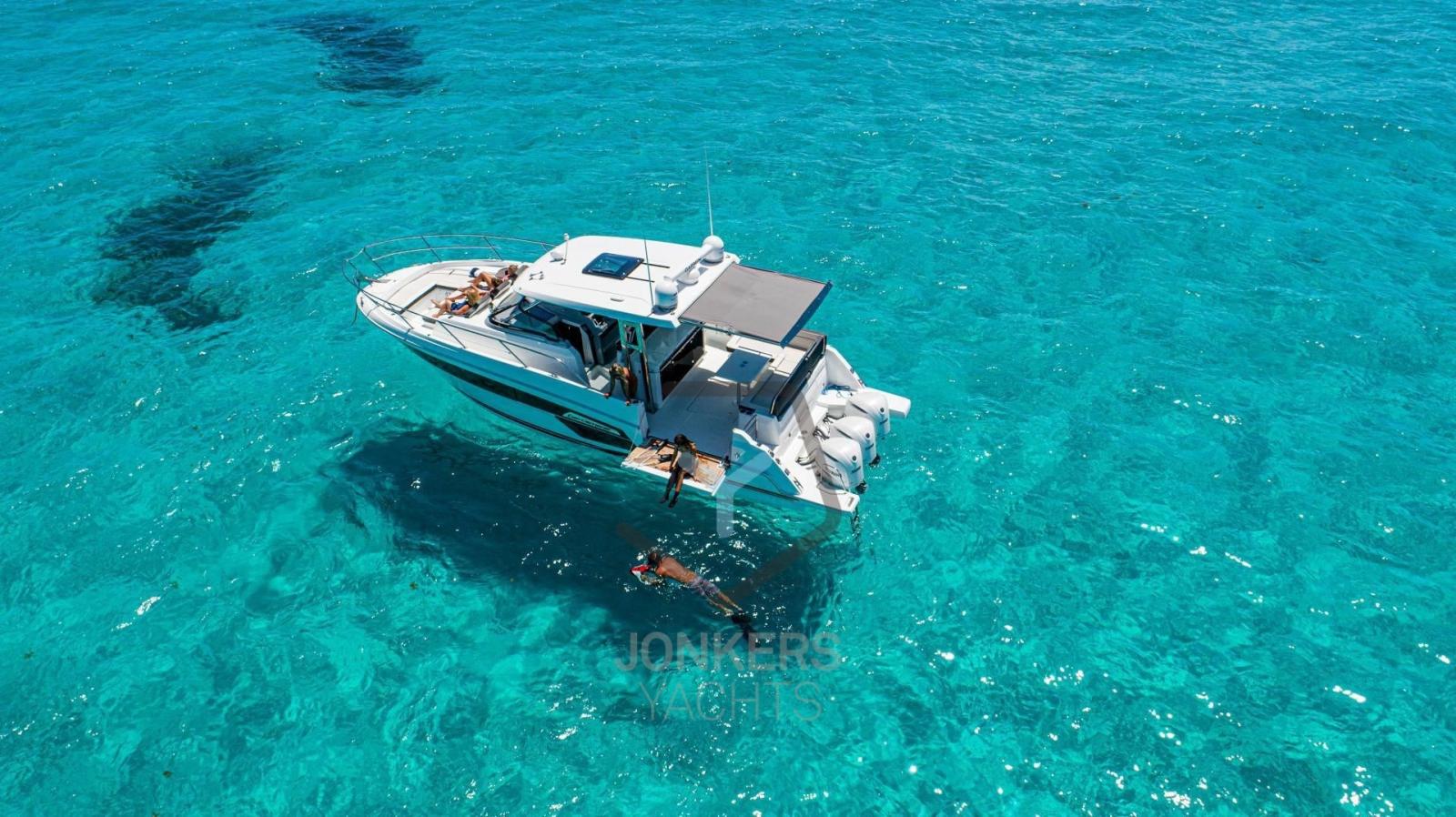 Avec une puissance maximale de 900 CV (2 x 450 CV ou 3 x 300 CV) et une coque profilée en forme de V conçue par Michael Peters, l’un des meilleurs spécialistes mondiaux, ses performances répondent à toutes les attentes. Les premiers essais en mer confirment les hautes performances et le confort de navigation remarquable.