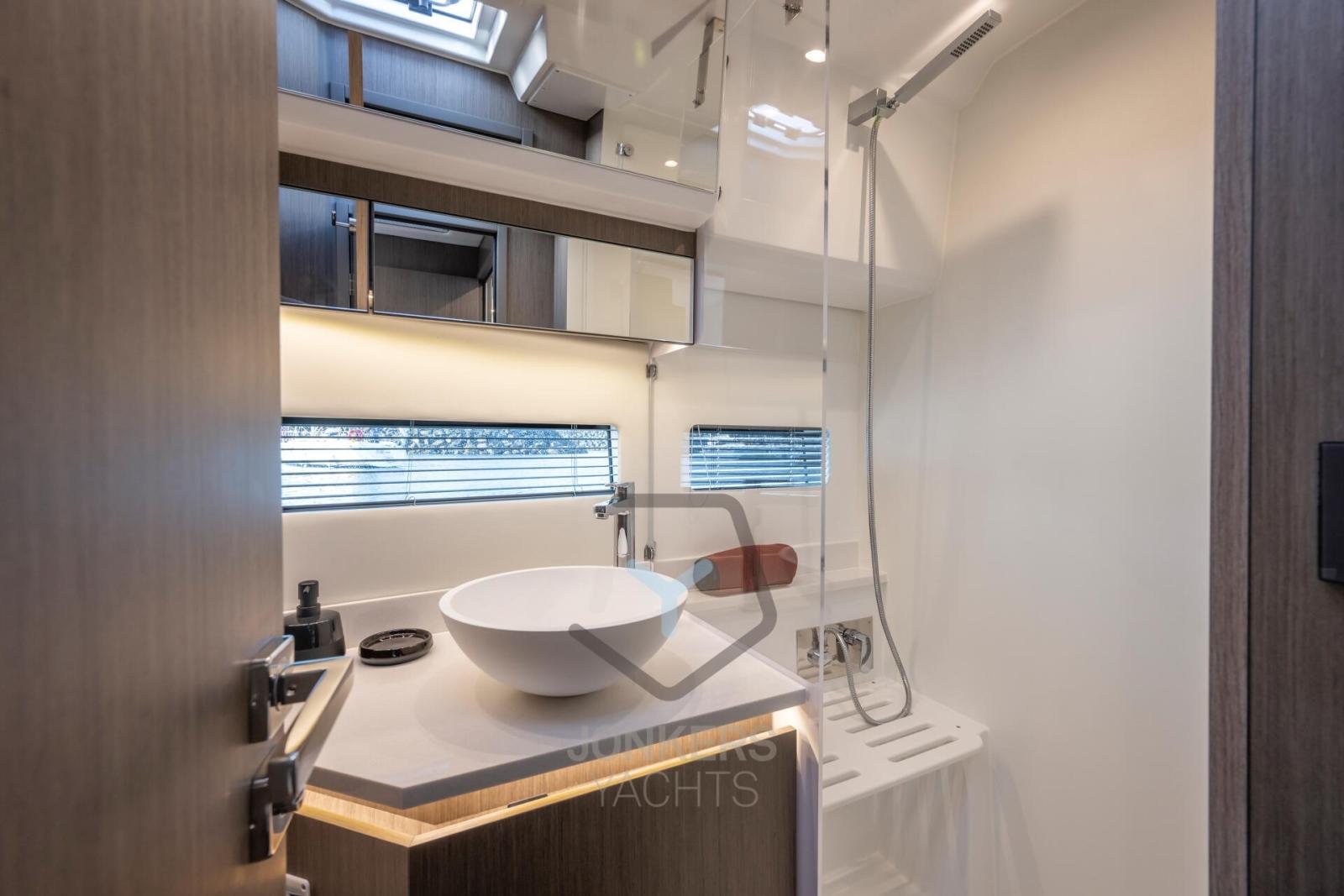 Avec de grandes fenêtres lumineuses et une vue panoramique sur l’eau, la vie est agréable à bord de ce vaisseau amiral, rehaussée par une sélection raffinée et contemporaine de matériaux. Prenez place à la barre et profitez des toutes dernières technologies à bord des plus grands bateaux pour une utilisation facile. La porte latérale tribord offre un accès facile et facilite les manœuvres afin que vous puissiez naviguer en toute confiance. Larguez les amarres et installez-vous dans l’une des trois cabines confortables, pour un repos paisible sur l’eau à chaque arrêt de votre croisière !