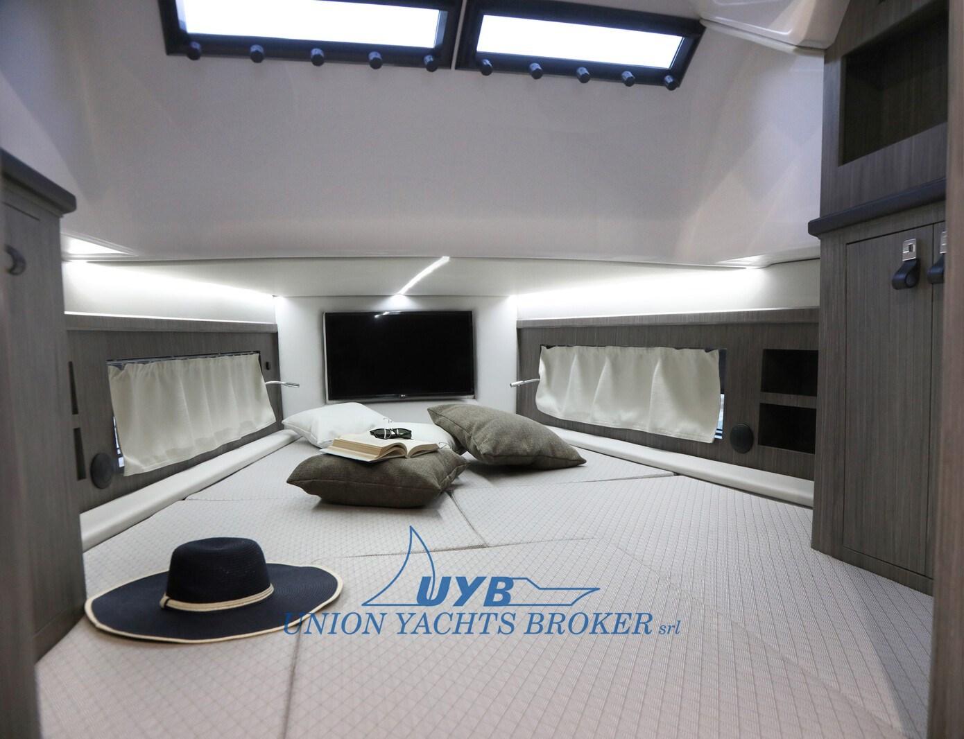 Alarme moteur, Alarme de pompe de cale, Ouverture du compartiment moteur électrique, Eau sous pression, Douche de cockpit, Pompe de cale automatique, Prise de quai, Guindeau électrique, Echelle de bain, table de cockpit, Corne, T-Top.