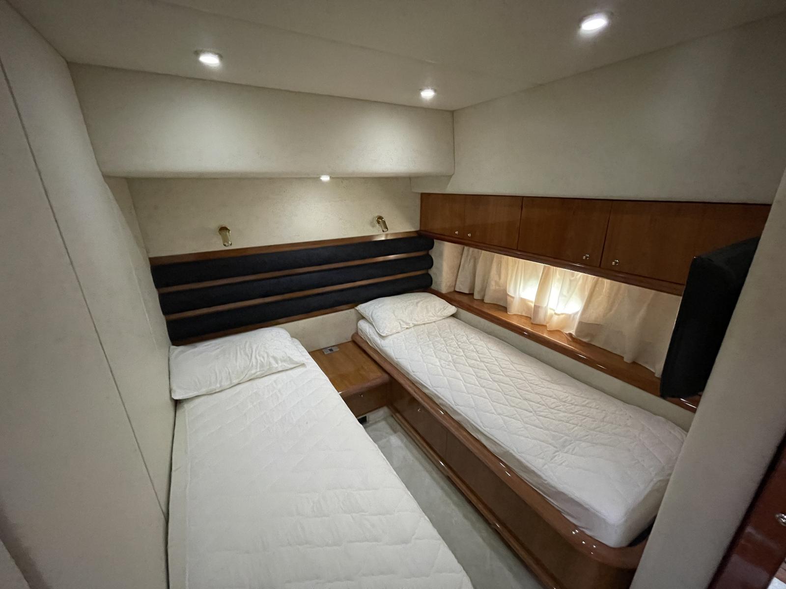 Les aménagements comprennent une suite propriétaire avec salle de bain complète, une cabine VIP et deux autres cabines spacieuses.