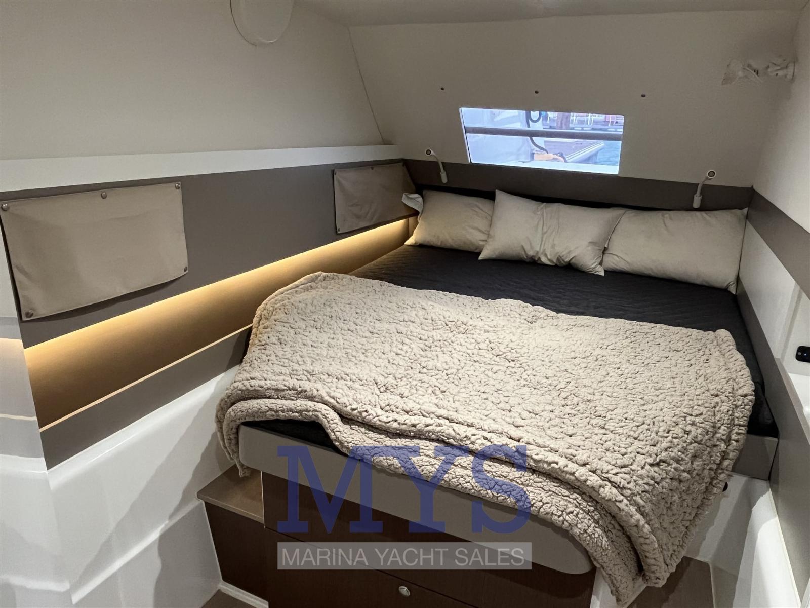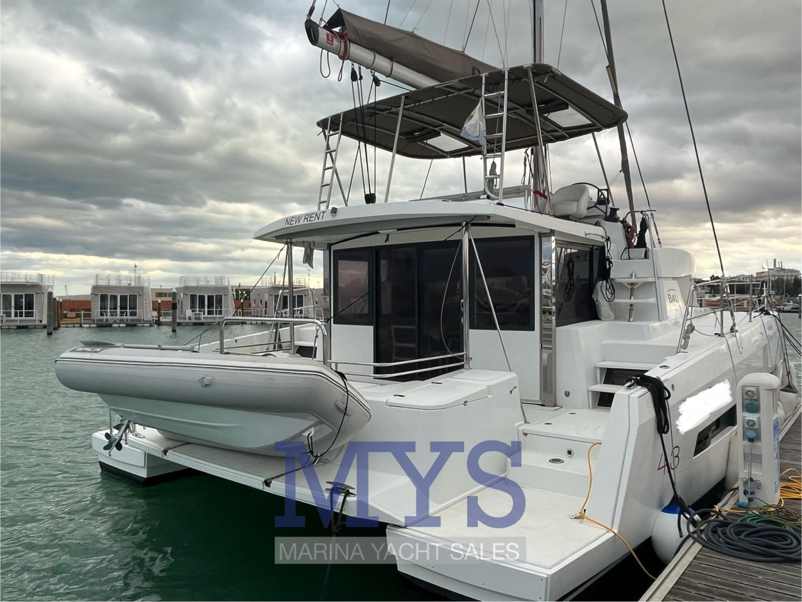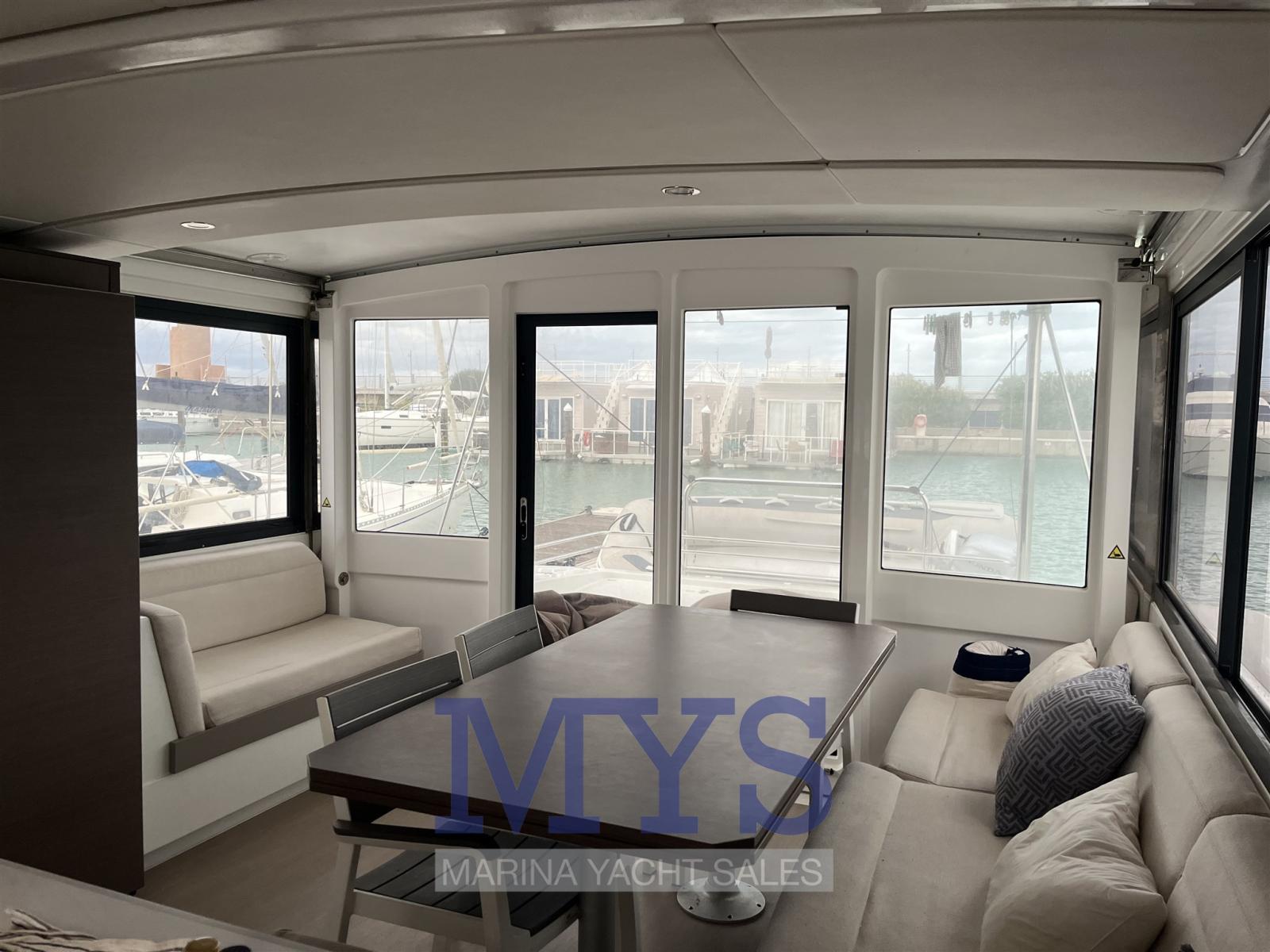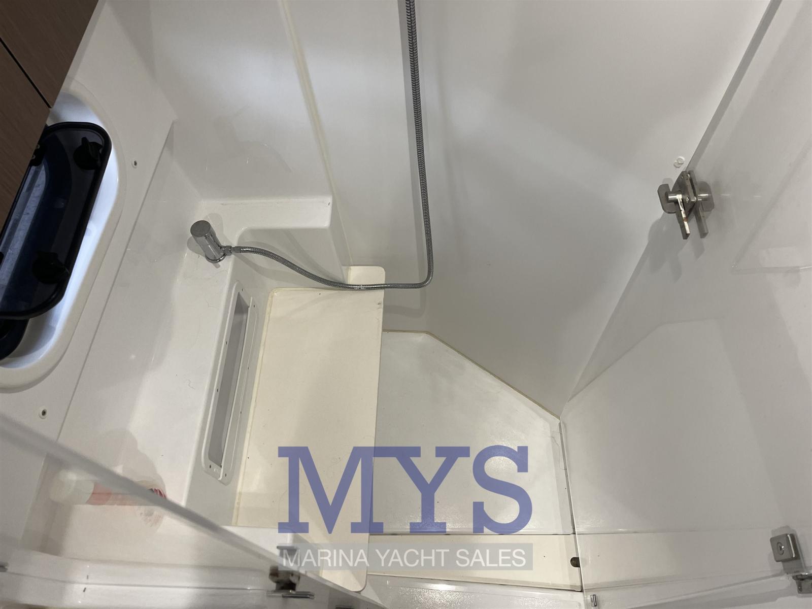 Eau sous pression, Taquets pliants, Douche de cockpit, Garage à annexe, Éclairage de courtoisie, Moteur d'annexe, 2 Panneau solaire, Pompe de cale manuelle, Porte latérale, Guindeau électrique, Gréement monotoron, Echelle de bain, table de cockpit, Annexe, Corne, 4 Winch.