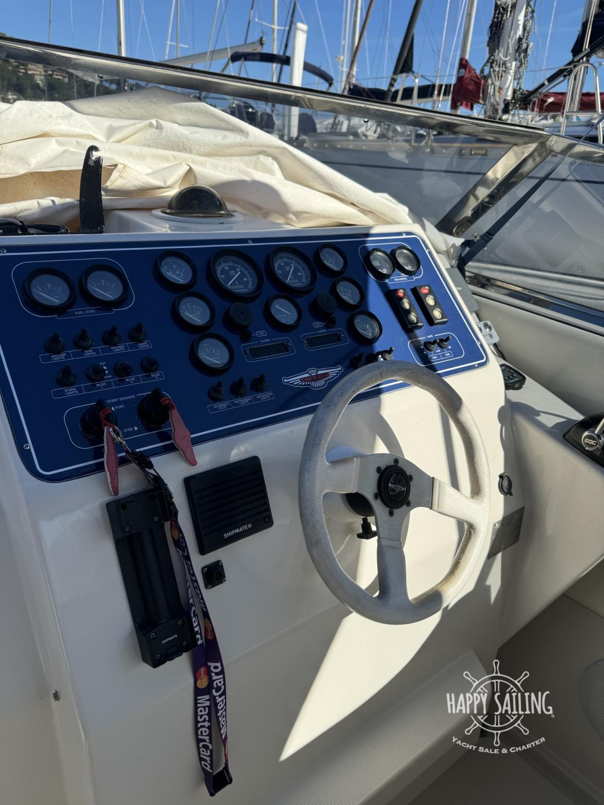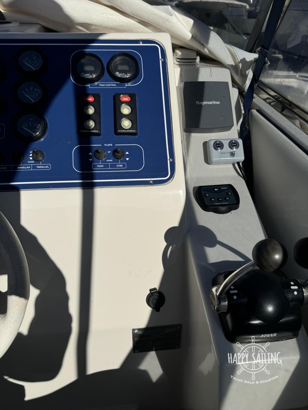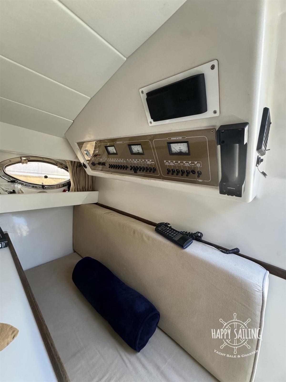 Eau sous pression, Chargeur de batterie (elettrico), Douche de cockpit, Flaps hydrauliques, Passerelle, Plateforme arrière, Pompe de cale automatique, Onduleur, Guindeau électrique, Echelle de bain, table de cockpit.