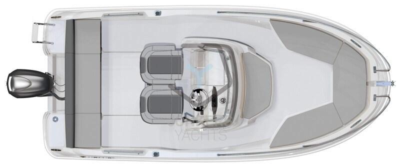 Ce bateau est capable d’atteindre des vitesses élevées tout en restant confortable et économe en carburant. La console sculptée rehausse le style général avec un design ergonomique à la barre, directement inspiré des grands Cap Camarats.