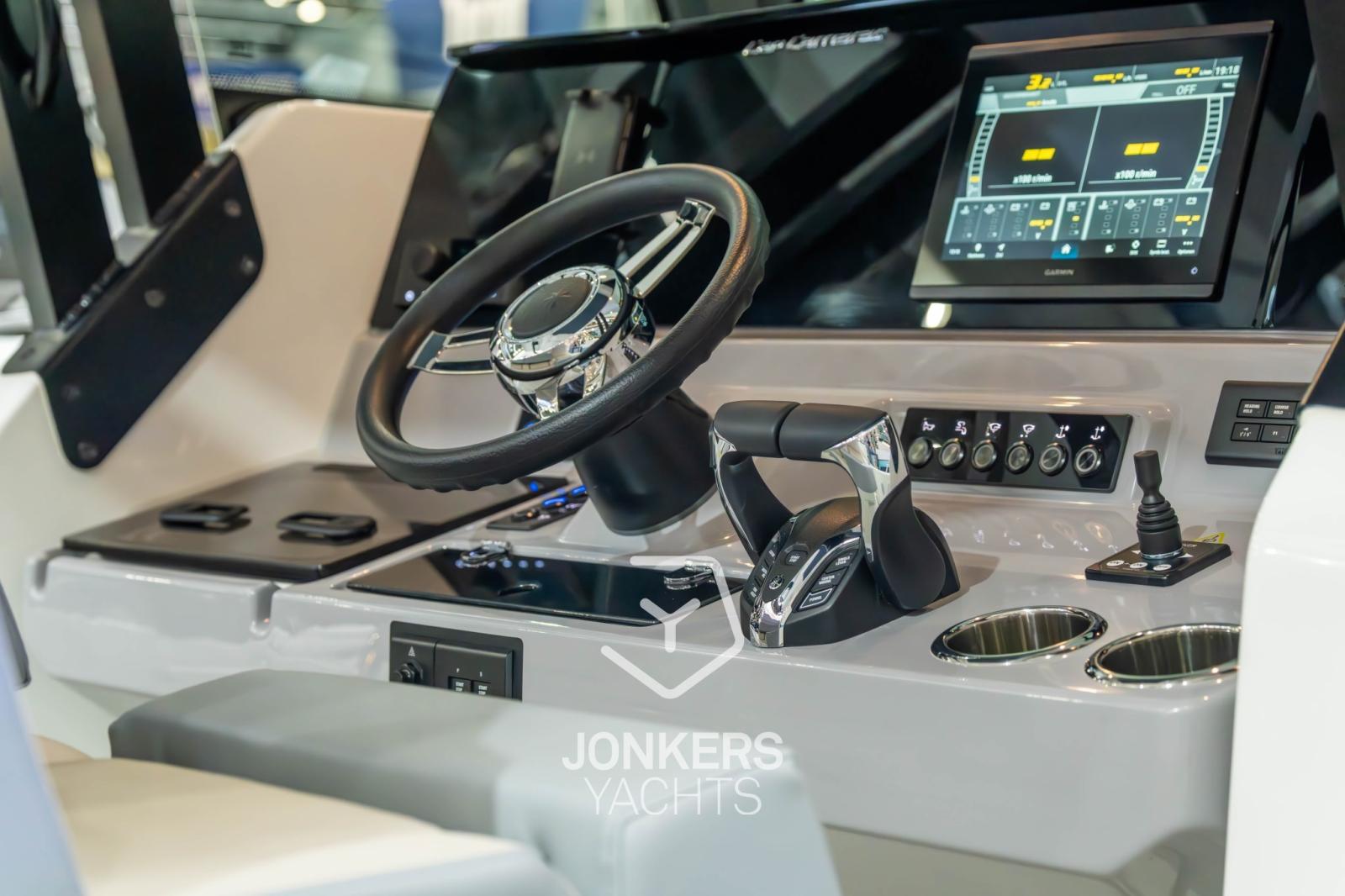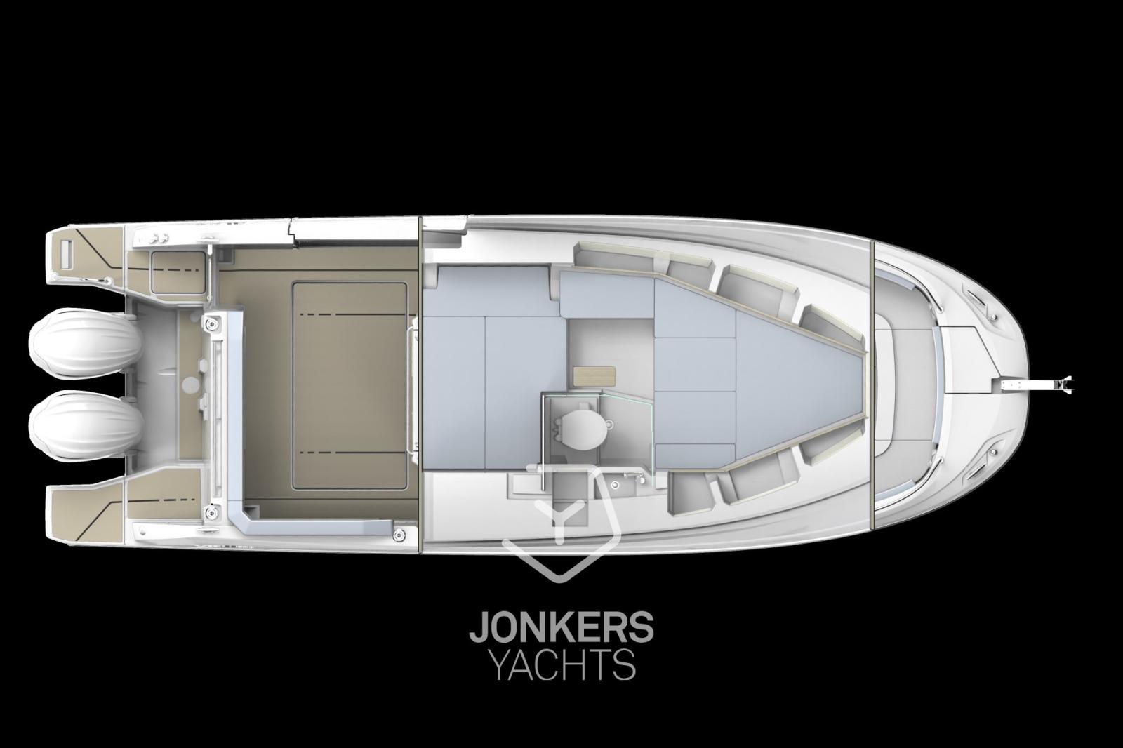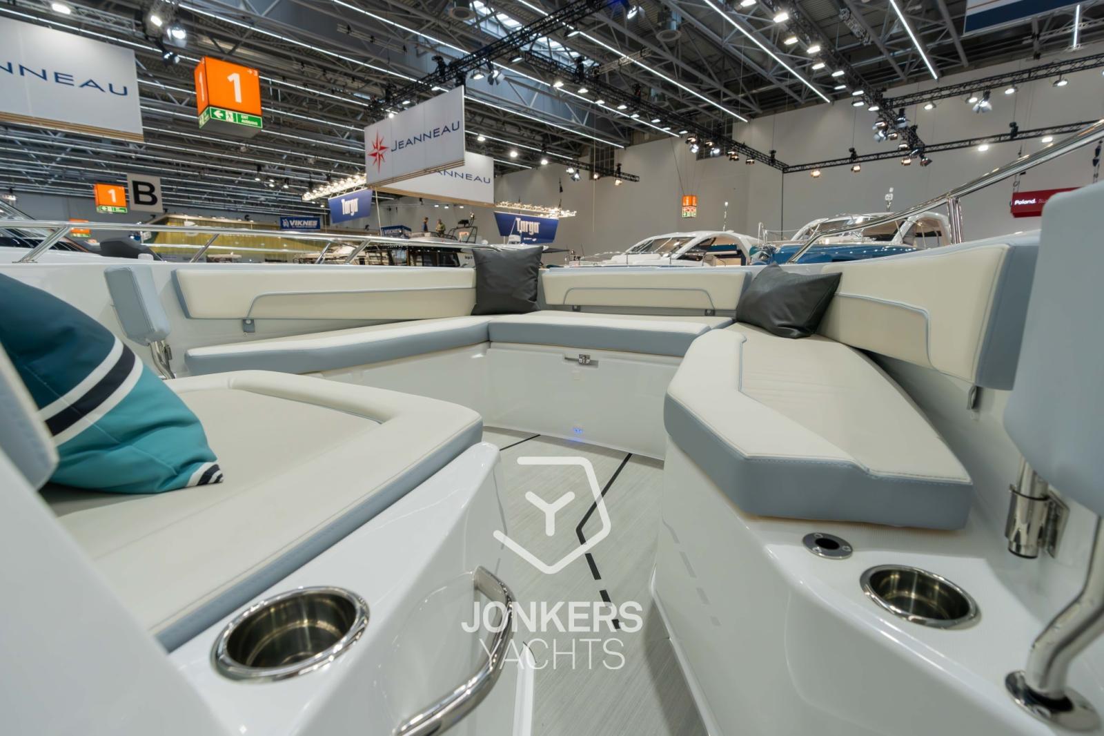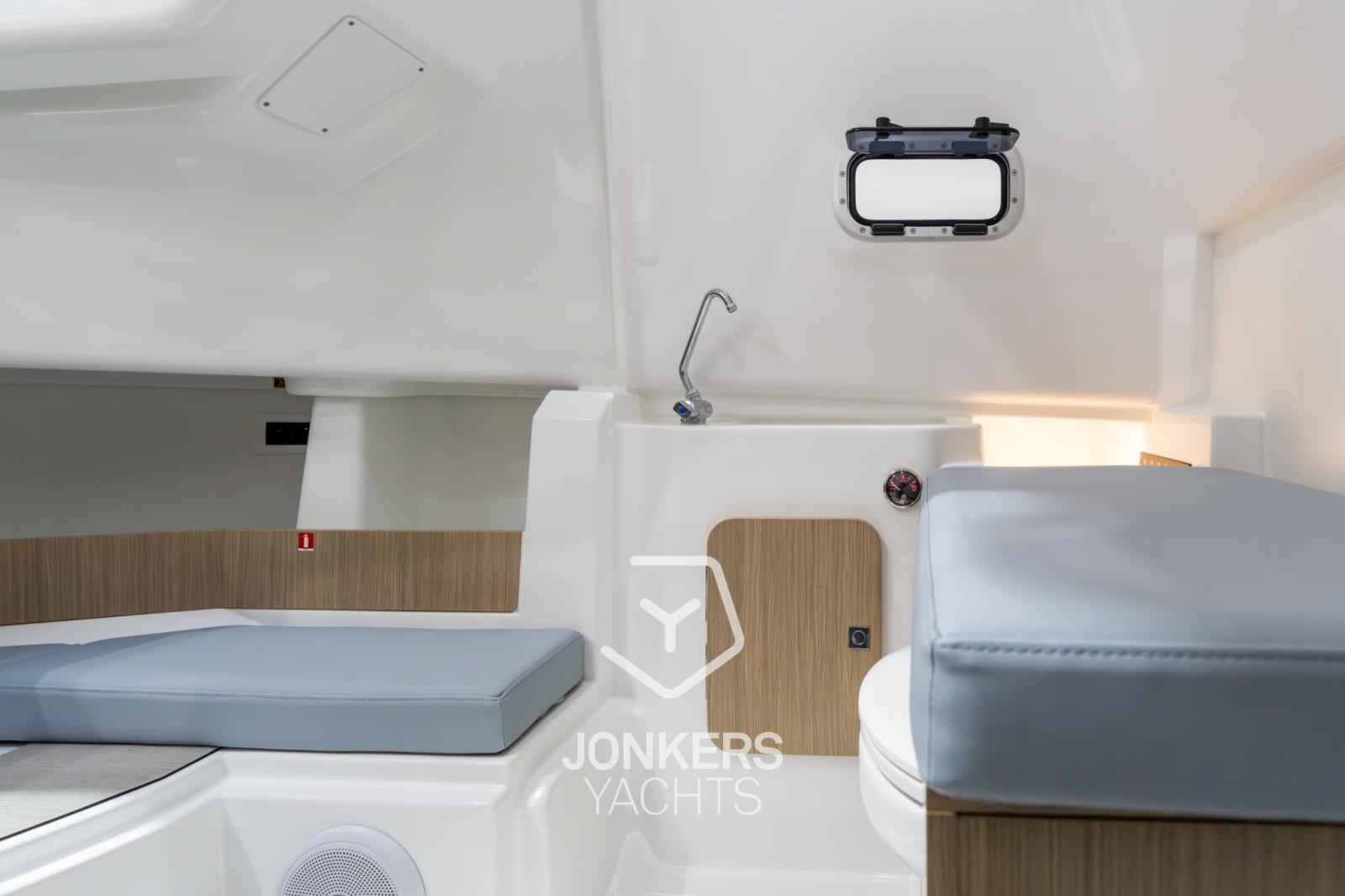 Avec un intérieur surprenant, ce modèle hors-bord dispose d’un espace de vie innovant et lumineux pour passer confortablement une ou deux nuits à bord.