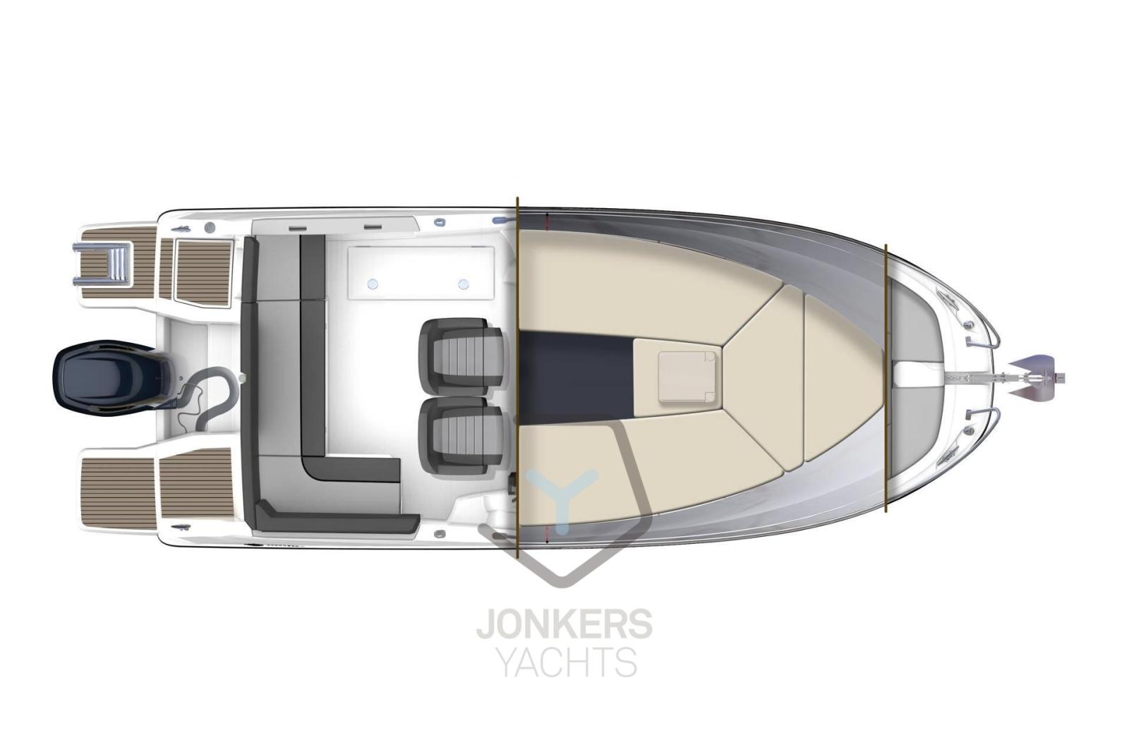 Les plates-formes de bain arrière longues et plates correspondent aux principales caractéristiques de la nouvelle génération. À l’intérieur, le Cap Camarat 6.5 WA Series3 offre une belle cabine spacieuse avec un lit double et des toilettes.