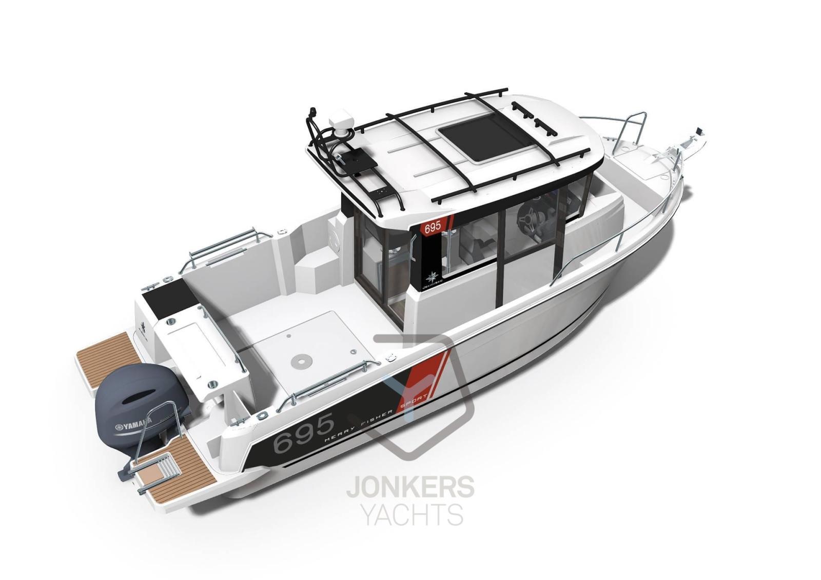Une fois à bord, le MERRY FISHER 695 SPORT SERIE2 est disponible avec et sans porte arrière coulissante pour répondre à tous les besoins et dévoile un design ingénieux, avec une porte latérale très large et un 3ème siège copilote.