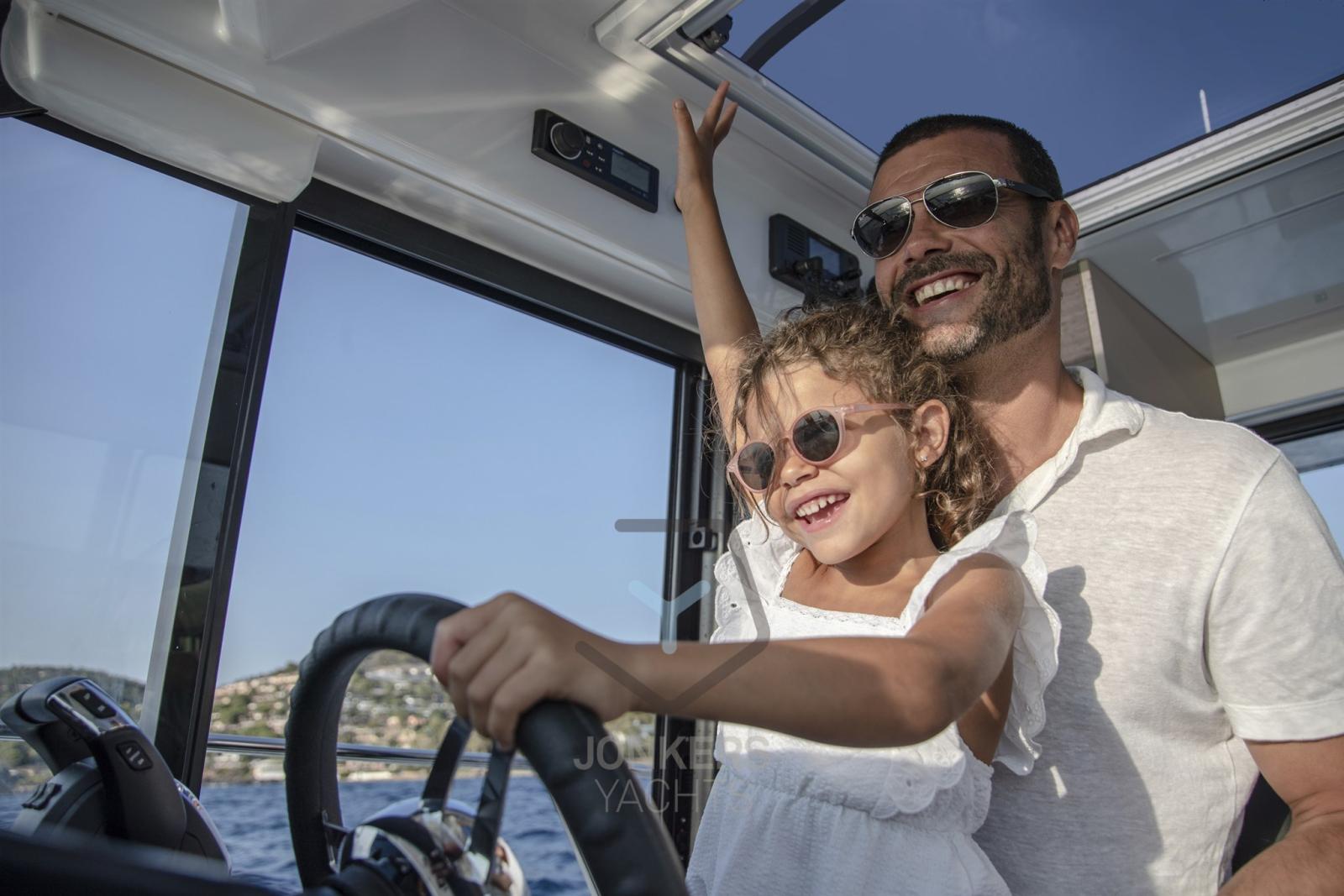 L’espace intérieur offre une vue à 360 degrés sur la mer. Beaucoup d’espace de rangement et une nouvelle cuisine moderne et pratique contribuent à un moment agréable à bord. Lorsque le soleil brille, la porte coulissante en verre peut être coulissante pour amener l’espace de vie dans le cockpit. Avec le Merry Fisher 895 Series 2, les croisières en famille sont possibles en toute saison.