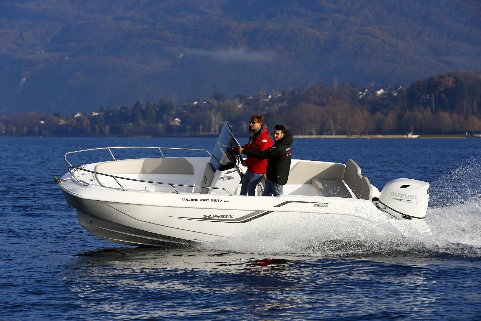 Le Salpa SUNSIX équipé moteur Yamaha débute à 42 500€ TTC avec un 60CV. La version Premium avec Yamaha 100CV est proposée à 47 000€ TTC chez Fil Marine Bretagne.
