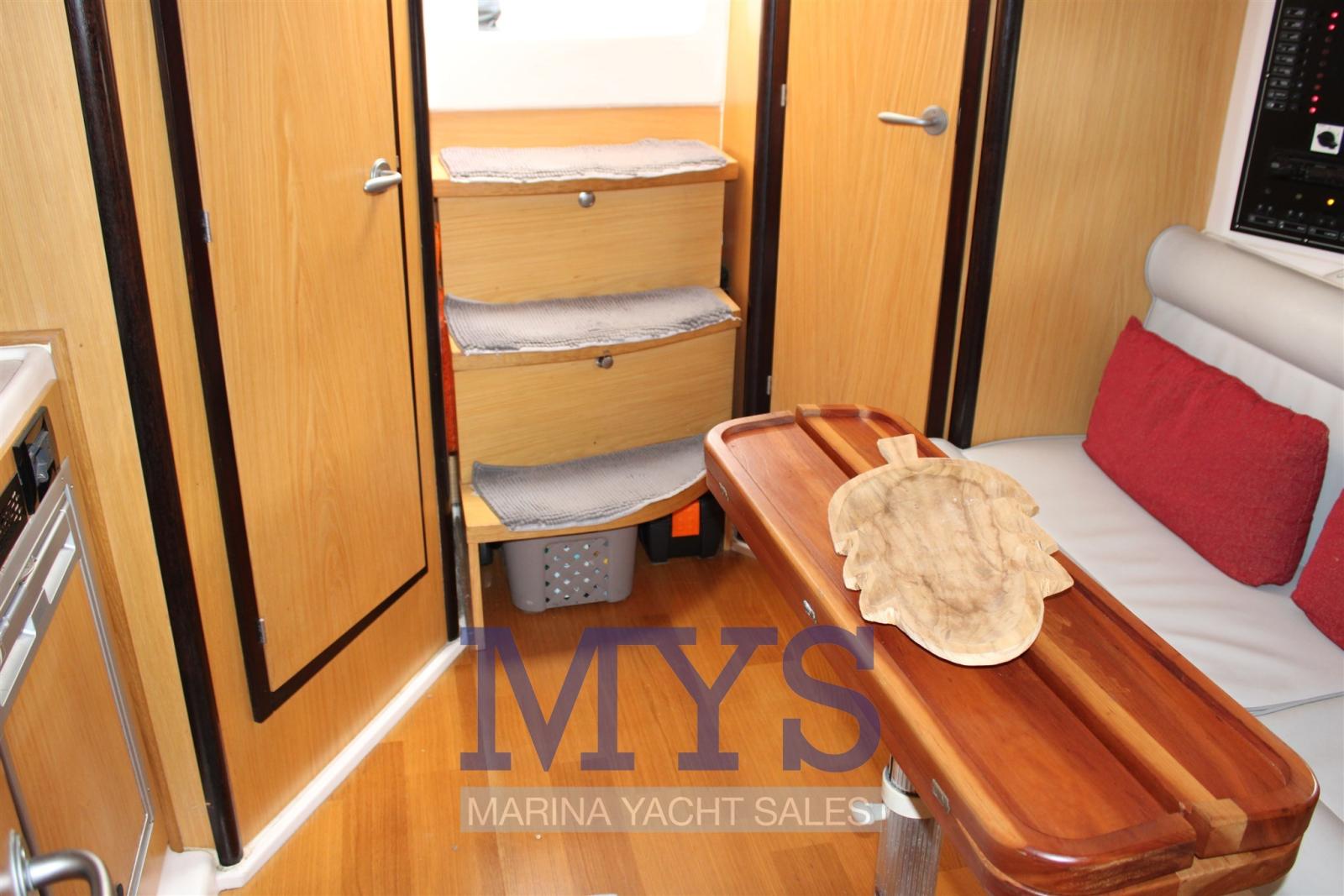 Alarme moteur, Ouverture du compartiment moteur électrique, Eau sous pression, Douche de cockpit, Flaps hydrauliques, Extincteur(s) fixe(s), Indicateurs de flaps, Lavabo dans le cockpit, Éclairage de courtoisie, Passerelle, Plateforme arrière, Pompe de cale automatique, Prise de quai, Connexion eau sous pression à quai, Onduleur, Rollbar, Guindeau électrique, Echelle de bain, table de cockpit, Corne.