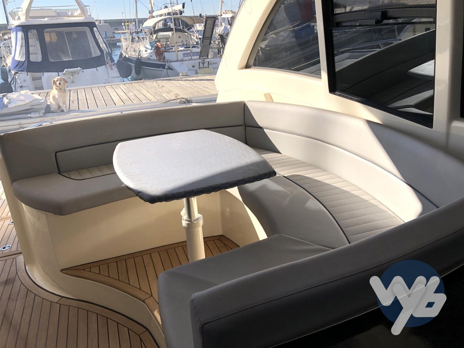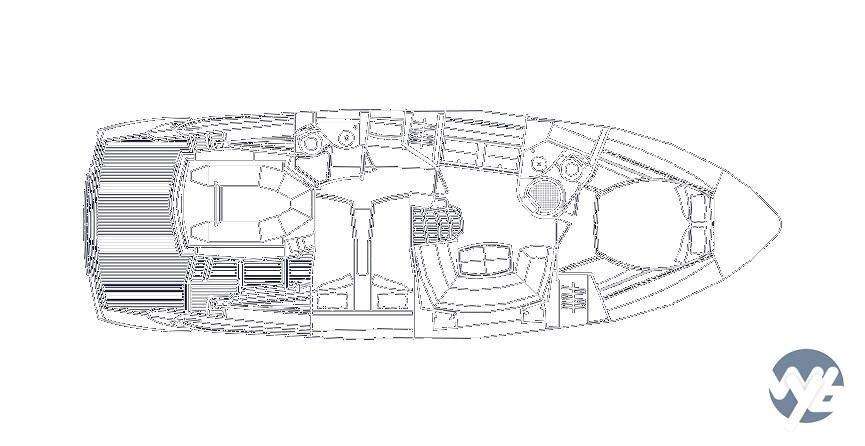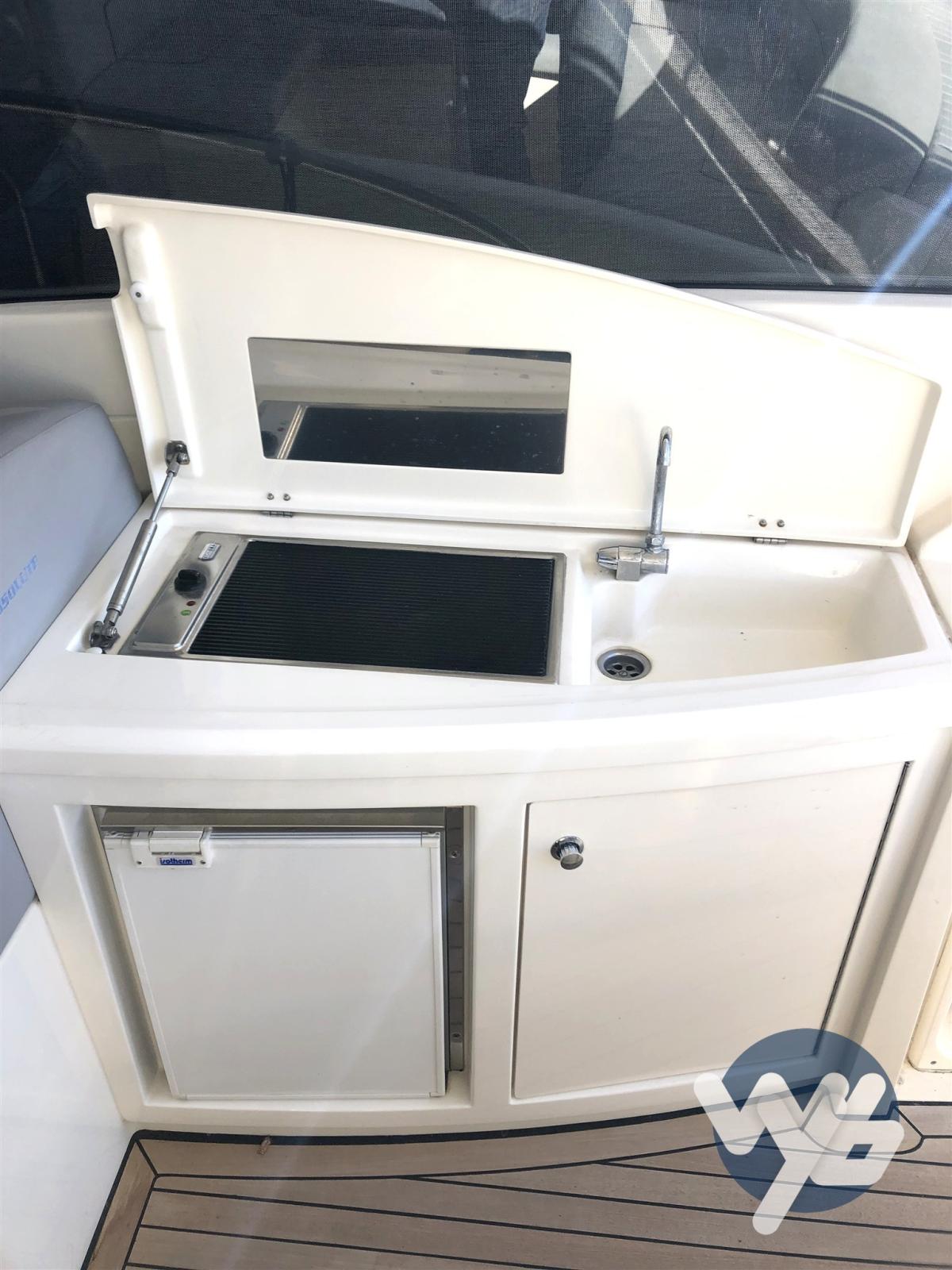 Alarme moteur, Alarme de pompe de cale, Ouverture du compartiment moteur électrique, Eau sous pression, Douche de cockpit, Phare de poursuite, Flaps électriques, Hard top, Extincteur(s) fixe(s), Passerelle, Plateforme arrière, Pompe de cale manuelle, Porte latérale, Cockpit en teck, Prise de quai, Rollbar, Guindeau électrique, Echelle de bain, table de cockpit.