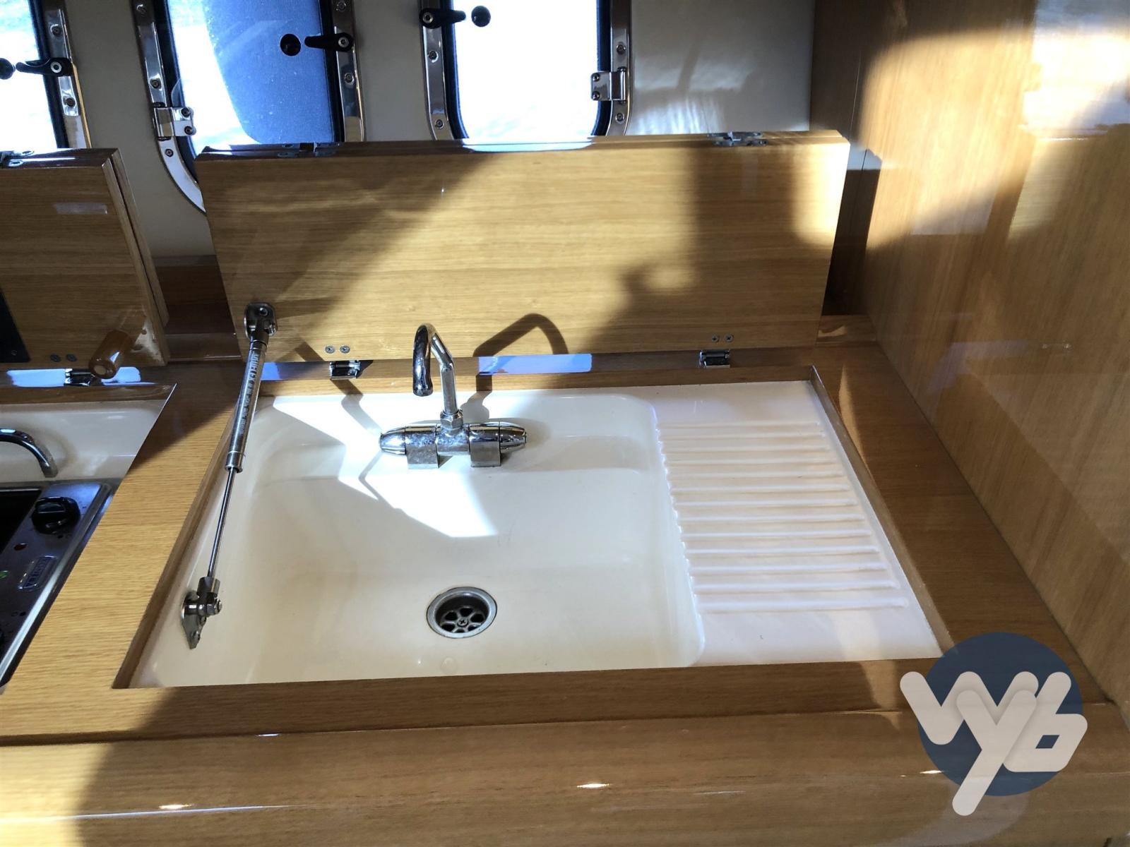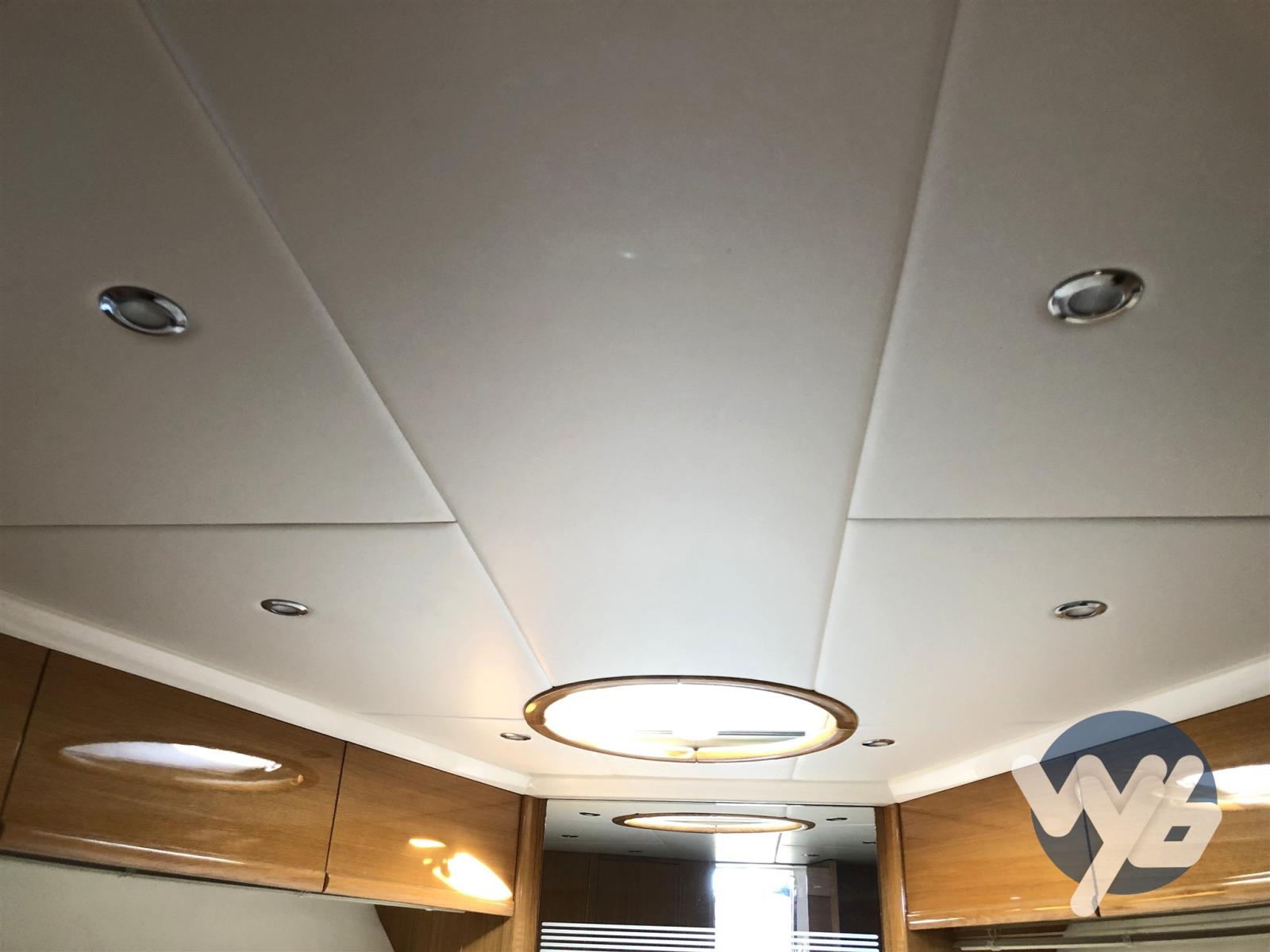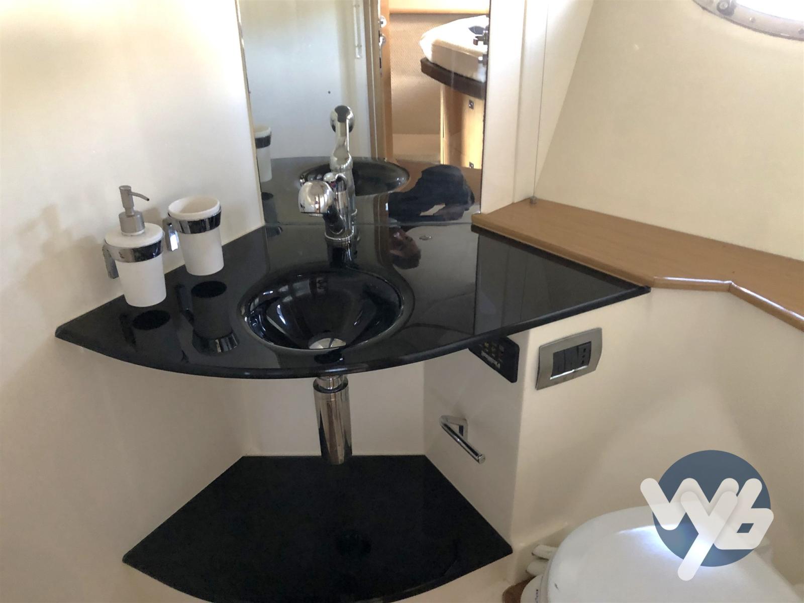 Toit rigide en excellent état. Cabine double à l’avant, lits plats cabine invités, deux salles de bains. Hangar hydraulique à l’arrière, propulseur d’étrave. Électronique complète. Nouveaux coussins..
