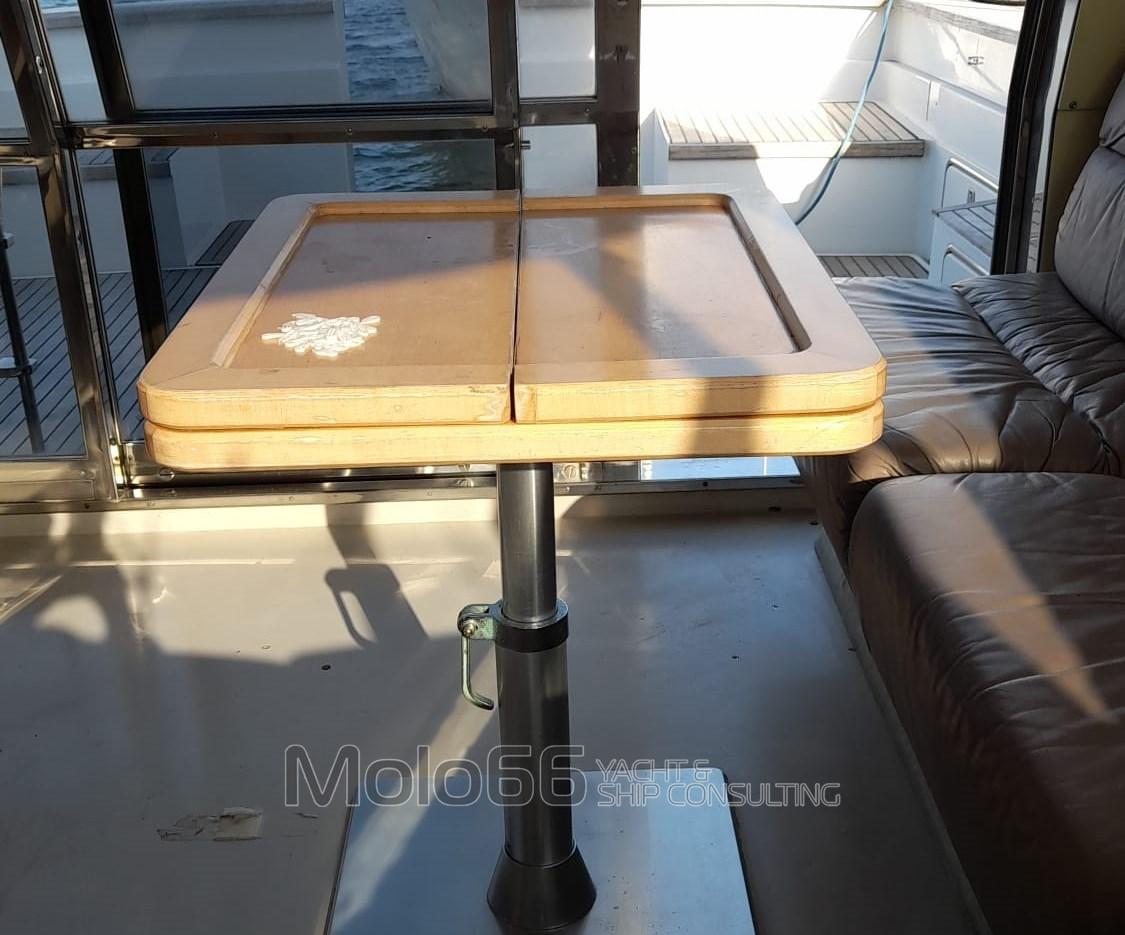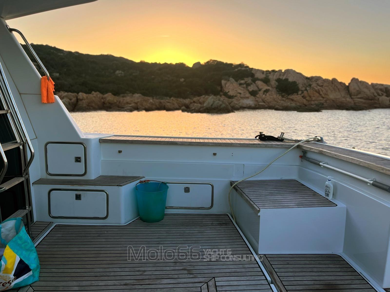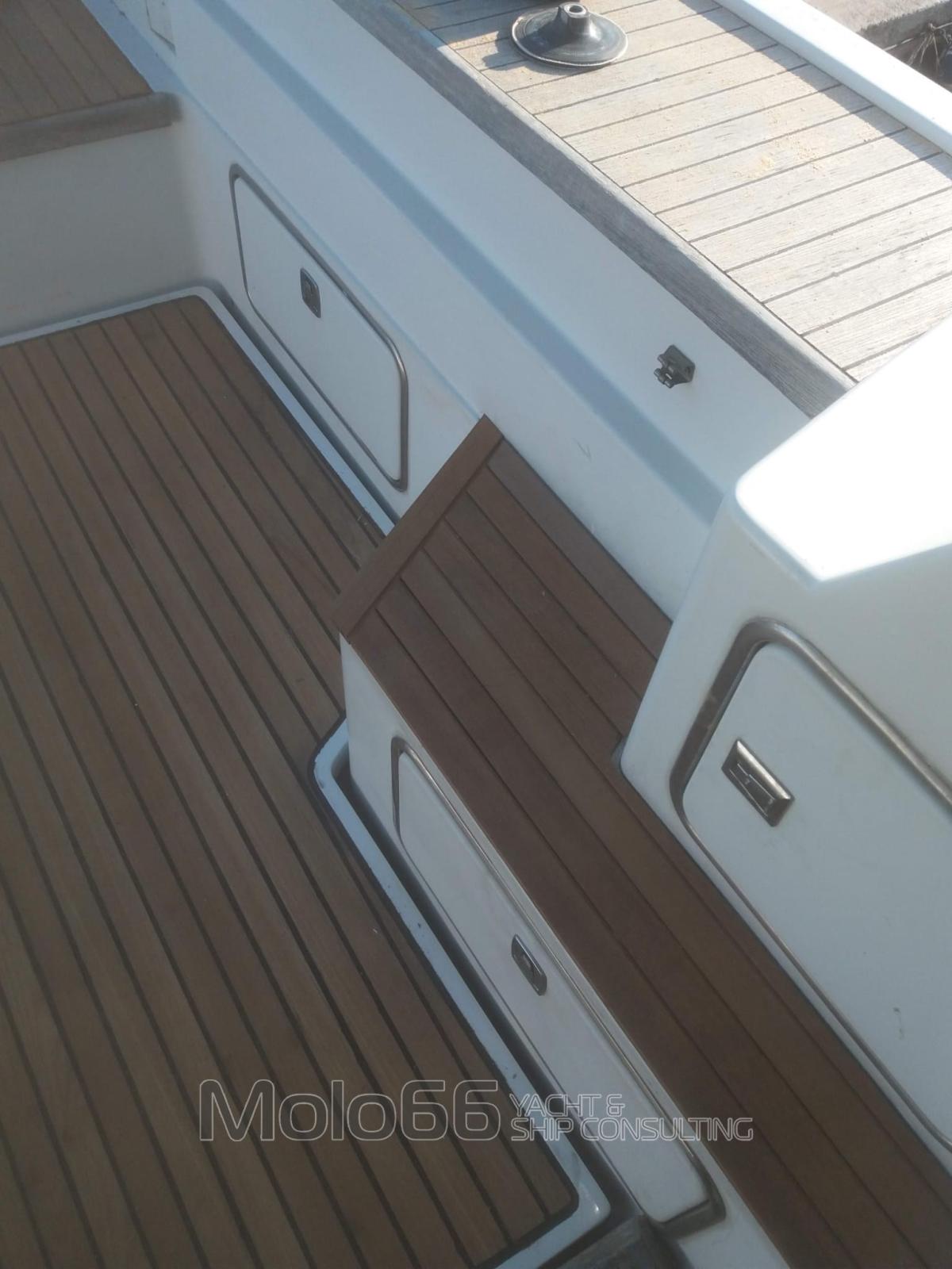 Alarme moteur, Eau sous pression, Douche de cockpit, Double barre à roue, Flaps hydrauliques, Extincteur(s) fixe(s), Indicateurs de flaps, Lavage de chaine, Spots sous-marins (LED sopra linea di galleggiamento), Plateforme arrière, Pompe de cale automatique, Pompe de cale manuelle, Porte latérale, Cockpit en teck, Prise de quai, Onduleur, Guindeau électrique, Echelle de bain, Corne, Winch électrique avant.