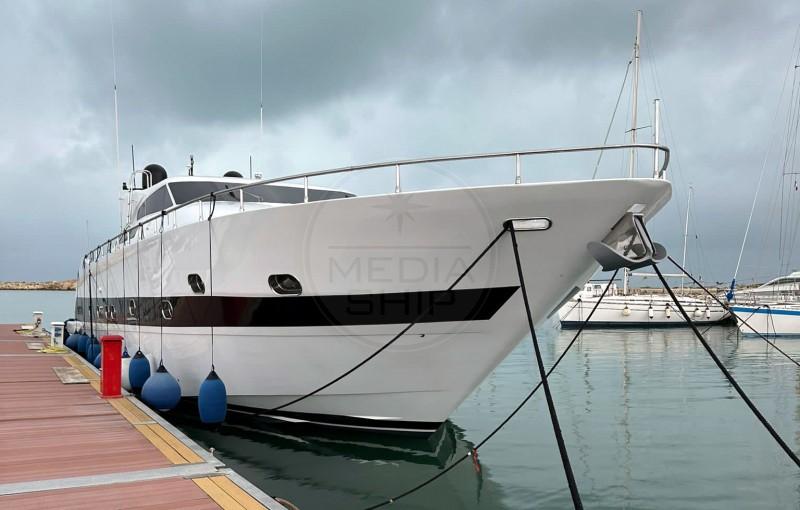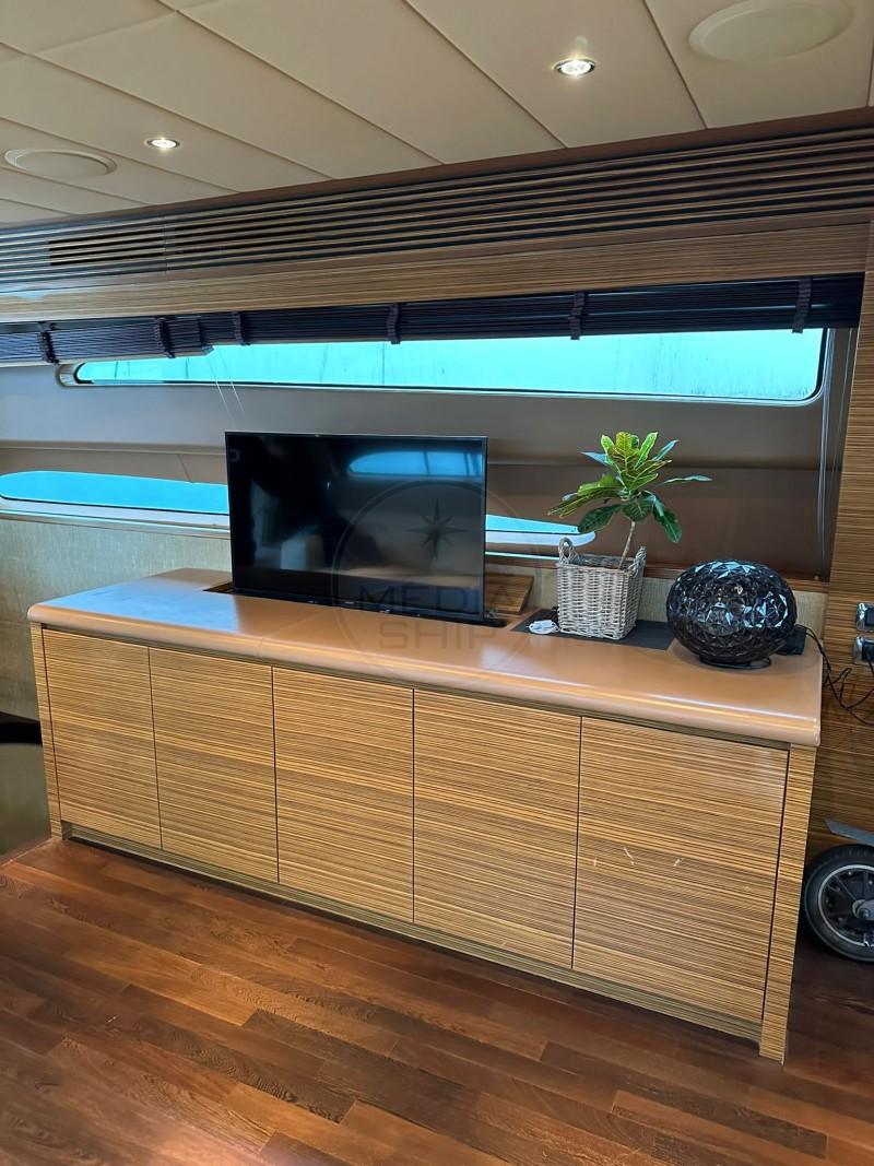 VELVET 90, 2007, PONT EN TECK, 2 x 1625 HP CATERPILLAR RÉVISÉS EN 2021, PROPULSEUR D'ÉTRAVE, DOMOTIQUE, GRAND SALON AVEC TV ESCAMOTABLE, CABINE ARMATEUR À L’ARRIÈRE AVEC SALLE DE BAIN ET BIDET + 3 CABINES INVITÉS AVEC 3 SALLES DE BAIN ET DOUCHES + 2 CABINES ÉQUIPAGE (4 LITS), CUISINE SÉPARÉE AVEC LAVE-VAISSELLE, MACHINE À GLACE, CONGÉLATEUR, ET RÉFRIGÉRATEUR, 2 GÉNÉRATEURS, DESSALINISATEUR, CLIMATISATION, RADAR, CAMÉRA SALLE DES MACHINES, PASSERELLE HYDRAULIQUE ESCAMOTABLE, GARAGE POUR ANNEXE, COUSSINS EXTÉRIEURS COMPLETS Y COMPRIS BAIN DE SOLEIL, TAUD ÉLECTRIQUE ESCAMOTABLE DANS LE HARD TOP, GRANDE PLAGE ARRIÈRE, +39 06 65 22 258/9, www.mediaship.it - CODE D’ANNONCE W173361/M