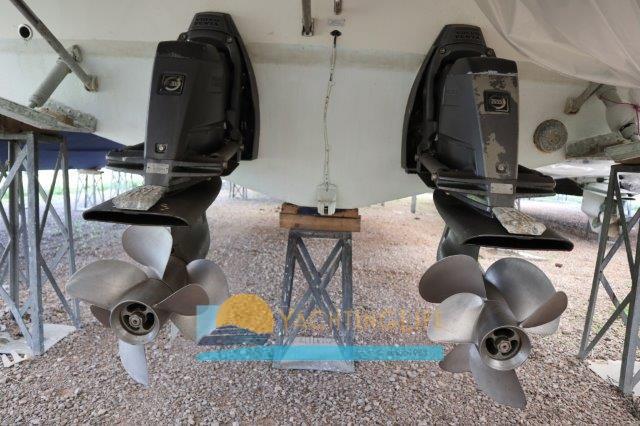 Alarme moteur, Alarme de pompe de cale, Eau sous pression, Douche de cockpit, Flaps électriques, Éclairage de courtoisie, Plateforme arrière, Pompe de cale automatique, Porte latérale, Prise de quai, Rollbar, Guindeau électrique, Echelle de bain, table de cockpit, Corne.