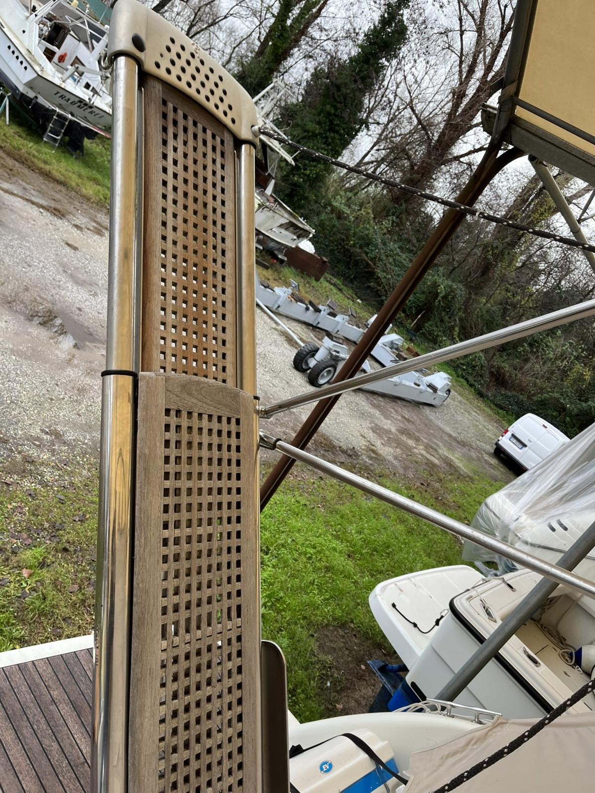 Alarme moteur, Eau sous pression, Douche de cockpit, Flaps électriques, Lavabo dans le cockpit, Plateforme arrière, Pompe de cale automatique, Cockpit en teck, Prise de quai, Connexion eau sous pression à quai, Rollbar, Guindeau électrique, Echelle de bain, Annexe.