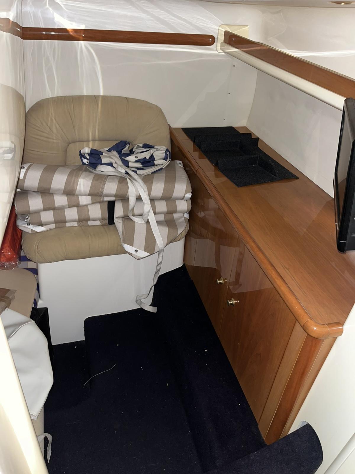 ZAFFIRO 34 DE 2009 AVEC VOLVO PENTA D4 260HP X2 AVEC 1050 HEURES DE MOTEUR, CABINE PRINCIPALE À L’AVANT, CABINE D’INVITÉS DEUX LITS PLATS À L’ARRIÈRE, SALLE DE BAIN SÉPARÉE, CUISINE ÉQUIPÉE, COIN REPAS AVEC TABLE ET CANAPÉ EN FORME DE U. INSTRUMENTATION COMPAS ÉCHOSONDEUR PILOTE AUTOMATIQUE , TRACEUR AVEC GPS , RADIO VHF , PROPULSEUR D’ÉTRAVE CHAUDIÈRE PASSERELLE HYDRAULIQUE ET PLATE-FORME EN TECK , COCKPIT EN TECK , ANNEXE . SYSTÈME D’EAUX NOIRES, SYSTÈME TV, CHAÎNE STÉRÉO, RÉFRIGÉRATEUR INTÉRIEUR ET EXTÉRIEUR.