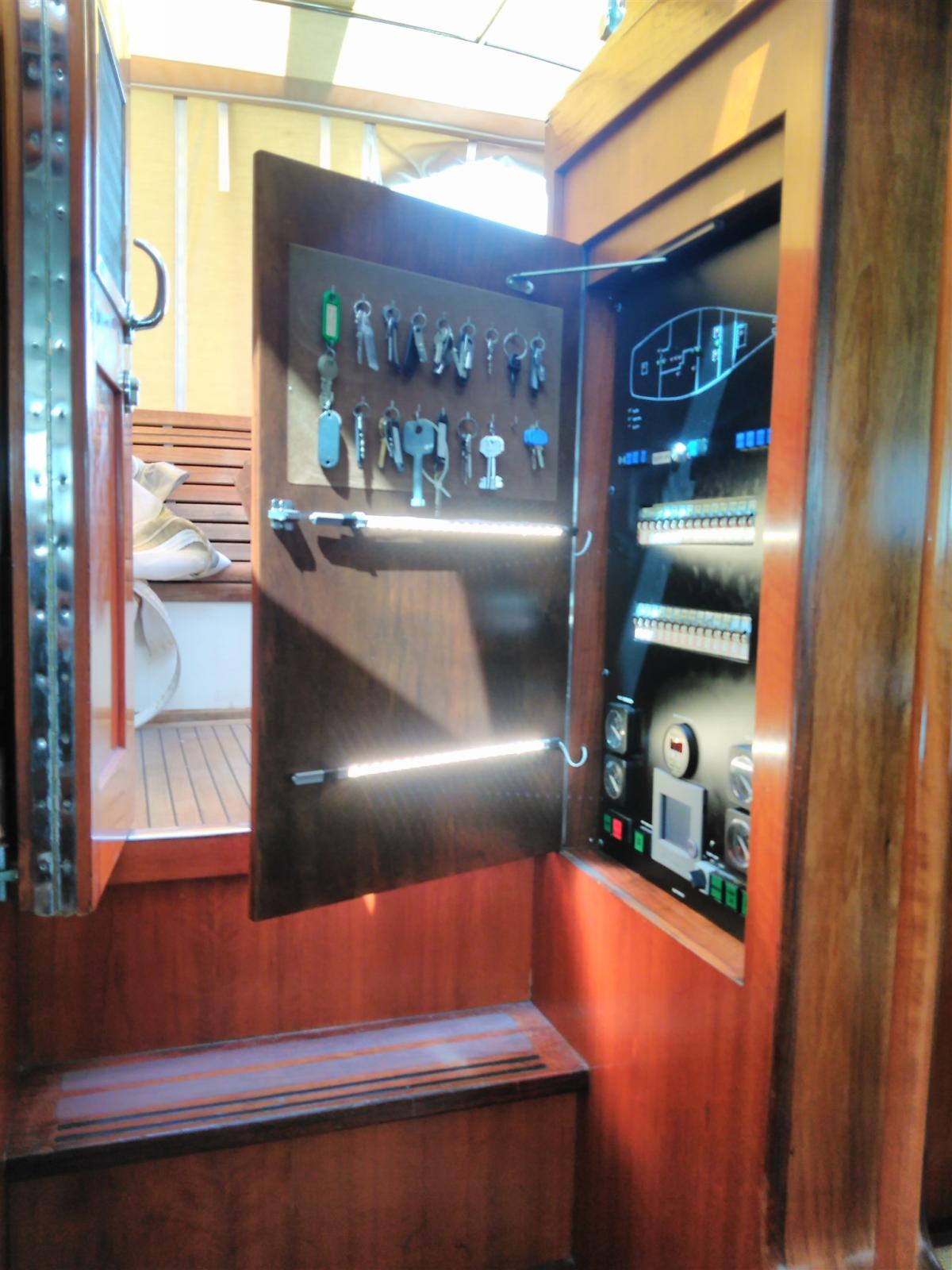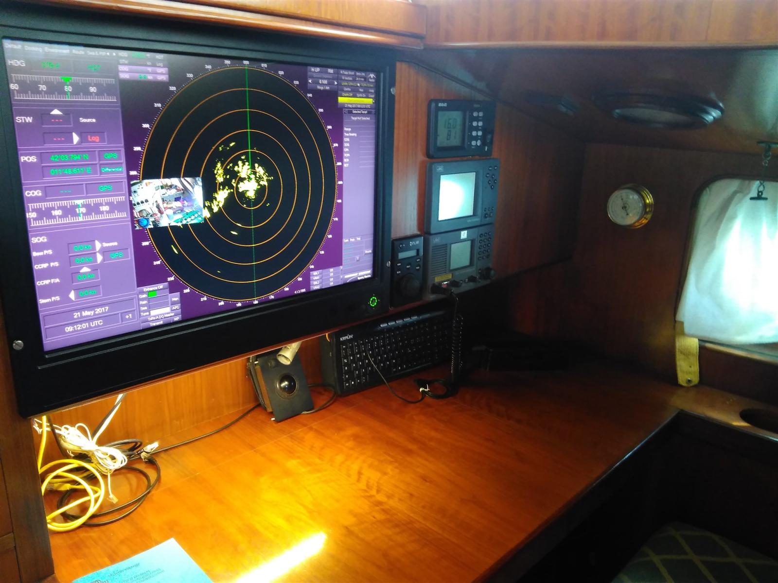 HF 250 WATTS sont la peur, D-NAVETEX récepteur FURUNO, JRC GPS, NAVIGATION ordinateur intérieur MARINE SPERRU C-carte cartes JEPPESEN avec TOTAL WACHT, GV-COMPACT DVR vidéo RECORDER 2 pour caméras à carte, la caméra FLIR pour la NAVIGATION de nuit, système de SURVEILLANCE vidéo avec INSPECTION visuelle à distance. ÉCLAIRAGE SUR LES ÉPANDEURS DE DEUX ARBRES À LED. MATÉRIEL DE SONORISATION. ÉCLAIRAGE INTÉRIEUR LED