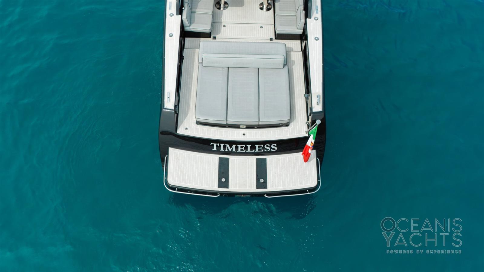 Alarme moteur, Douche de cockpit, Flaps électriques, Éclairage de courtoisie, Spots sous-marins, Prise de quai, Echelle de bain, table de cockpit, Corne.