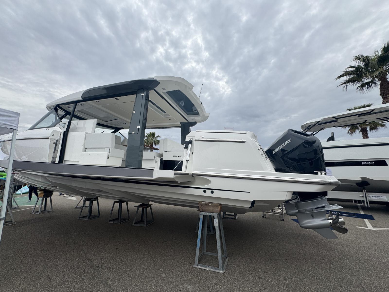 UNI BATEAUX vous propose à la vente un Saxdor 400 GTO millésime 2025. Il est motorisé en 2 X MERCURY 400CV.