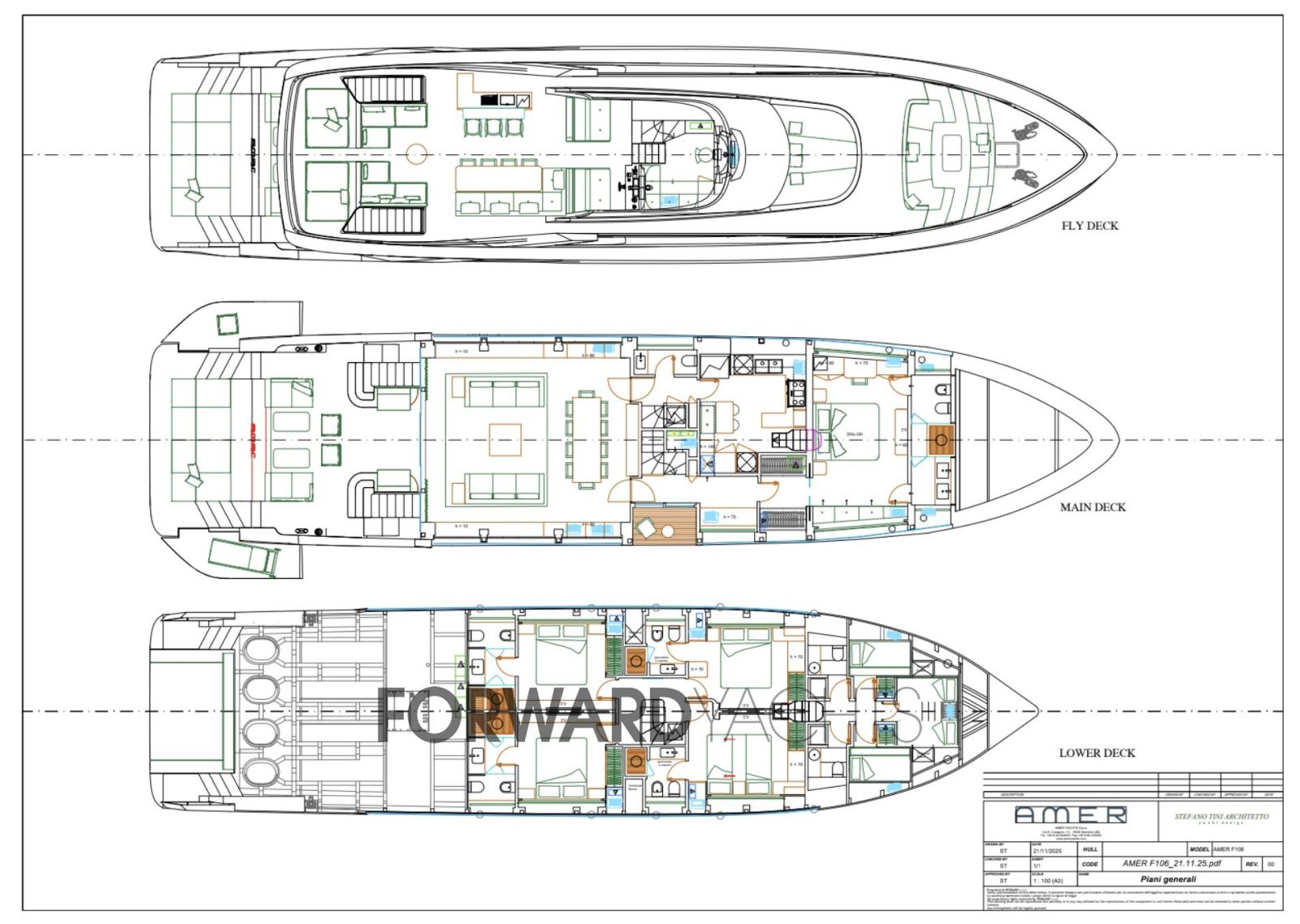 Amer F 106 - Nouvelle construction - 4 x Volvo Penta IPS 30 1 350 CV ou IPS 40 2 700 CV - 5 cabines invités + 3 cabines équipage