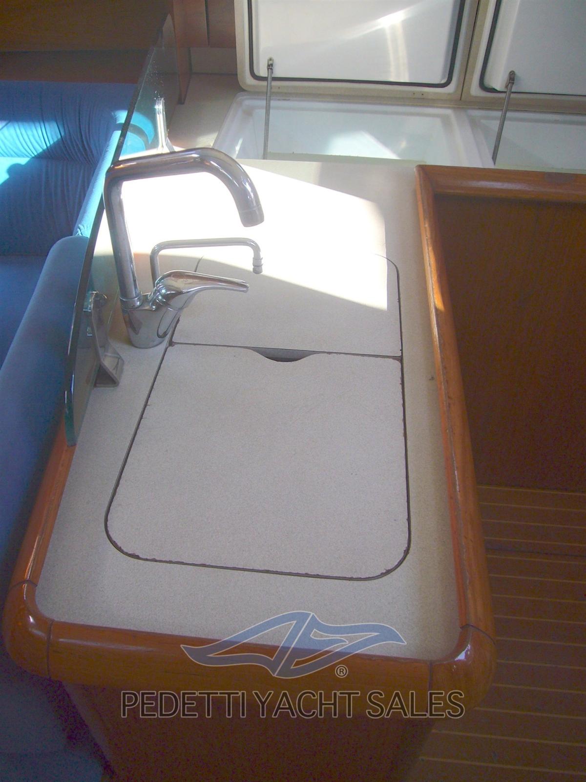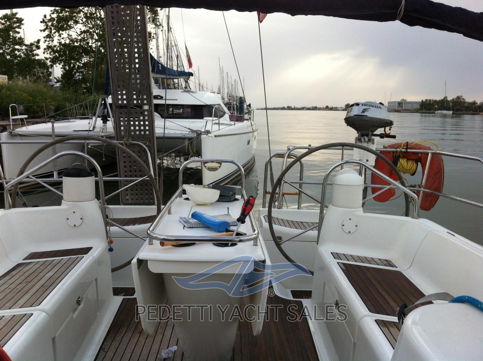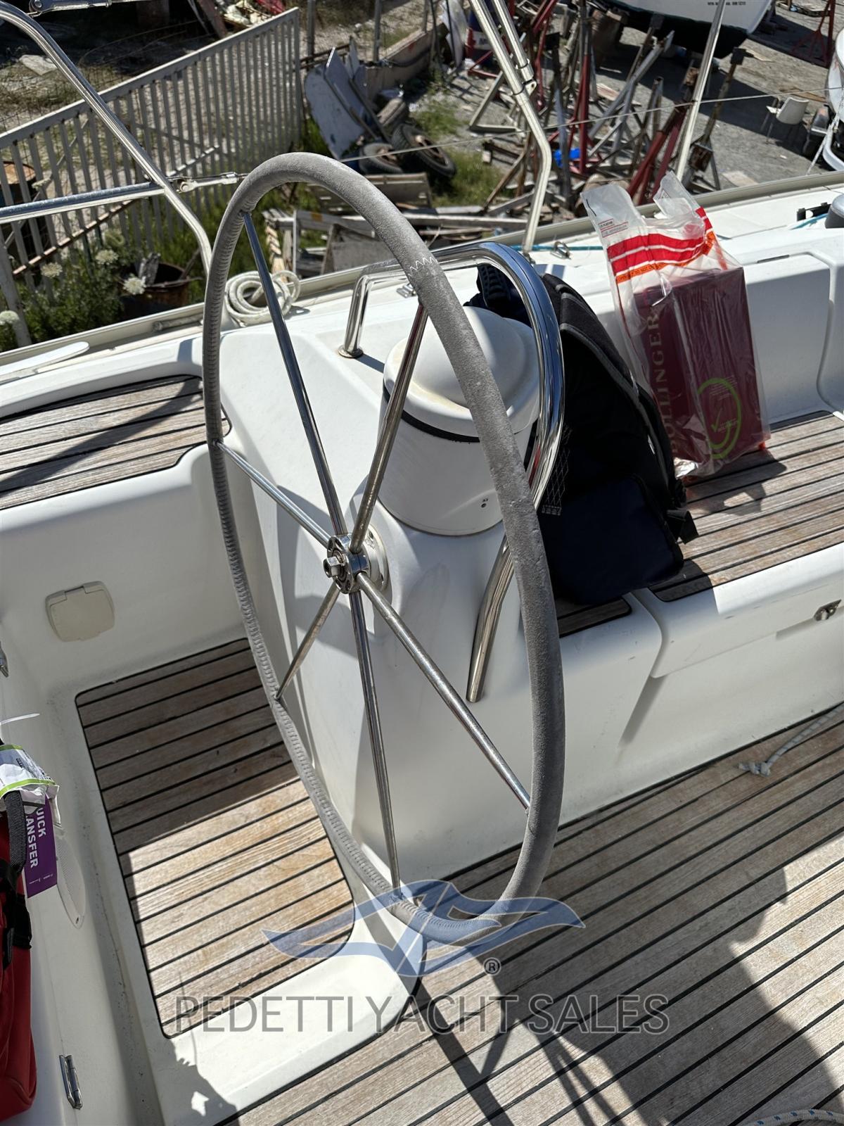 Alarme moteur, Alarme de pompe de cale, Ancre (+1 rispetto), Eau sous pression, Douche de cockpit, Double barre à roue, Extincteur(s) fixe(s), Éclairage de courtoisie, Panneau solaire (2x190w c.u), Passerelle, Plateforme arrière, Pompe de cale manuelle, Porte latérale, Cockpit en teck, Prise de quai, Onduleur, Guindeau électrique, Gréement Rod, Echelle de bain, Chaise support HB, table de cockpit, Annexe (Honda), Corne.