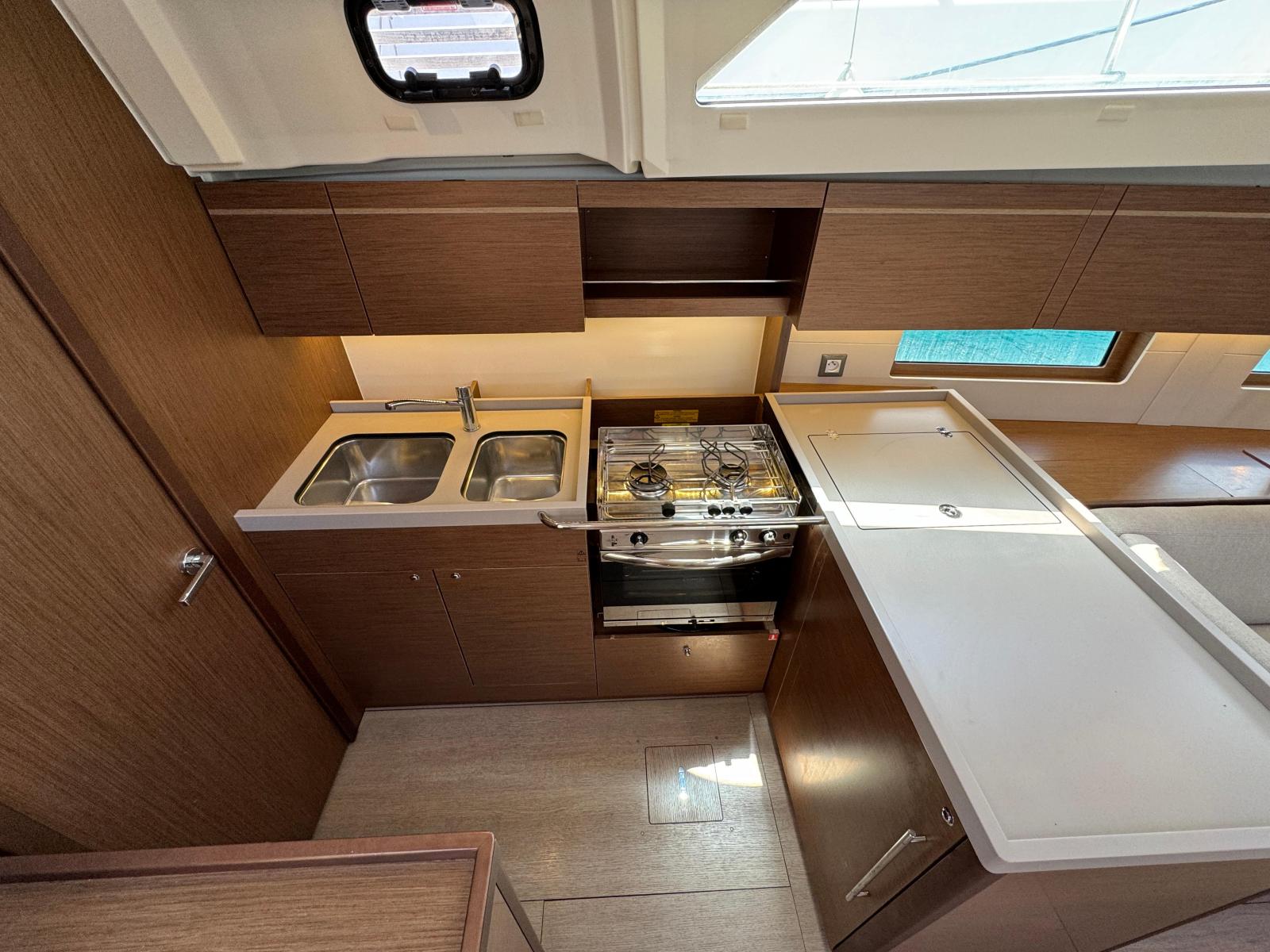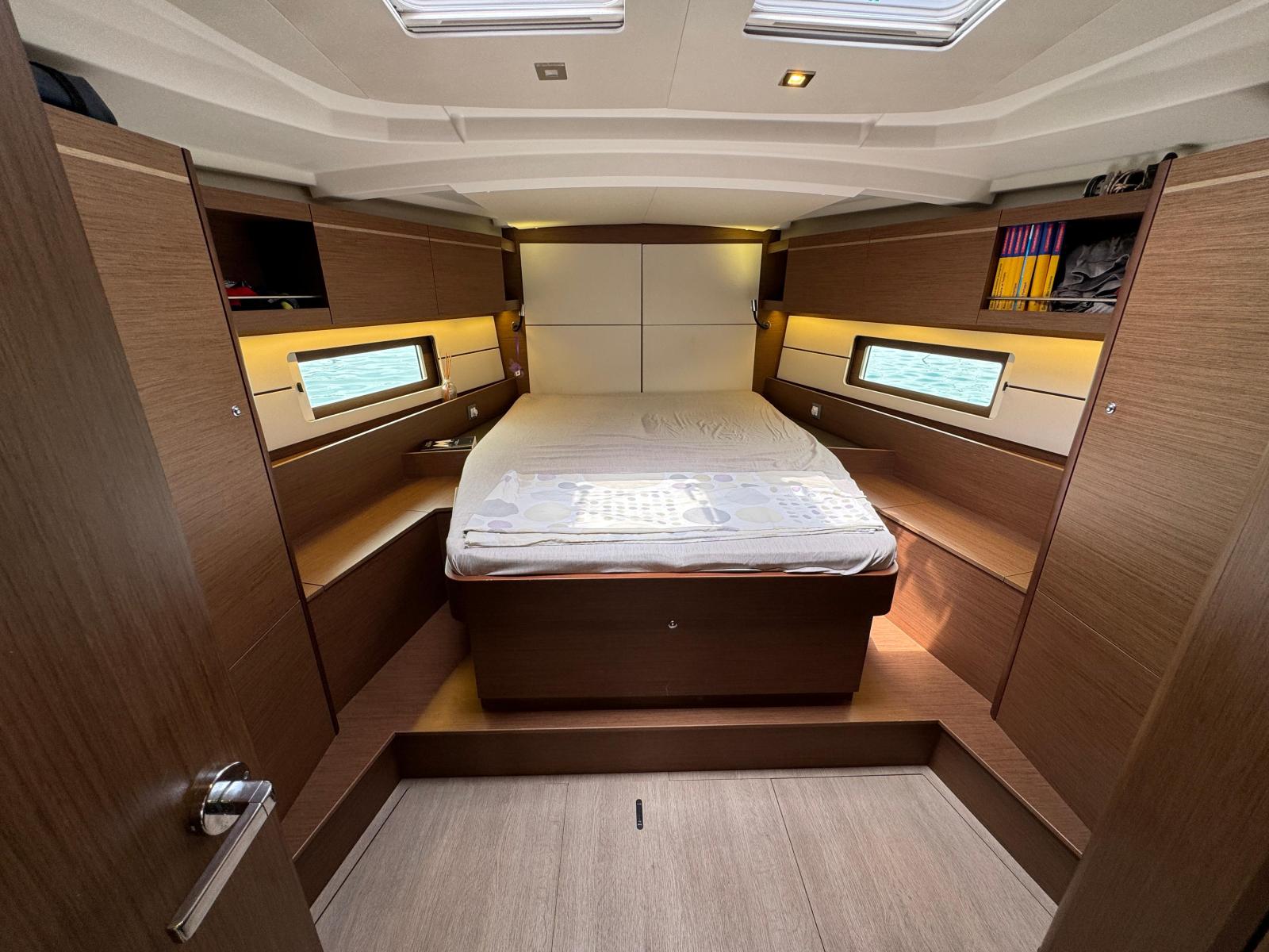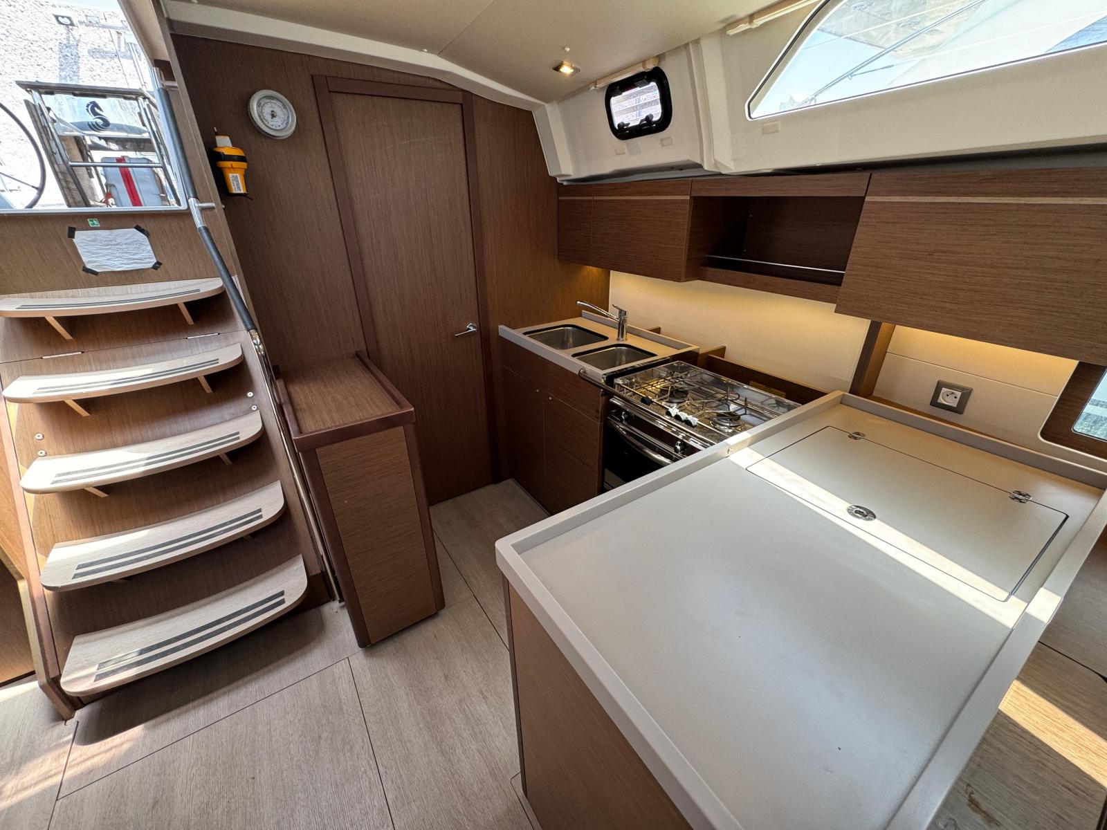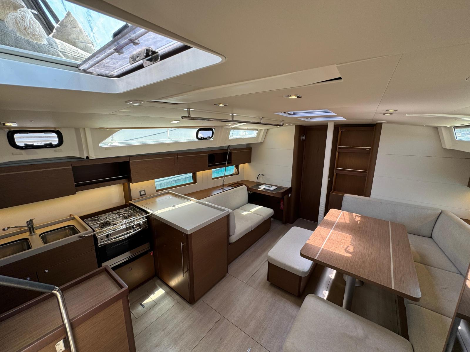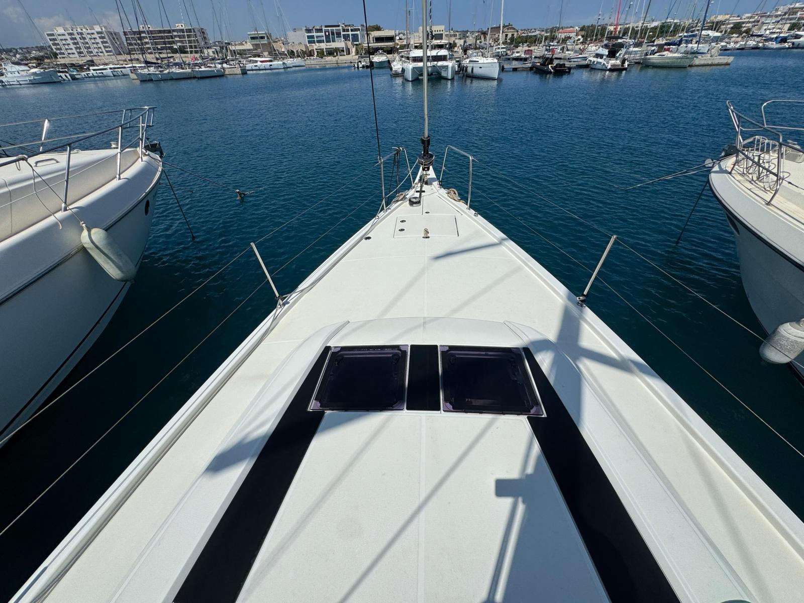 Description fournie par le constructeurThe Oceanis 46 boasts all the features of a large cruising yacht, with a rare balance between elegance, usable space and performance. Her stepped hull opens up an incredible amount of space inside and yet her seakeeping performance is still impressive. A large number of clever customizable fittings make her easy to sail and pleasantly comfortable. The Oceanis 46.1 is based on a Finot-Conq plan, keeping the distinctive stepped hull of the 51.1. Apart from her performance at sea and the huge amount of space that set this boat apart, this architecture makes optimal use of the cockpit beam. An incredibly efficient deck plan makes her wonderfully safe and easy to use. The furling mast, self-tailing jib and all the halyards and sheets brought back to a single winch at each of the helm stations, make manoeuvring simple when short-handed sailing.