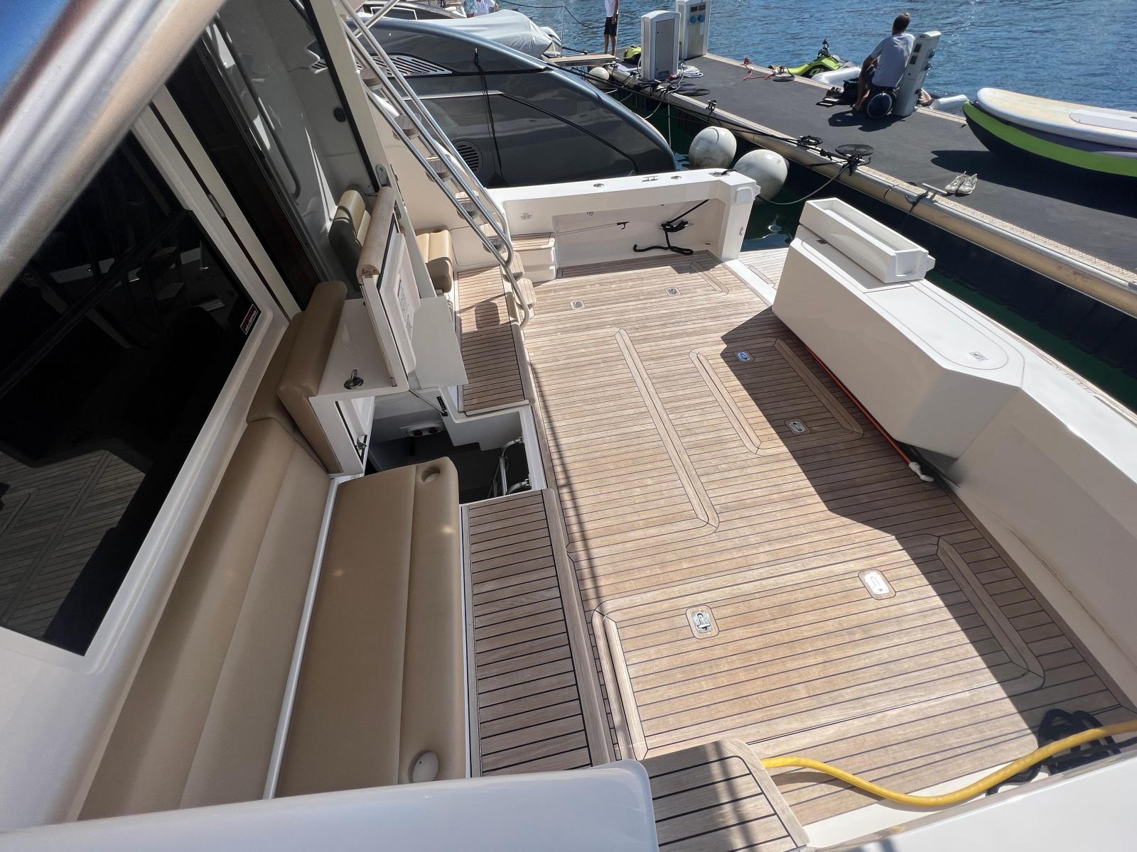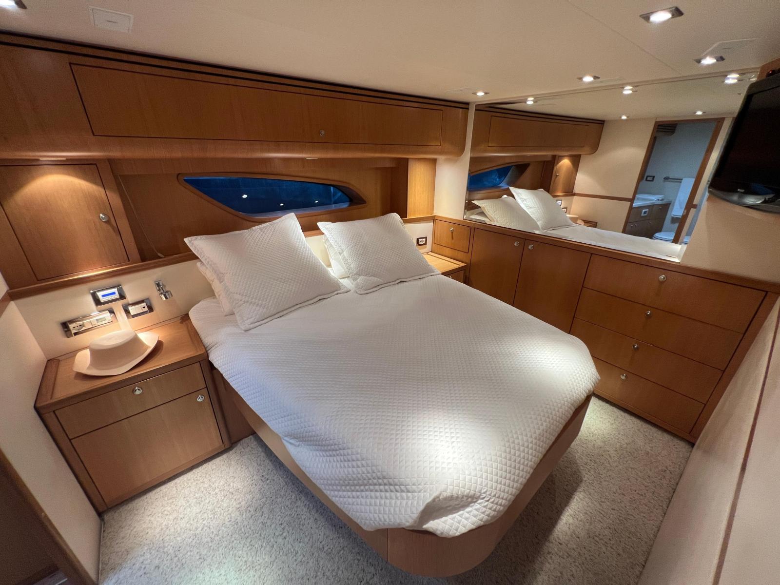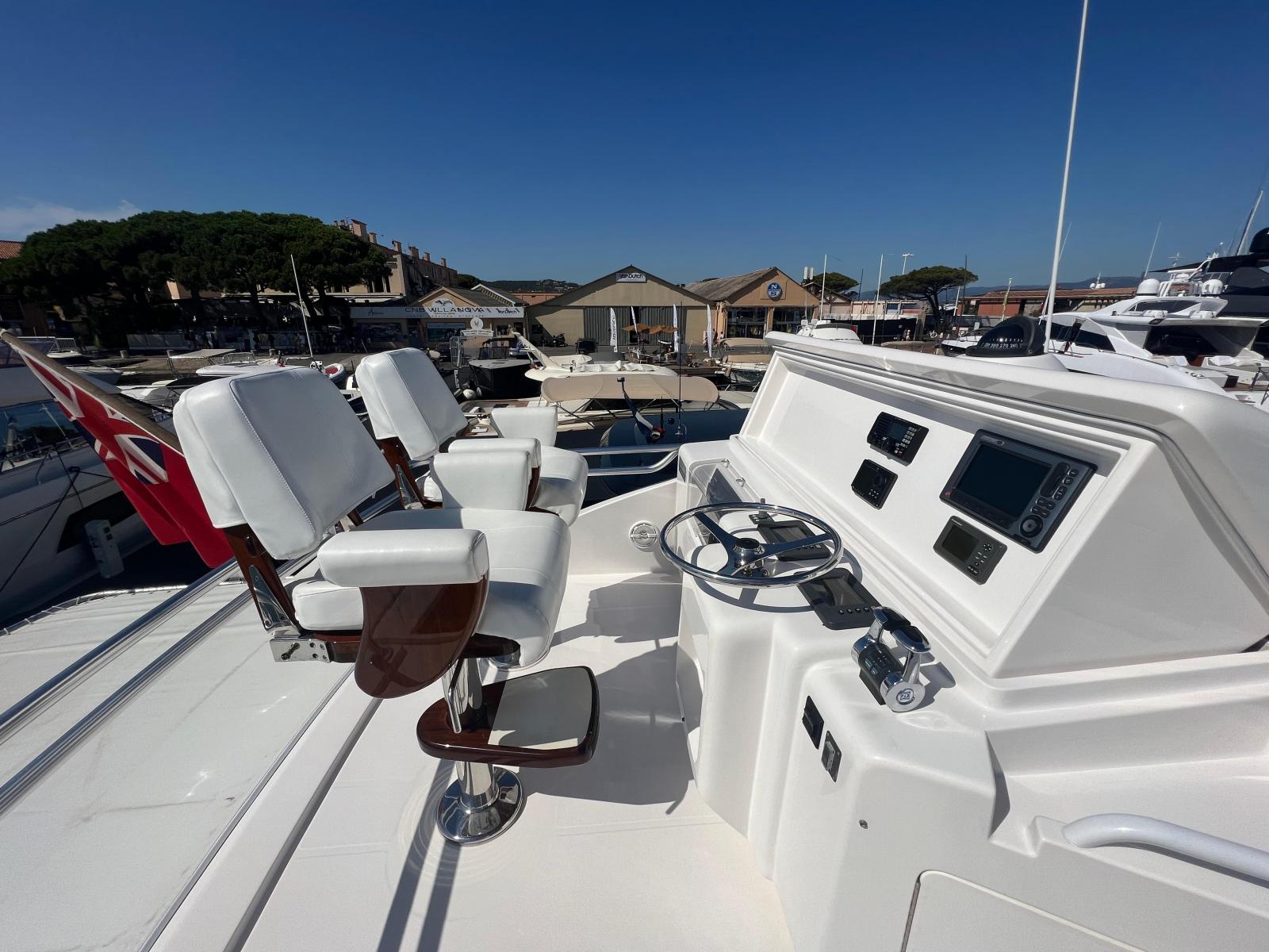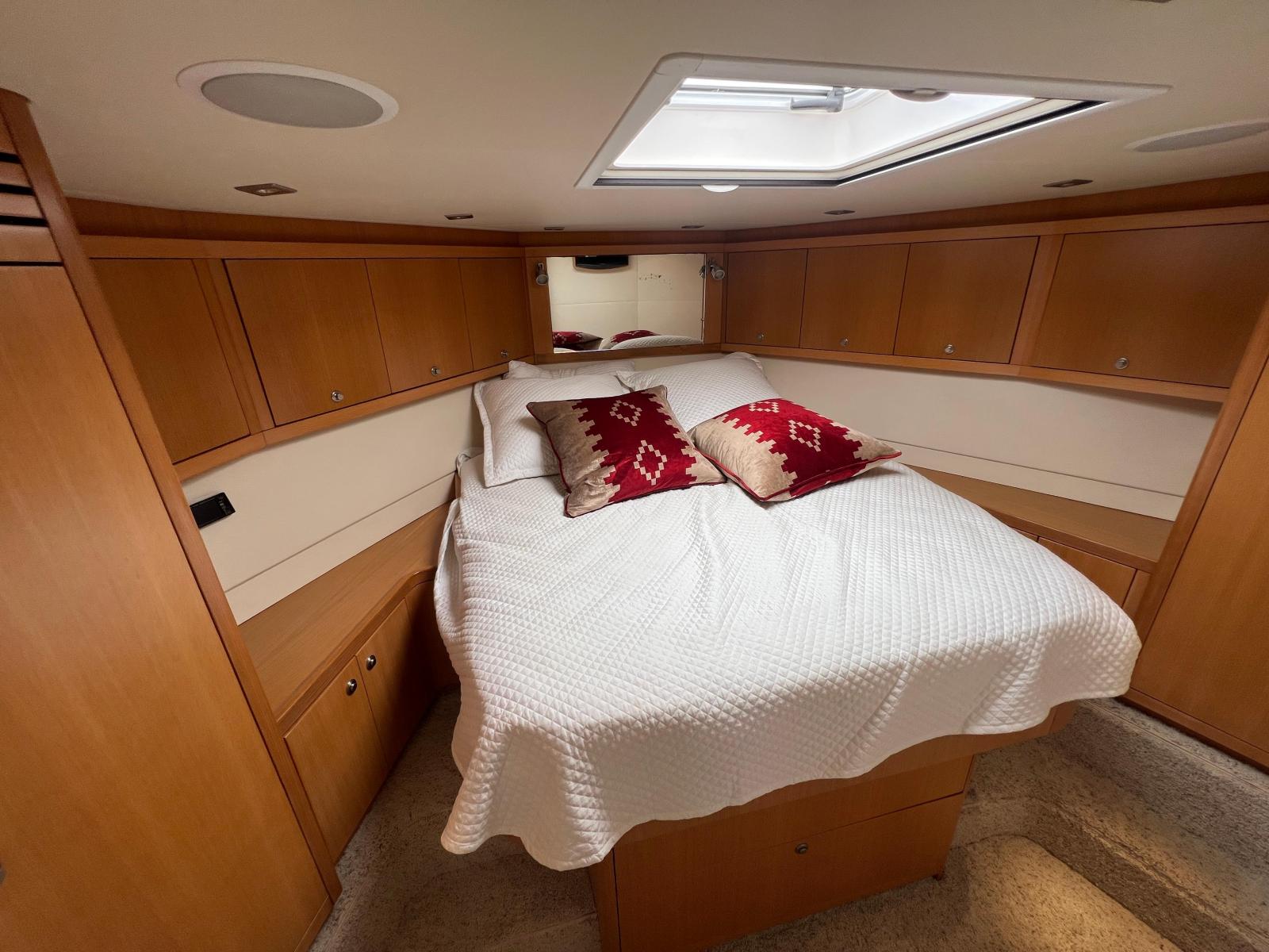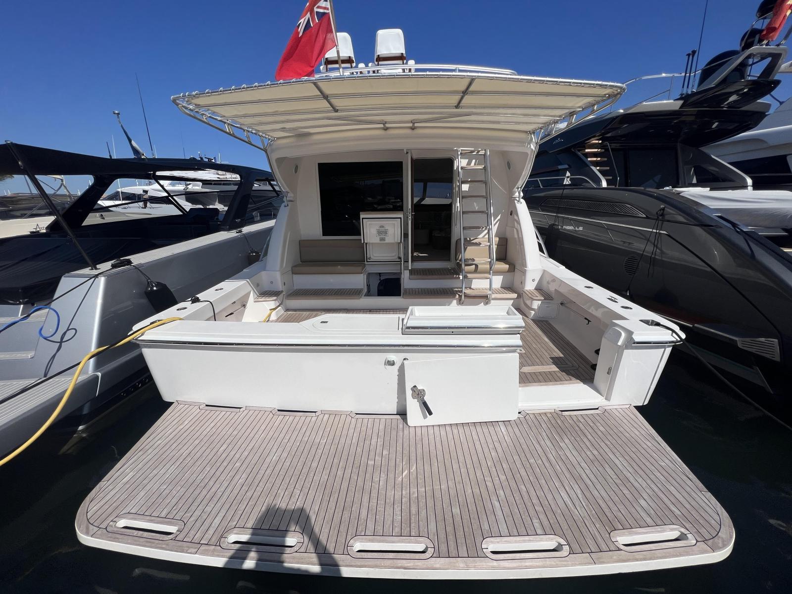 Description fournie par le constructeurThe impact of the classic Bertram 54' was distinctive in the marine industry became one of the most sought after Bertram models over the years. The 540 is the quintessential sport-fishing machine, maintains the features of the classic 54', and adds innovative elements to a sport fish craft. The result was a yacht that delivers ultimate steadfast performance and sea keeping ability of a fishing vessel combined with the ultra luxury and comfort of a cruising yacht. Aside from its incredible seaworthiness, this model offers attributes to enhance the cruising experience. Undoubtedly, the most striking feature is the forward wrap around window that provides breathtaking views of the surrounding waters and allows for an incredible amount of natural light to shine through the interior of the yacht. The ambiance created from these windows and the open salon layout provides a unique experience for entertaining on the open water. Port and starboard stateroom windows also lend to added natural light and exquisite views of the sea. These state of the art windows are made of multiple layers of glass and are both tested and designed exclusively by Ferretti group's Advanced Yacht Technologies. They are engineered to hold up to the roughest sport-fishing conditions and are actually reinforced with directly into the fiberglass hull, contributing to the overall hull strength and design.The open view layout of the 540 is radiant with white oak, which provides an elegant richness and enhances the natural light that enters the salon. The galley area features a beautiful open bar area to facilitate movement between the salon and the cockpit entry way for a more open entertaining and dining experience. An innovative retractable aft cockpit window, which recedes down into the bulkhead for easy pass through of drinks and food was also added between the cockpit and the galley.Many other elements were incorporated into the design of the 540 to enhance the overall ease of use and to provide the ultimate entertainment experience for all of those aboard. Stereo sound systems were integrated into the bridge, salon and cockpit featuring iPOD connection for quality sound and easy control from any location on the boat. Additional amenities such as LED lighting, 12 and 110 volt outlets and extra cup holders were added for a more comfortable, modern day experience. Also, appliances and components were selected for their ease of serviceability for both U.S. and European markets.Outfitted as an extreme fishing machine, the 540 is also streamlined with features that adhere to the needs of the true fisherman. This yacht features underwater exhaust and maximized storage space to hold up to 25 fishing rods. Additional tackle storage is incorporated into the mezzanine along with a baitwell and freezer. The transom fish box can also be converted into another baitwell or icemaker with ease. The fish boxes on the cockpit floor have been made larger and deeper and are now placed on each side of the fighting chair for easier access from the transom door.