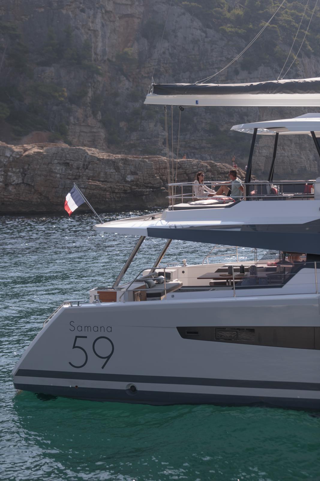 Deuxième catamaran à voile disposant d'un flybridge dans la gamme, le Samana 59 vous ouvre les portes de notre univers "flagship", réservé aux initiés. Bienvenue à bord, dans un monde où tout est mieux. En un mot : plus luxueux.