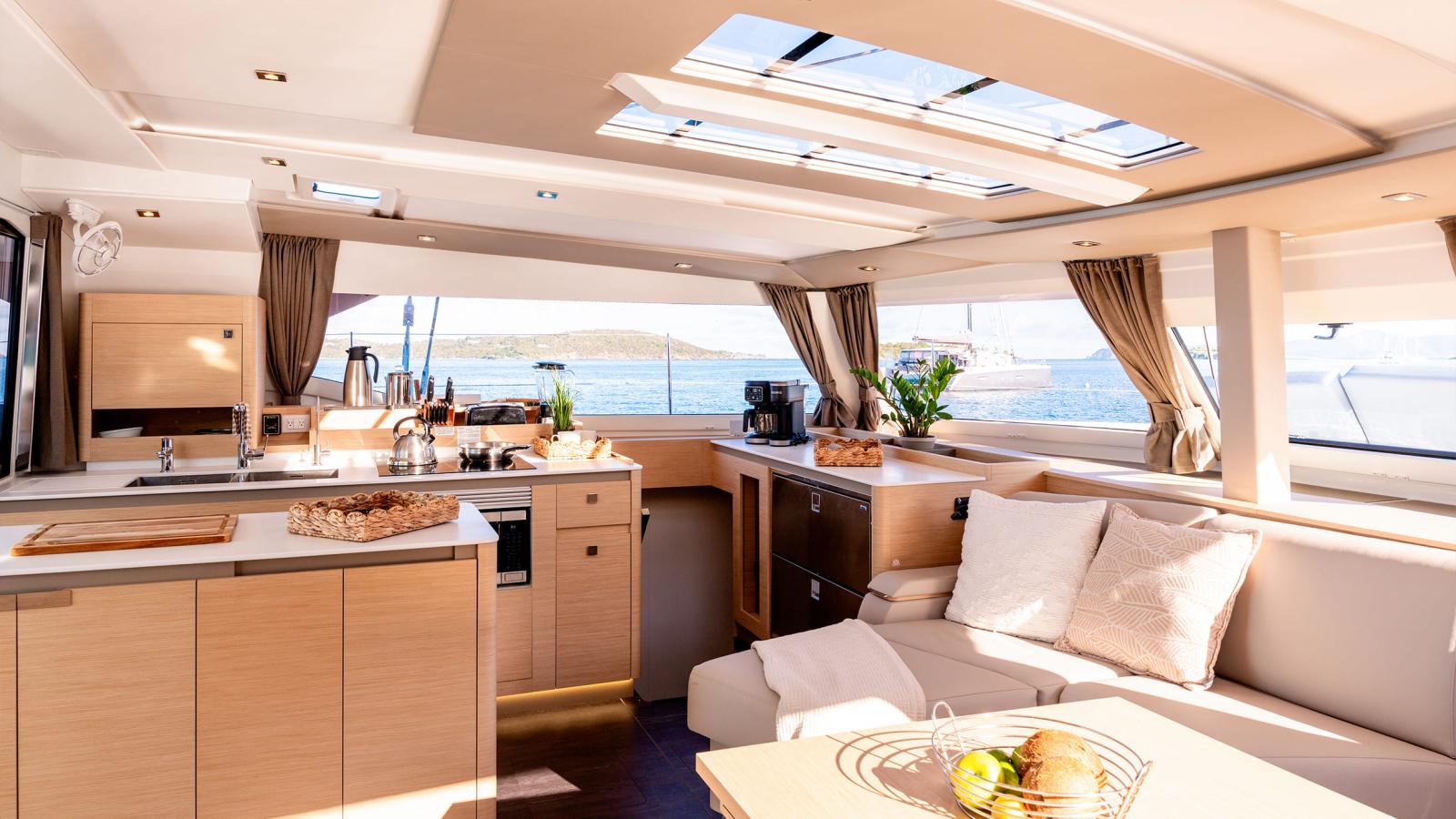 Dernier catamaran à voile sans flybridge de Fountaine Pajot, le FP 51 (anciennement appelé AURA 51) s'adresse aux navigateurs, avec ou sans équipage, qui recherchent la grande croisière avec un grand C, comme confort.