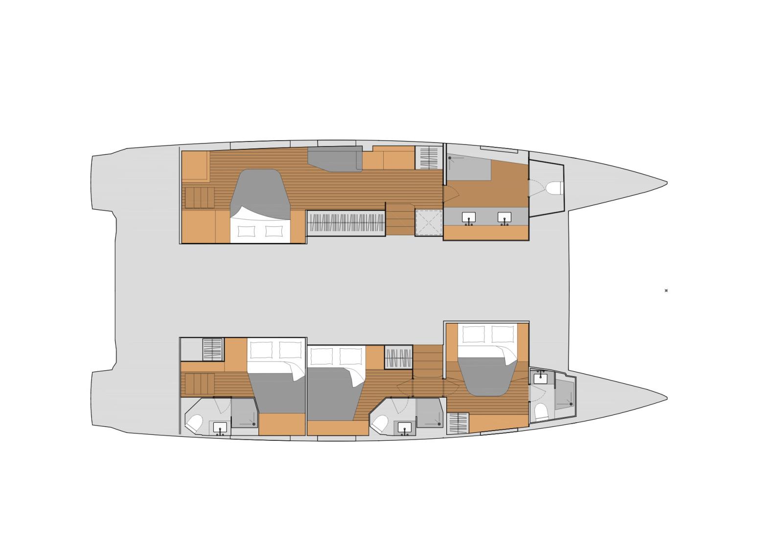 Avec ses 15,54 m de long, l'Aura 51 offre des espaces généreux et modulables, notamment la possibilité d’avoir deux cabines propriétaires avec accès direct depuis l’arrière. Sur ce voilier, les invités bénéficient du même niveau de confort et d'intimité que les propriétaires. C'est ça, le luxe.
