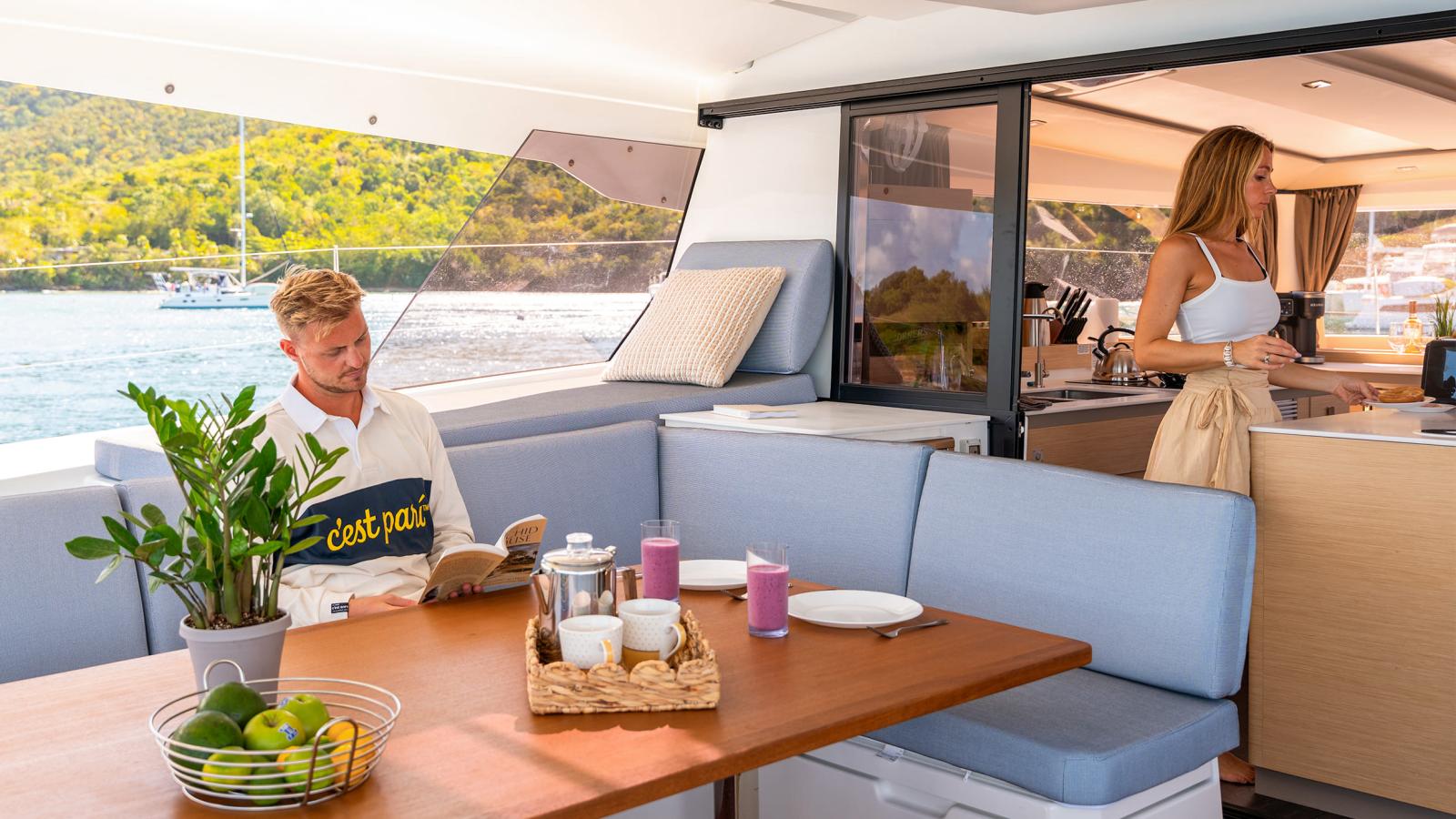 Seul catamaran à voile de cette taille offrant jusqu’à 6 cabines doubles, le FP 51 multiplie les espaces de détente et de partage pour assurer un confort inégalé. Recruter un équipage n’a jamais été aussi facile.